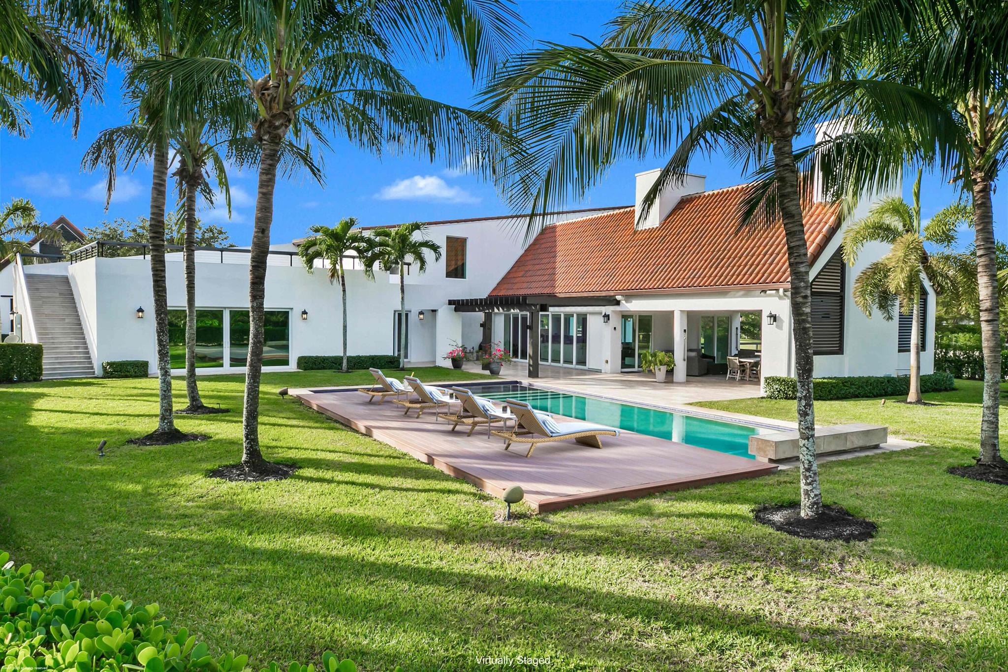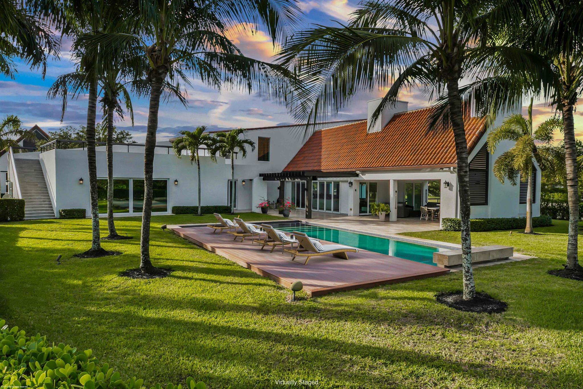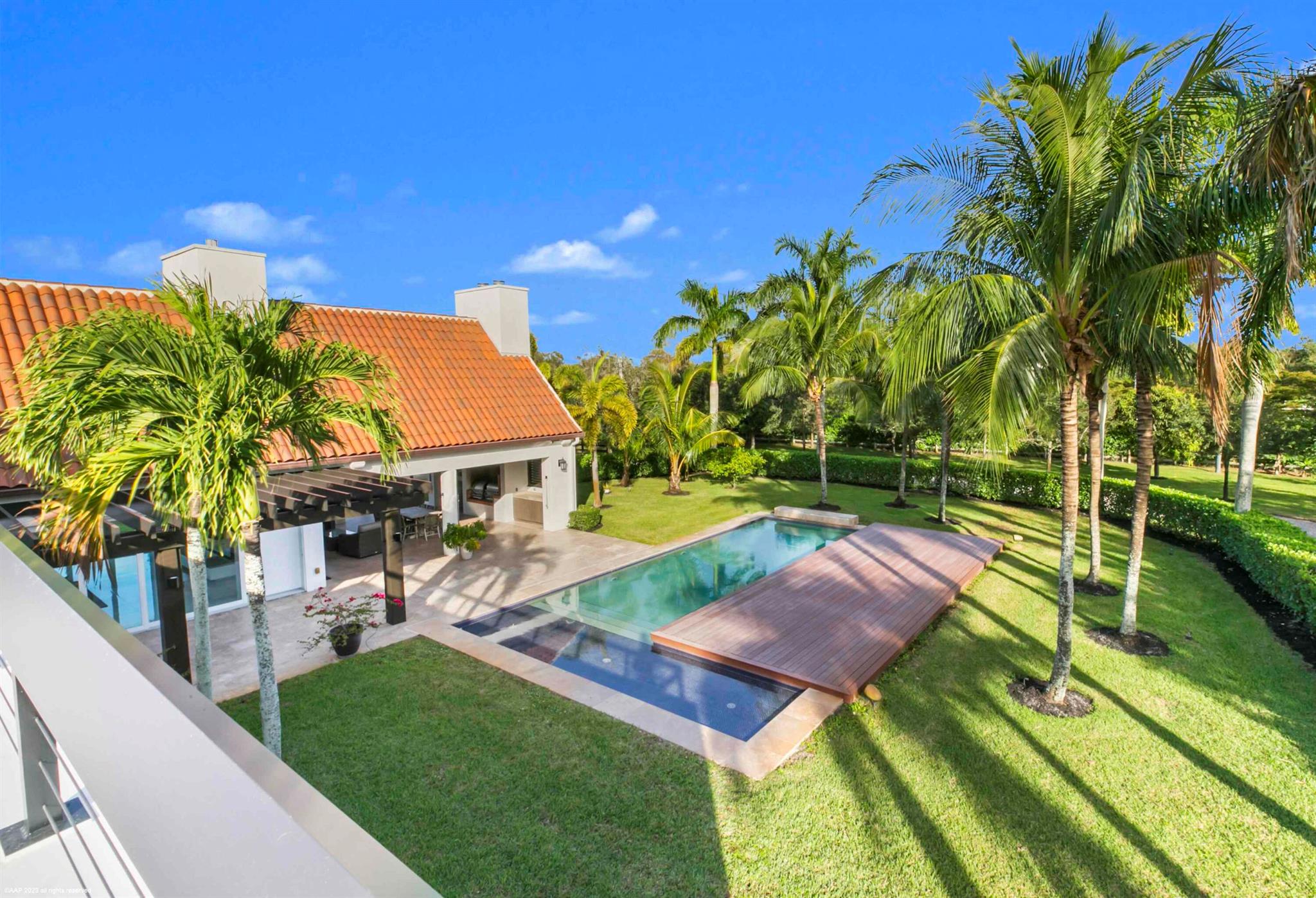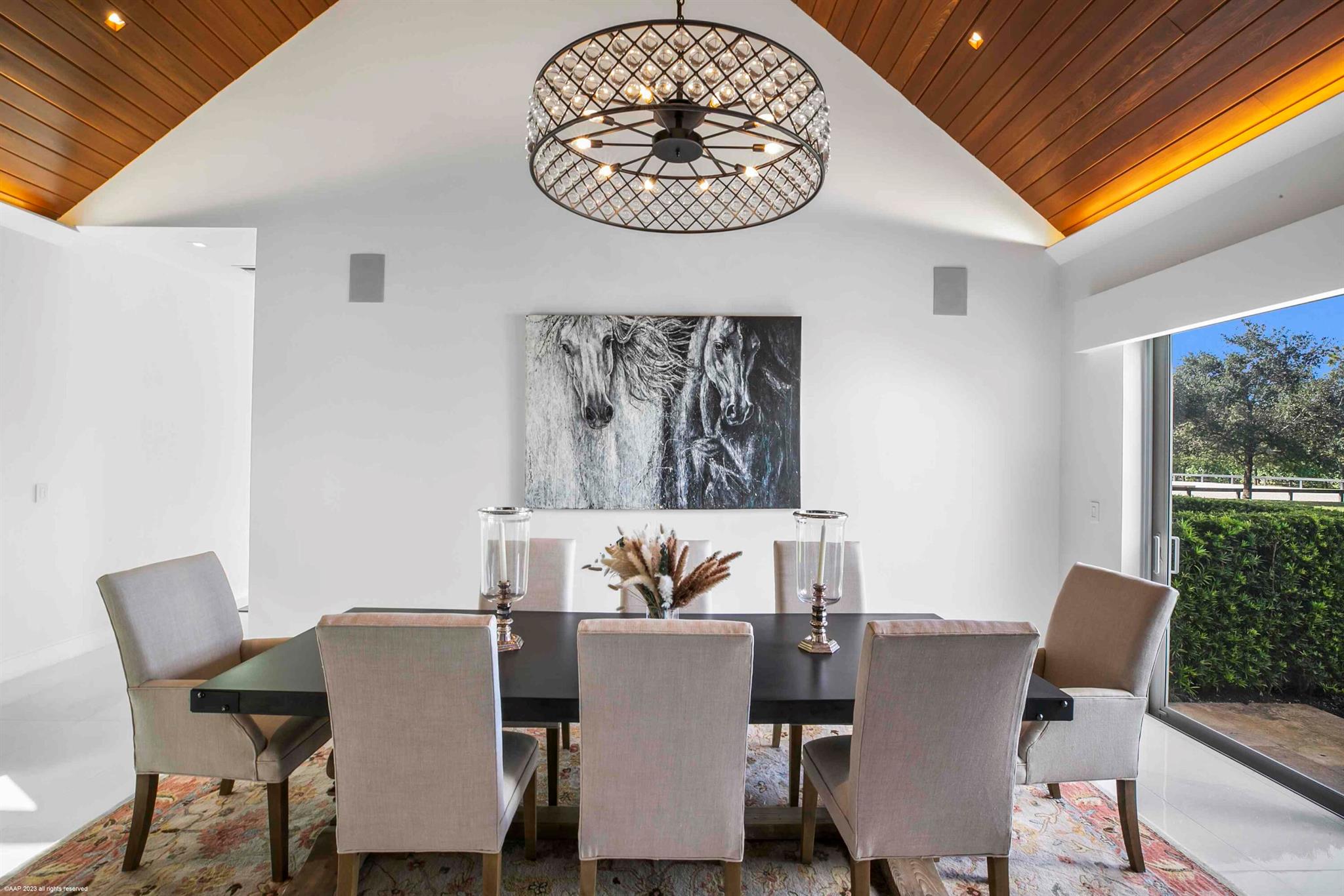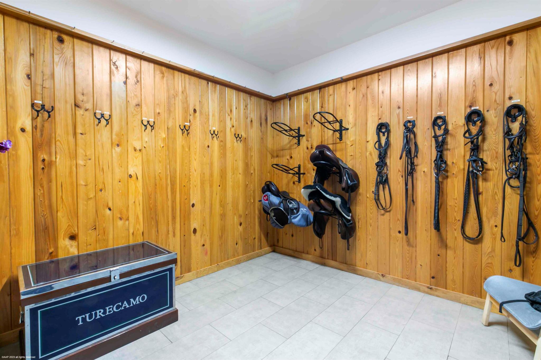 This first-class gated equestrian estate located in Saddle Trail of Wellington, within hacking distance to the show! Enjoy just about a one mile hack to Wellington International all on maintained bridle paths. This all-inclusive property boasts a beautiful and thoughtfully designed 16-stall barn, full equestrian amenities, and a luxurious, designer home, all nestled on over 4 acres in the heart of Wellington's horse country. The stately barn features wide rubber-matted center aisle-ways with 12x12' matted stalls, 2 tack and 2 feed rooms, fly spray system and outdoor grooming areas. There is also a rider's lounge, office and 2 full bathrooms. There are 2 all-weather riding arenas, a round pen and 8 grass paddocks. Property has city water. Seller financing possibly available
