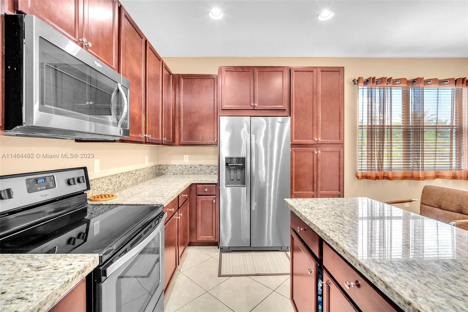 Enter this modern 3 story 2016 townhome from the lush, shaded community gardens that you can admire from a balcony on every floor! Your first level conveniently has its own bedroom, bath & storage. Climb the staircase to a kitchen nicely finished with 42" upper wooden cabinets, stainless steel Whirlpool appliances, granite counters & center isle with lots of extra space. Dining & living areas are ample with 17x17 ceramic tiles & beautiful ceiling lamps + nicely appointed powder room. Your top floor boasts a spacious, carpeted master with dual closets & sinks with a luxury soaker tub, clear tempered glass shower and fine finishes. The 3rd bed & bath are also on this floor. Your 2 car garage has a showroom floor. Community has gym & heated pool. Very well located near I75, shops & services.