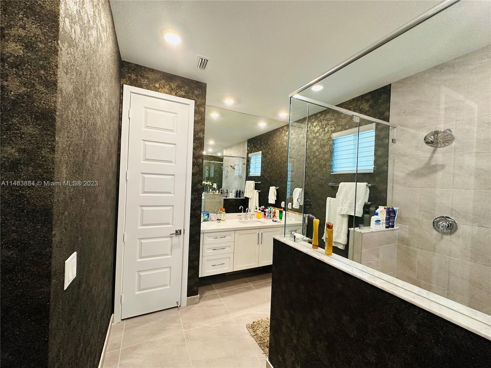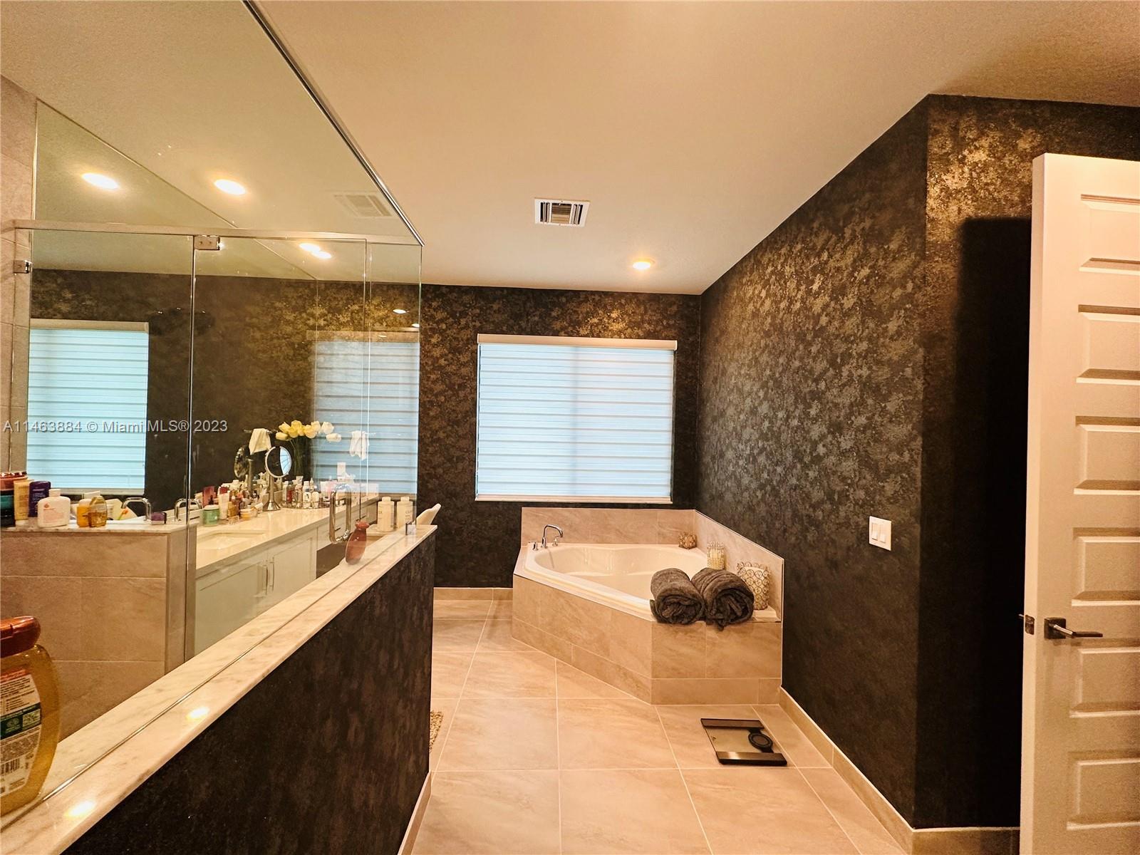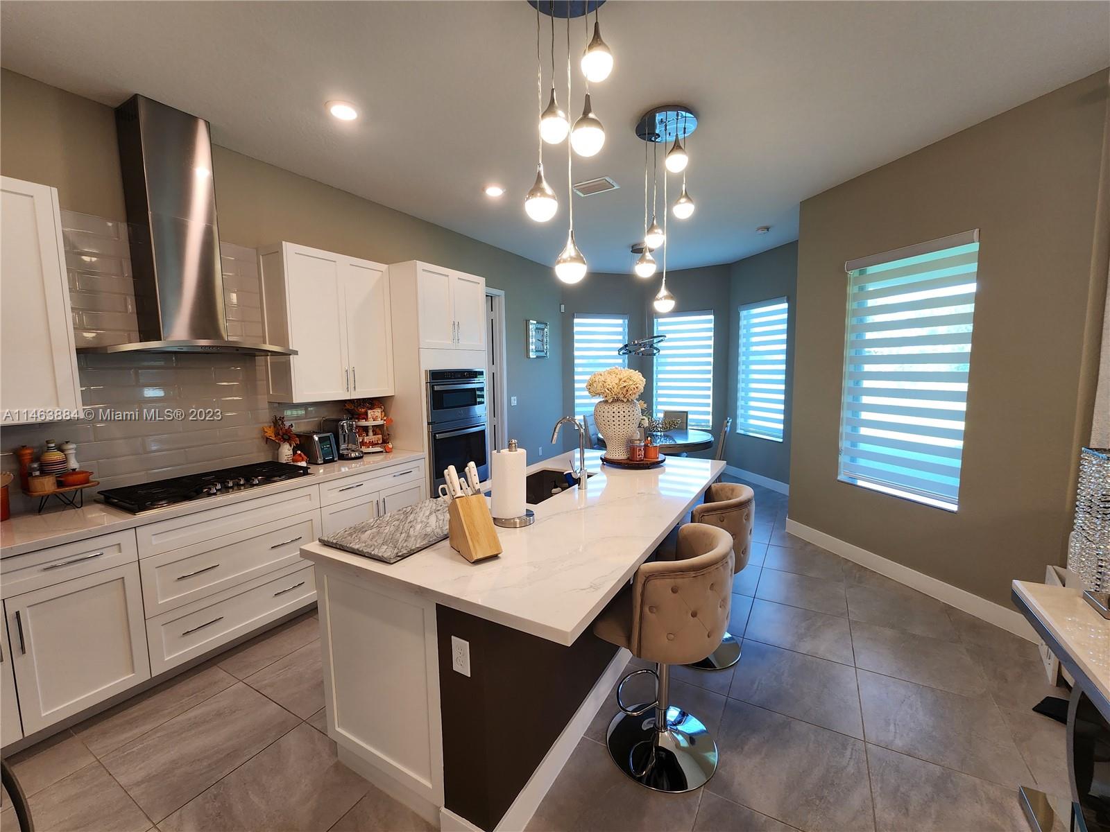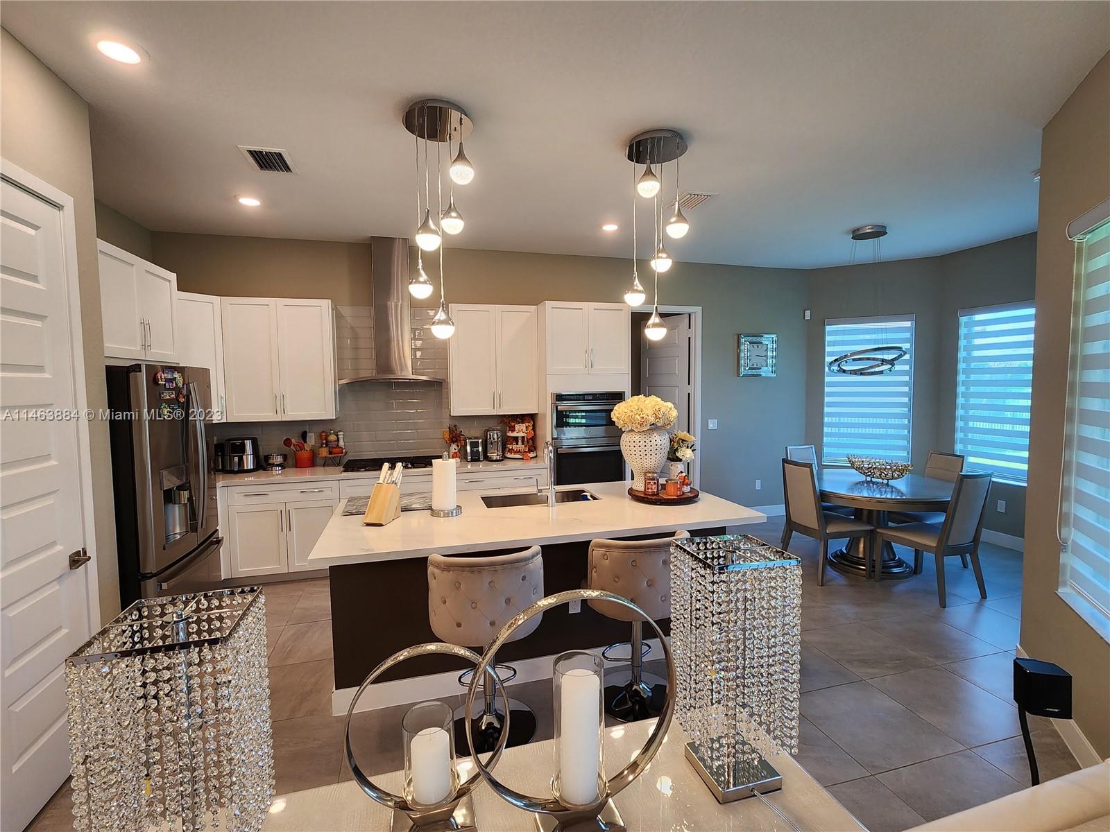 PERFECT HOUSE TO CALL HOME. Contemporary design with next generation electronic facilities, including a TESLA car charger. It has 2 stories, 5 bedrooms which includes a complete in-laws suite, in the first floor, with it private entrance, full bathroom, kitchenette and laundry, an apartment in itself. The property has top of the line stainless steel appliances, wood cabinets, tile on the first floor, a fantastic kitchen island and quartz countertops. Lot of natural light all over. The master has large walking closets, double shower, and double vanities. The property backyard has enough space for a swimming pool and kids’ outdoor playset. The community includes two resort style clubhouses with gyms, swimming pools, kids’ aquatic area and playground. Fantastic place for your family.