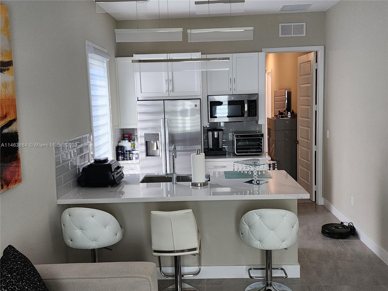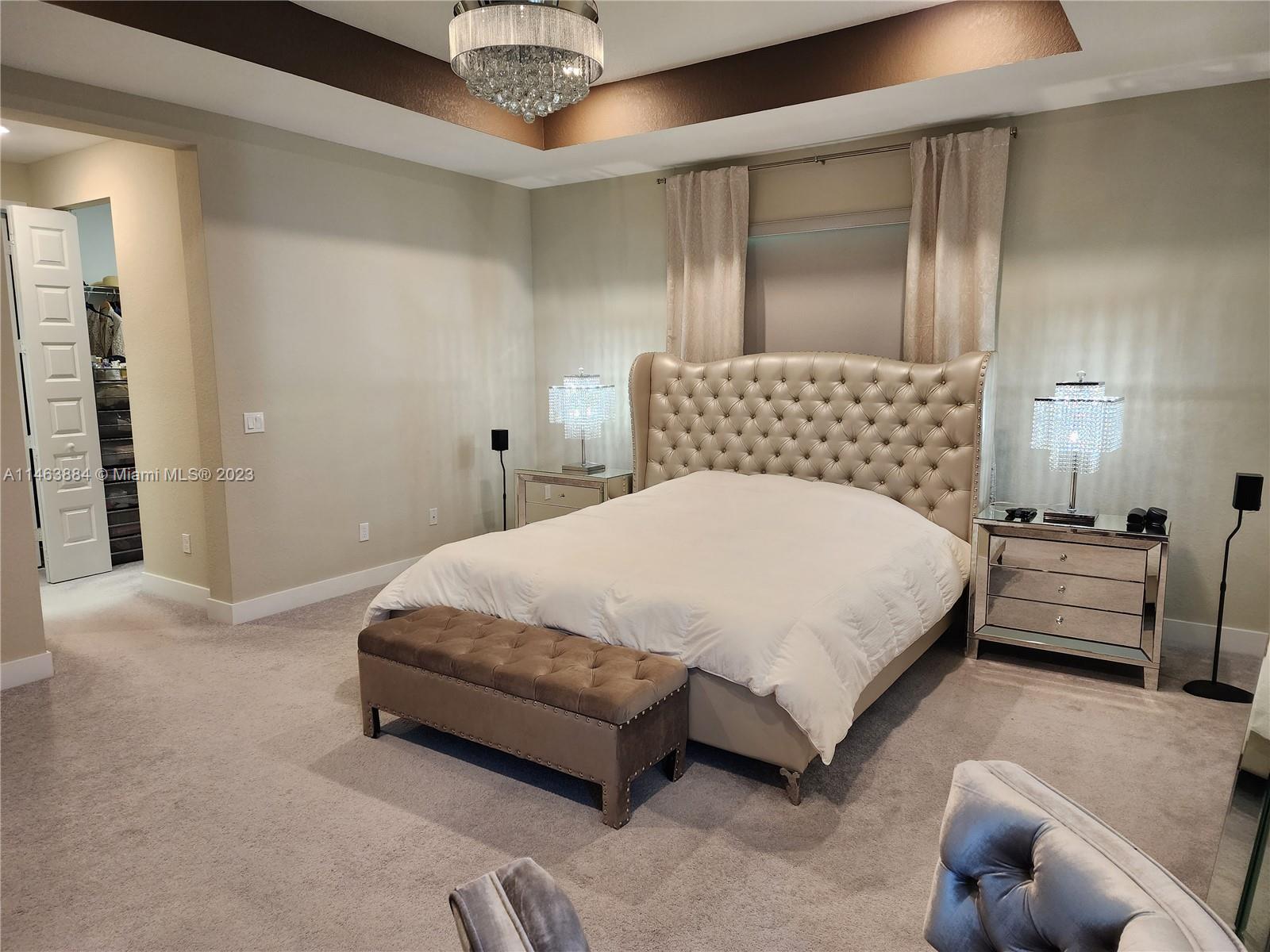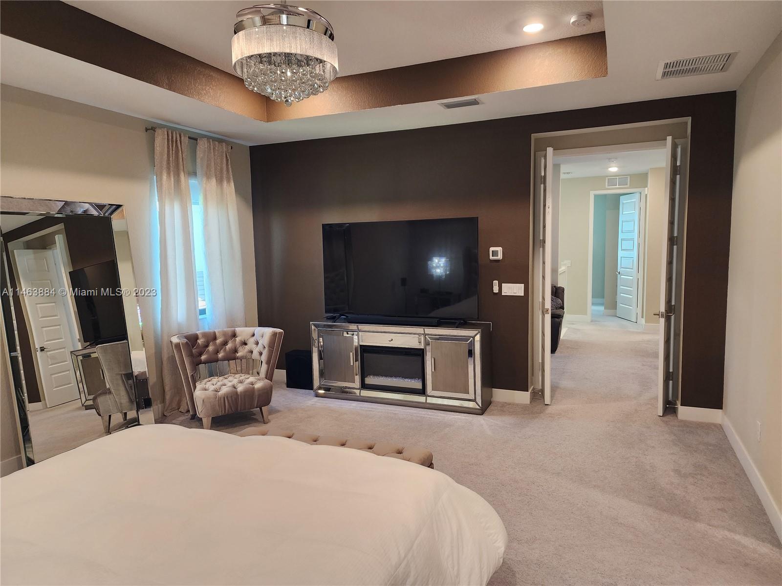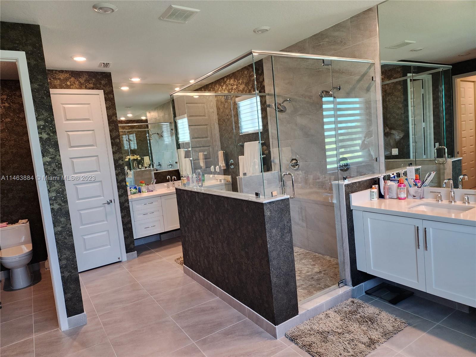 PERFECT HOUSE TO CALL HOME. Contemporary design with next generation electronic facilities, including a TESLA car charger. It has 2 stories, 5 bedrooms which includes a complete in-laws suite, in the first floor, with it private entrance, full bathroom, kitchenette and laundry, an apartment in itself. The property has top of the line stainless steel appliances, wood cabinets, tile on the first floor, a fantastic kitchen island and quartz countertops. Lot of natural light all over. The master has large walking closets, double shower, and double vanities. The property backyard has enough space for a swimming pool and kids’ outdoor playset. The community includes two resort style clubhouses with gyms, swimming pools, kids’ aquatic area and playground. Fantastic place for your family.