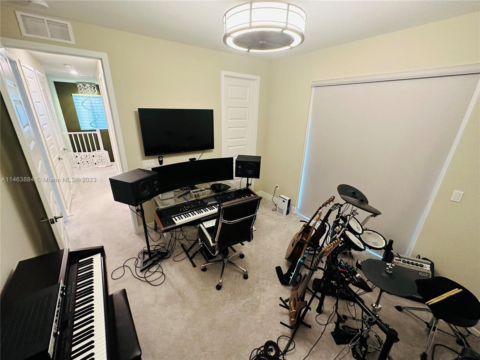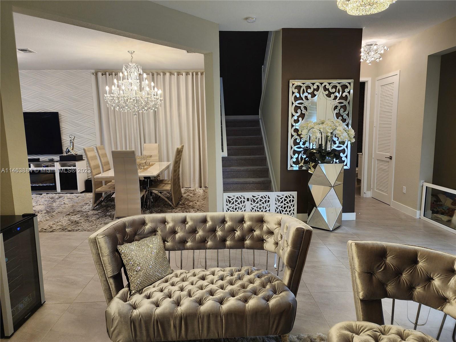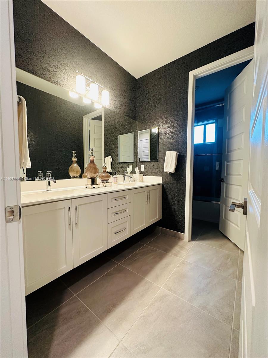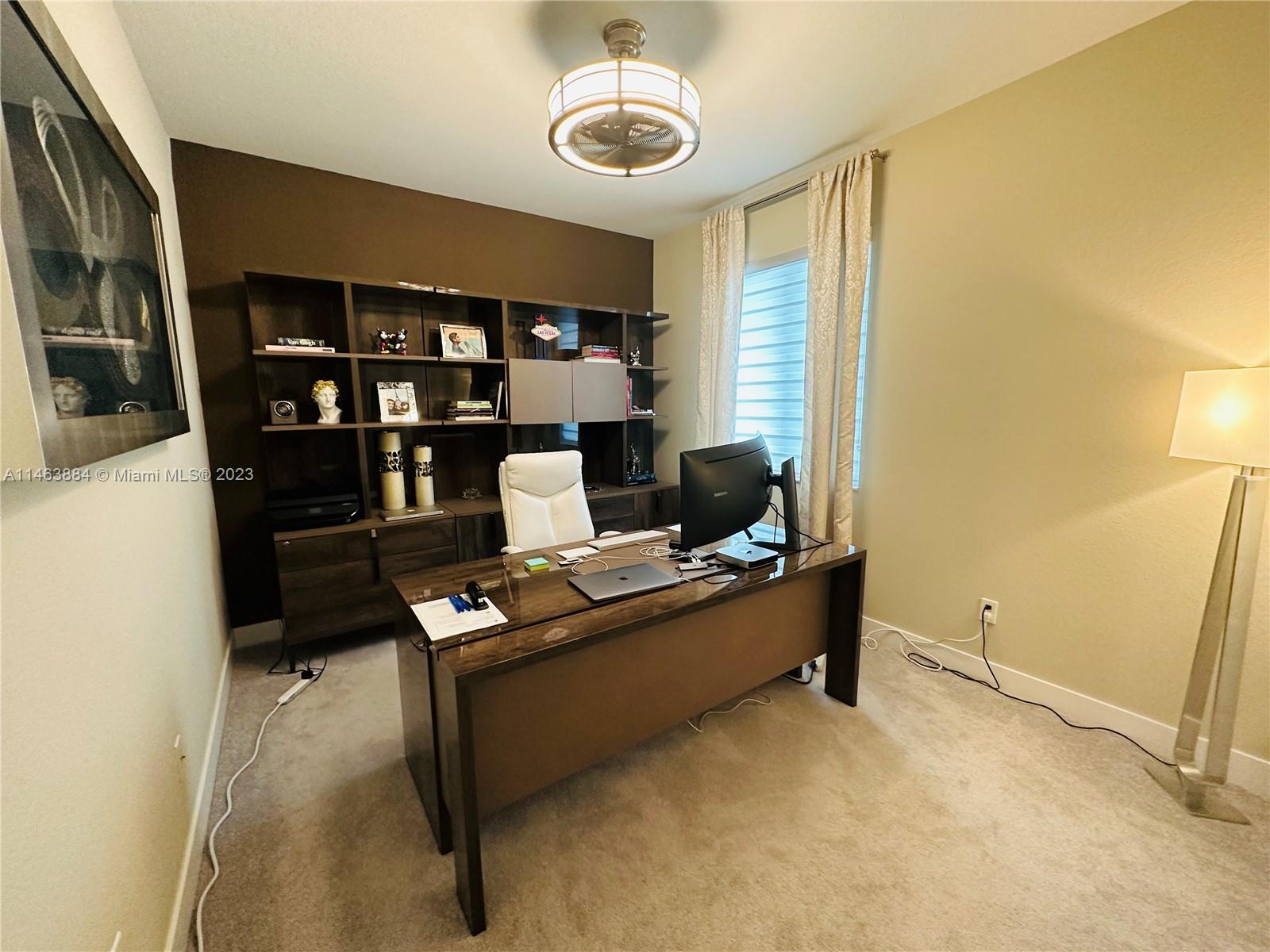 PERFECT HOUSE TO CALL HOME. Contemporary design with next generation electronic facilities, including a TESLA car charger. It has 2 stories, 5 bedrooms which includes a complete in-laws suite, in the first floor, with it private entrance, full bathroom, kitchenette and laundry, an apartment in itself. The property has top of the line stainless steel appliances, wood cabinets, tile on the first floor, a fantastic kitchen island and quartz countertops. Lot of natural light all over. The master has large walking closets, double shower, and double vanities. The property backyard has enough space for a swimming pool and kids’ outdoor playset. The community includes two resort style clubhouses with gyms, swimming pools, kids’ aquatic area and playground. Fantastic place for your family.