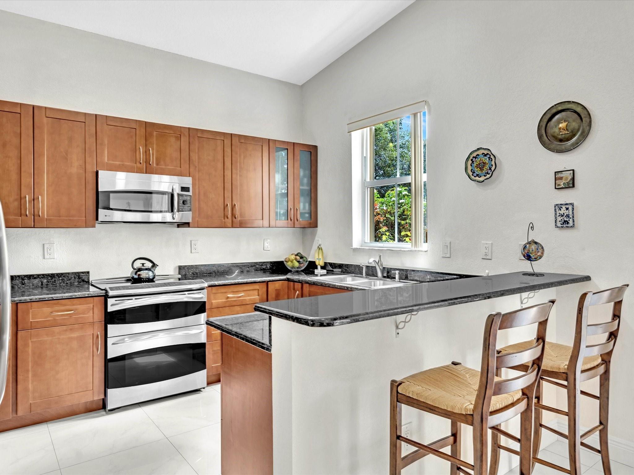 Welcome to your perfect oasis! This meticulously updated lakefront home has a gourmet kitchen with rich wood cabinets including 3 lazy-susan's, stainless appliances with a double oven & granite counters. Spacious primary bedroom ensuite has a walk-in closet with Elfa shelving and a bathroom with an updated dual sink vanity, spa shower & soaking tub. The fenced yard has fruit trees and a screen enclosed patio providing front-row seats to breathtaking sunsets over a tranquil lake for those who appreciate the serenity of lakeside living. This pristine home has gorgeous white porcelain tile, volume ceilings & neutral paint throughout. Recent updates include a tankless water heater, sprinkler system which draws from the lake, garage door motor and springs all replaced in 2021.