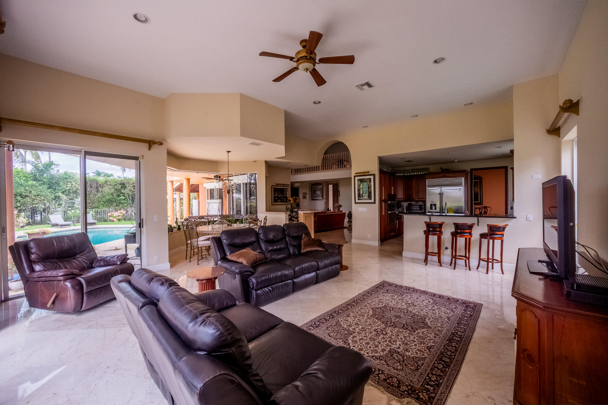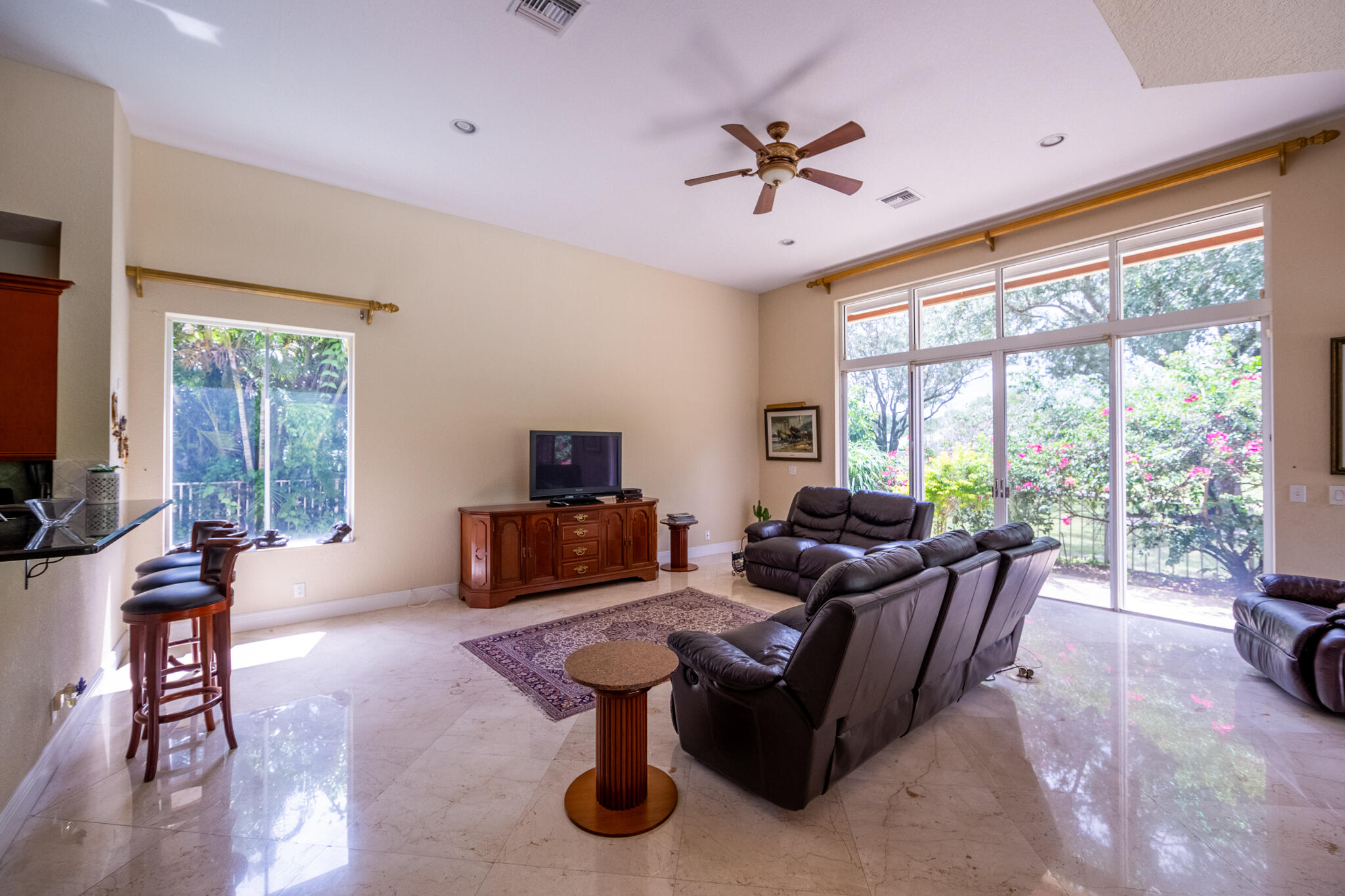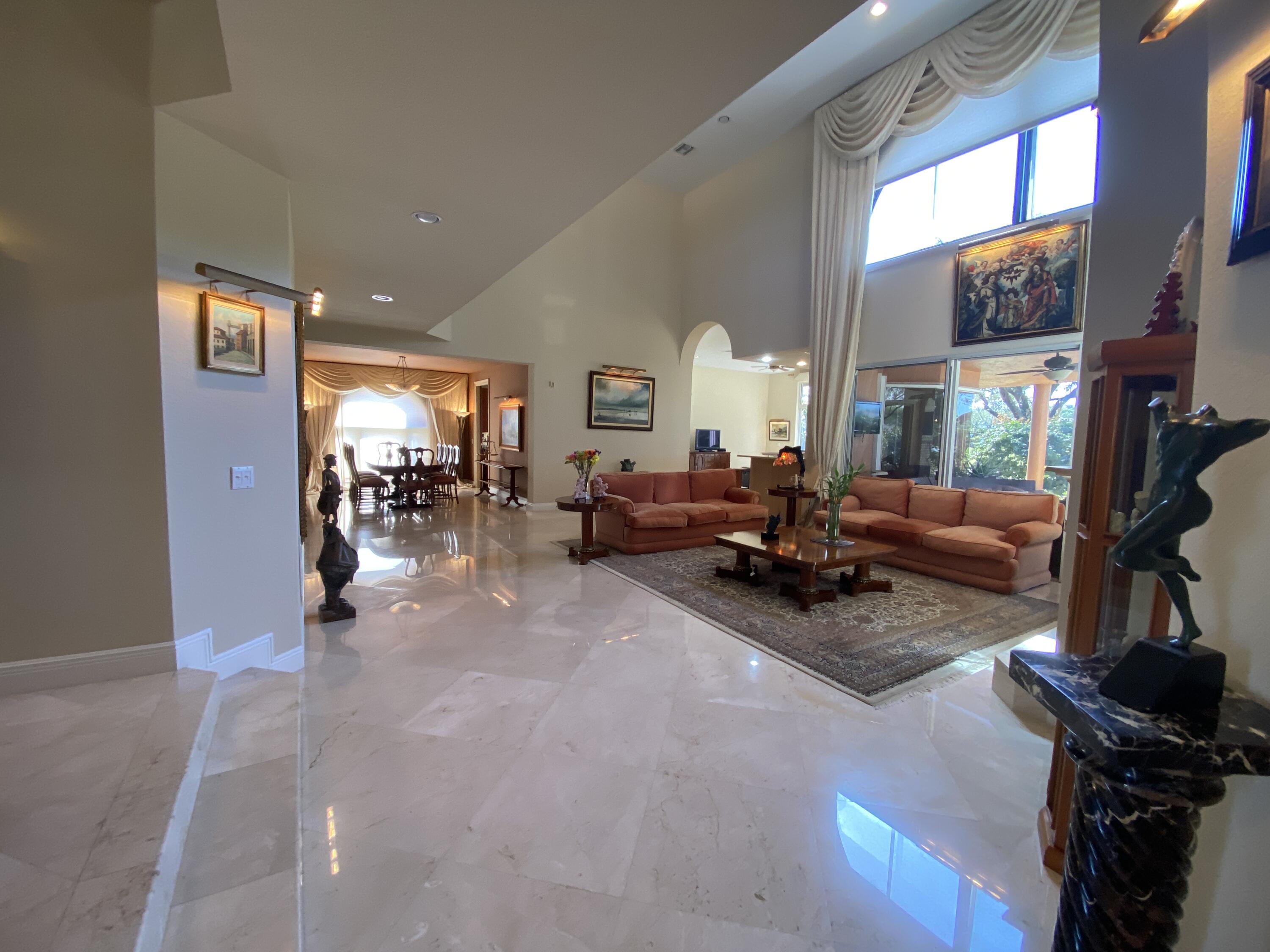 NOW EASY TO SHOW RELAX at your gorgeous, private 6 BD/5 BA home on a cul-de-sac in the Estate section of Grand Oaks featuring marble floors throughout 1st floor, a backyard great for entertaining w/ salt water pool, shower, summer kitchen & cabana bath. Downstairs 2 remodeled bathrooms w/quartz countertops, hand picked vessels & frameless glass shower doors. The upstairs Master Bedroom boosts a large deck with splendid view, bath w/spa tub, double sinks & large closet. Kitchen with granite counter tops, stainless stell appliances and island. Driveway/sides has tumbled travertine floors. Delicious fruit trees: mango, avocato, coconut tree & butterfly garden. Roof 2012. Mandatory membership to the estate of the art Broken Sound Country Club featuring golf, tennis, pickle ball, restaurant.