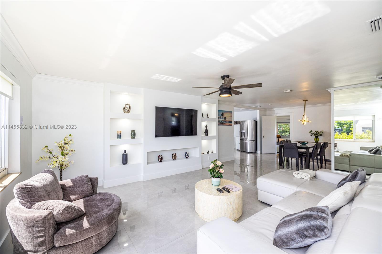 When you’re looking for a place to call home, this house checks off all the boxes. It has the Wow Factor, The X Factor, and the I have to have this home Factor. This lovely 3 bedroom 2 bathroom 1 car garage completely updated. New Kitchen and New SS Appliances, Built-in Entertainment Focal Wall in the living room, Porcelain tile floors throughout, up-dated bathrooms. The guest bathroom has a spa feel with Gold fixtures, a free standing tub for your little princess and a spacious shower and that’s the guest bathroom. The primary room sits in the rear of the home for maximum privacy with a tastefully remodeled bathroom. The bedroom is surrounded with impact windows that bring in this incredible natural light. The back yard is completely fenced, Mango tree & walking distance to the beach.