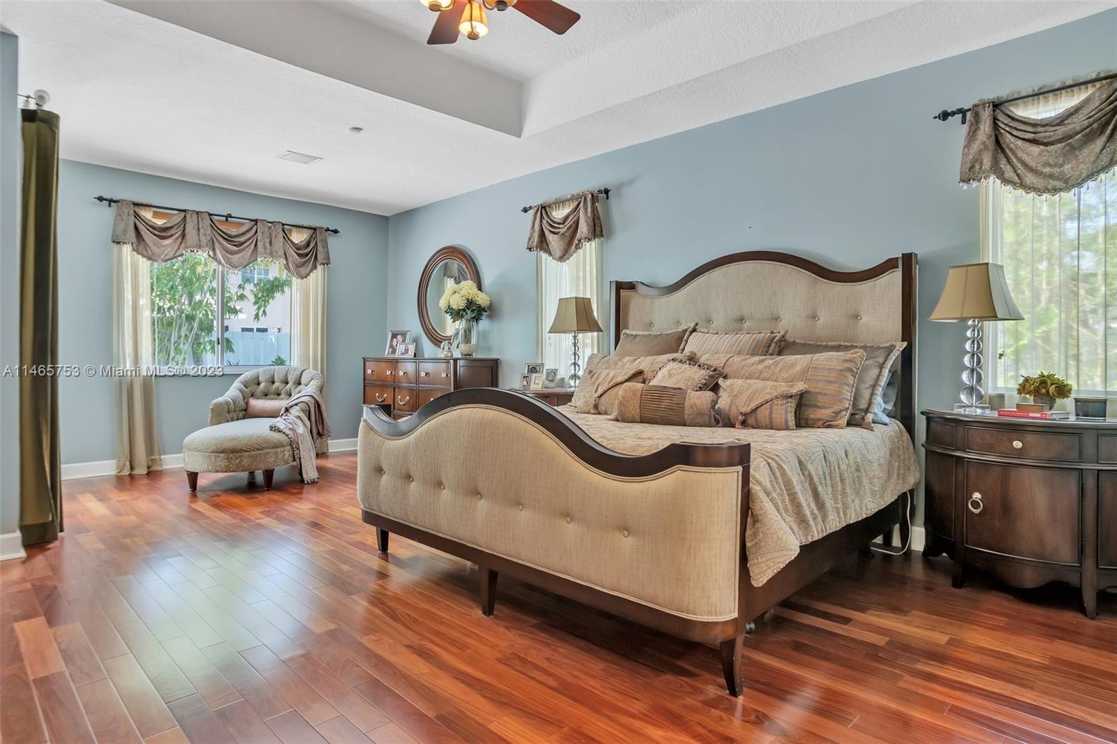 Impeccably maintained Cordoba model in Windsor Palms community. This home features 4 bedrooms, 3 bathrooms, plus an Office/Den, triple-split bedrooms, a large master bedroom with his and hers walk-in closets, formal dining room, a spacious kitchen with stainless-steel appliances, and a large family room with breakfast nook. Beautiful outdoor living area with heated pool, hot-tub, gorgeous landscaping, and lots of privacy! Also features mahogany hardwood floors in all bedrooms, security system, and a 3-car garage with built-in Gladiator steel storage cabinets. Conveniently located close to schools, shopping, and restaurants, with easy access to I-75. Bring your buyers, as this move-in ready home will not last!