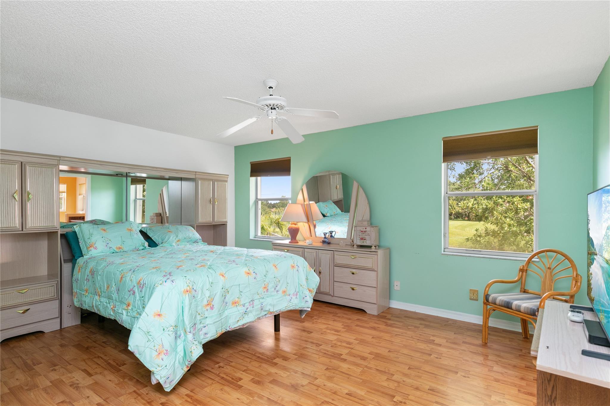 Step inside, & you'll be greeted by the grandeur of 18-foot volume ceilings, while the warm laminate wood flooring adds a touch of sophistication throughout. The heart of the home, an updated kitchen, beckons w/ wood shaker cabinetry, granite countertops, & sleek black stainless steel Samsung appliances. Entertain & unwind effortlessly on your covered patio, overlooking a generously sized waterfront backyard that promises serene moments by the water's edge. Retreat to the upper level, where all bedrooms offer privacy & comfort. The primary bedroom is a true sanctuary, offering scenic water views & an expansive updated bathroom featuring dual vanities, a Jacuzzi tub, & separate shower. Nestled within the gated community of Harbor Island, you'll have access to a community pool & playground.