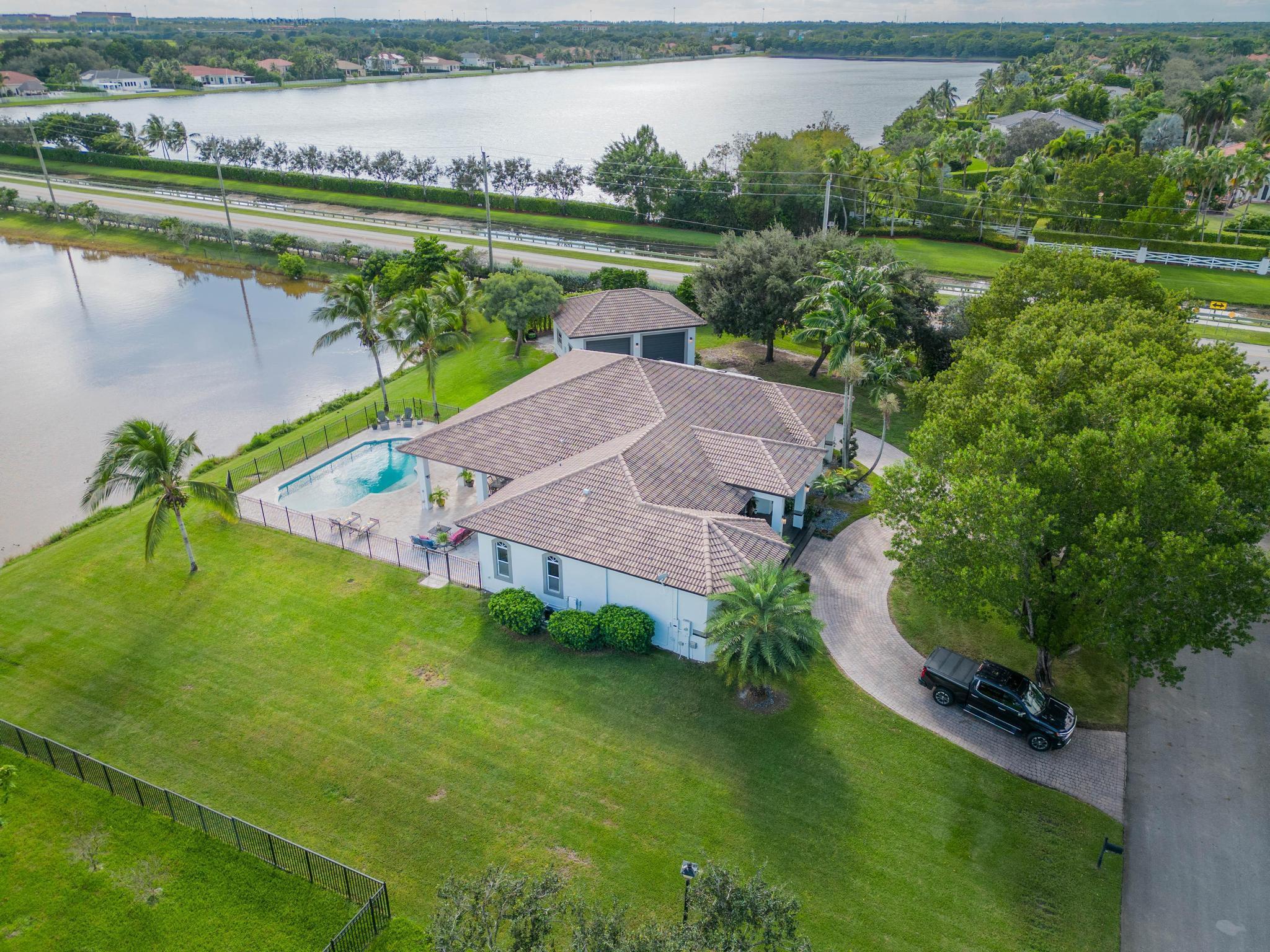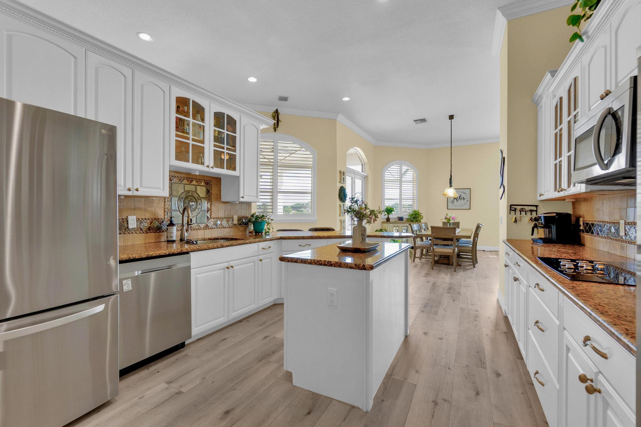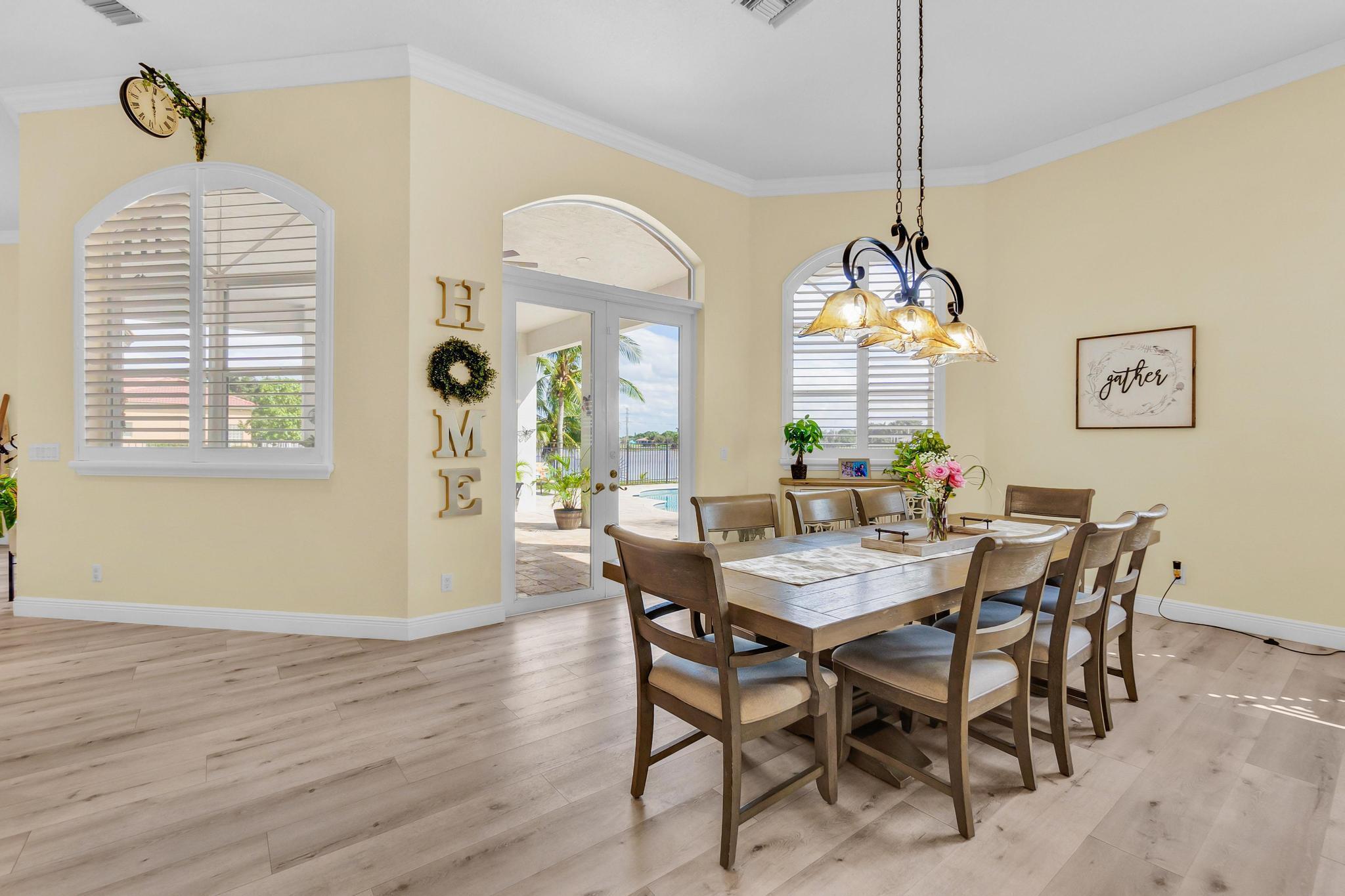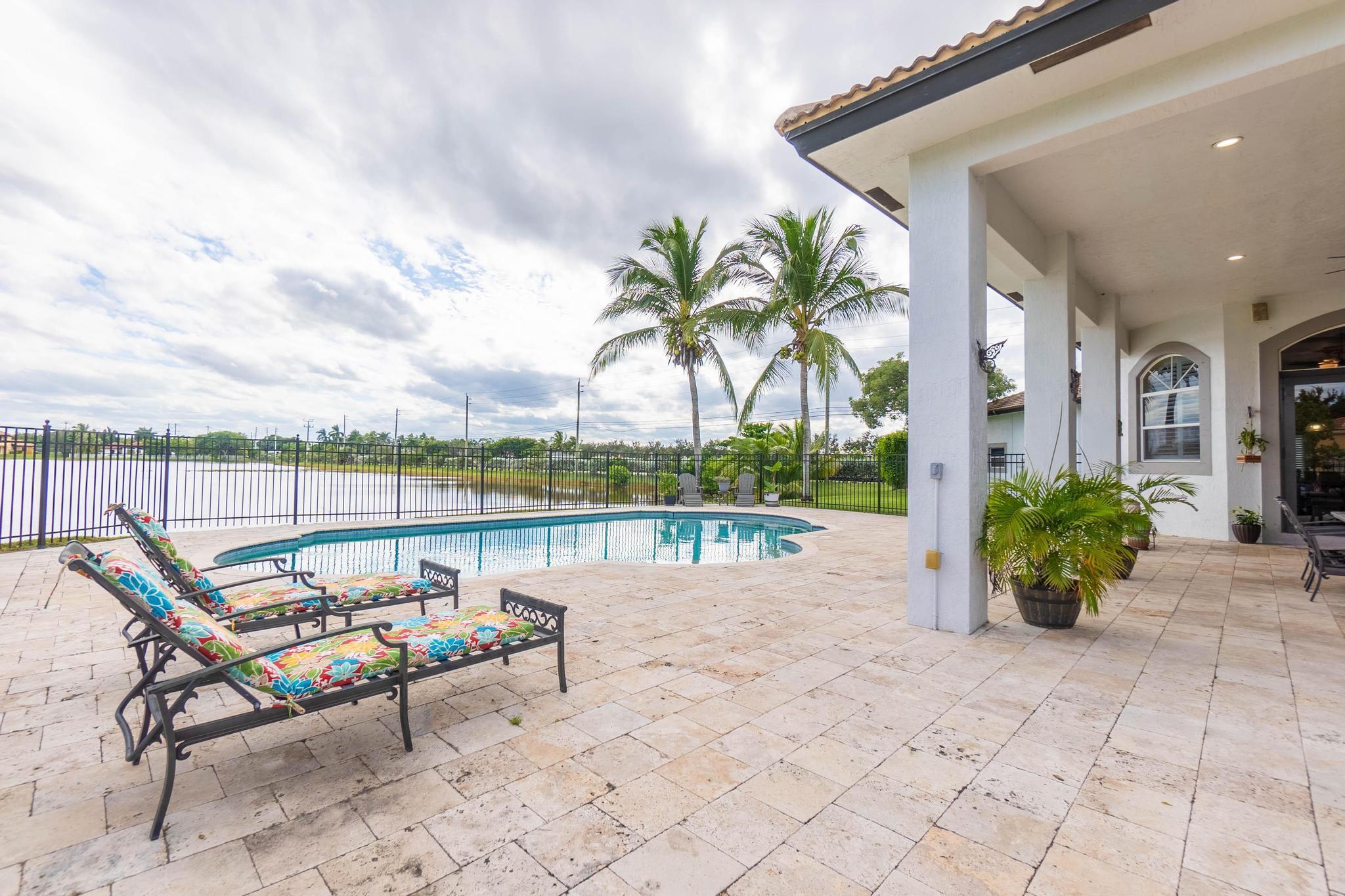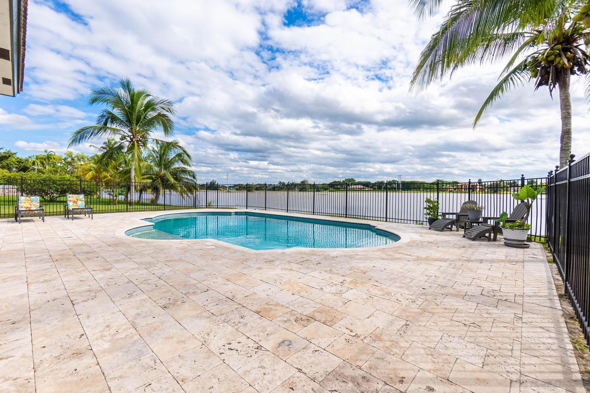 This stunning home on over 3/4 acre offers the epitome of luxurious living with a breathtaking lake view.As you step though the welcoming front porch, you are immediately greeted by an expansive and airy living space that brings the outside in.The open layout with 12' ceilings create a sense of spaciousness and warmth.Features luxury vinyl though main living area with carpet in the bedrooms.This split floorplan offers 2 roomy bedrooms with Jack and Jill attached bath.3rd bedroom has a cabana bath across the hall.The main bedroom is large and features access to the pool,a lake view and walk in closets.The gigantic main bath suite including dual sinks, a walk-through shower and whirlpool tub.The pool overlooking the lake has a huge, covered patio and is perfect for entertaining