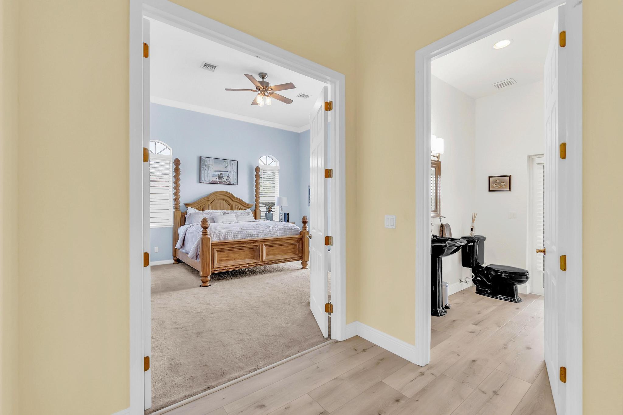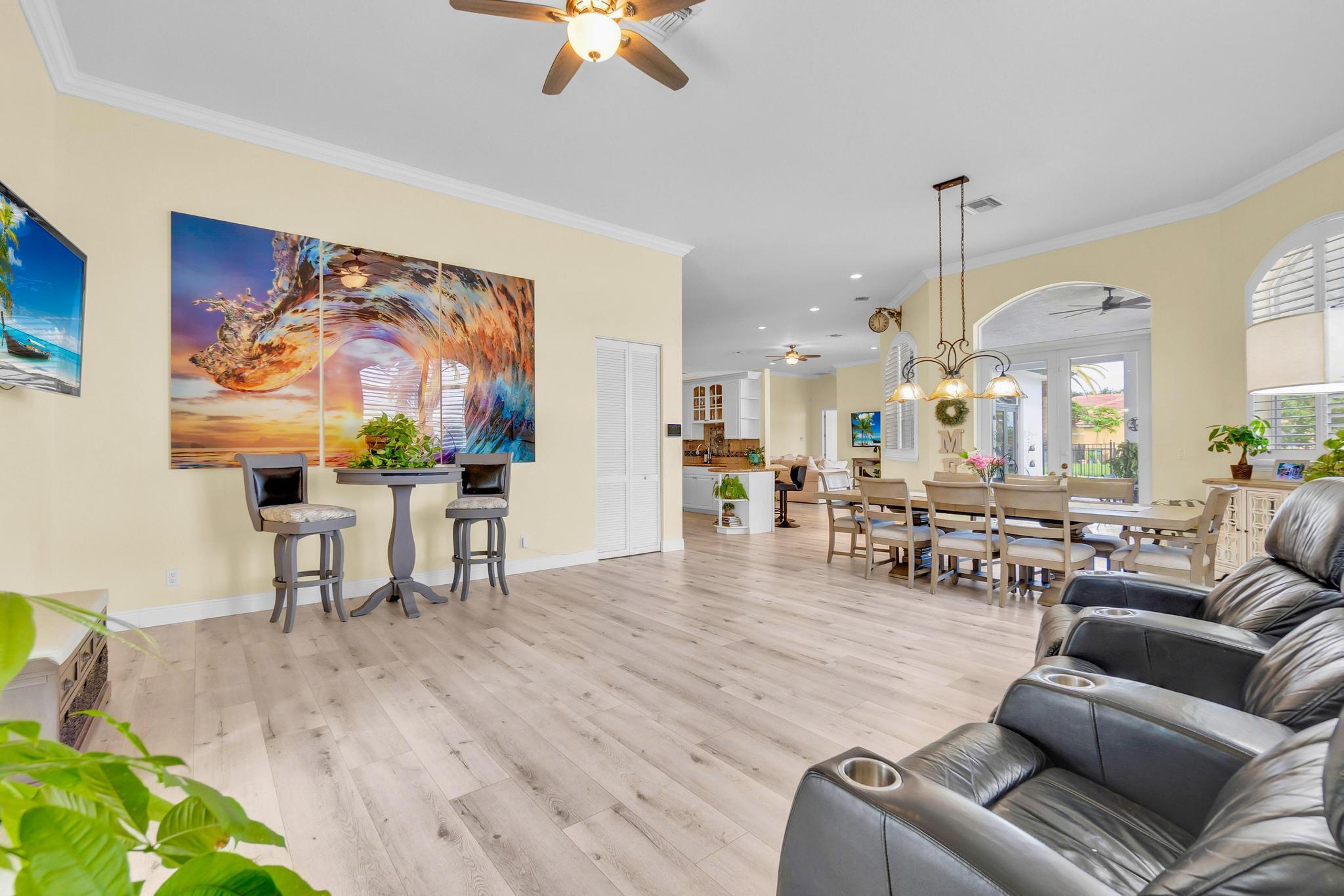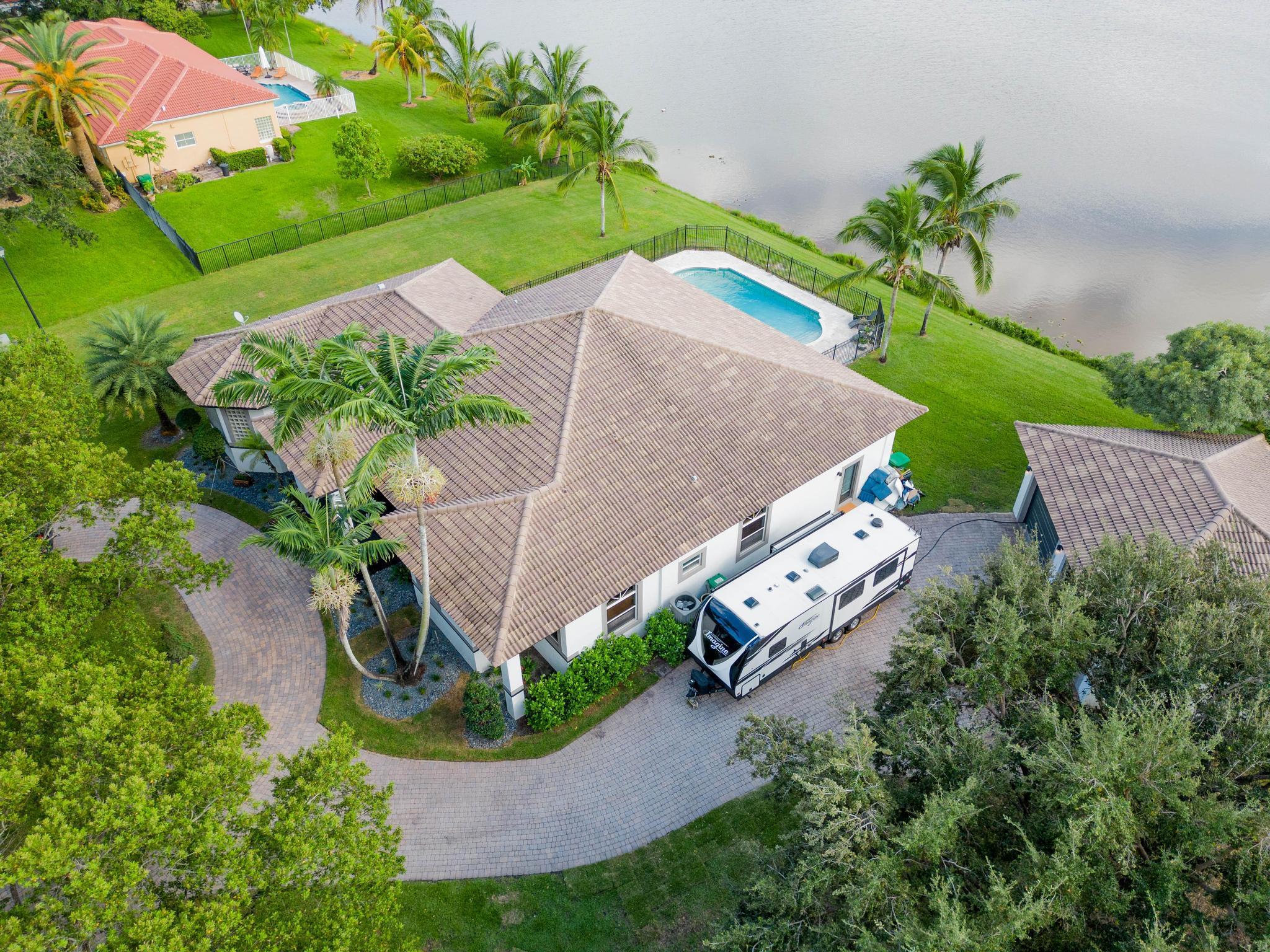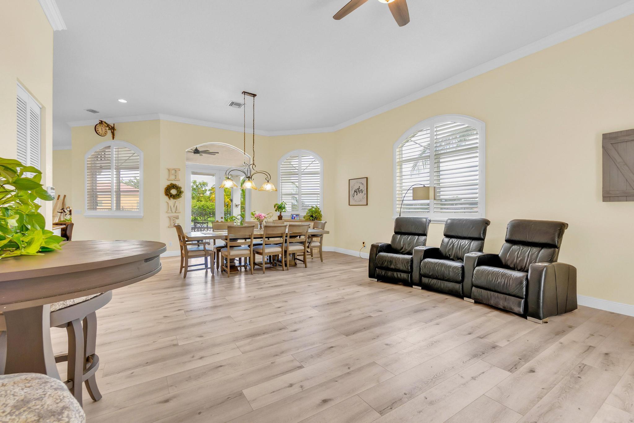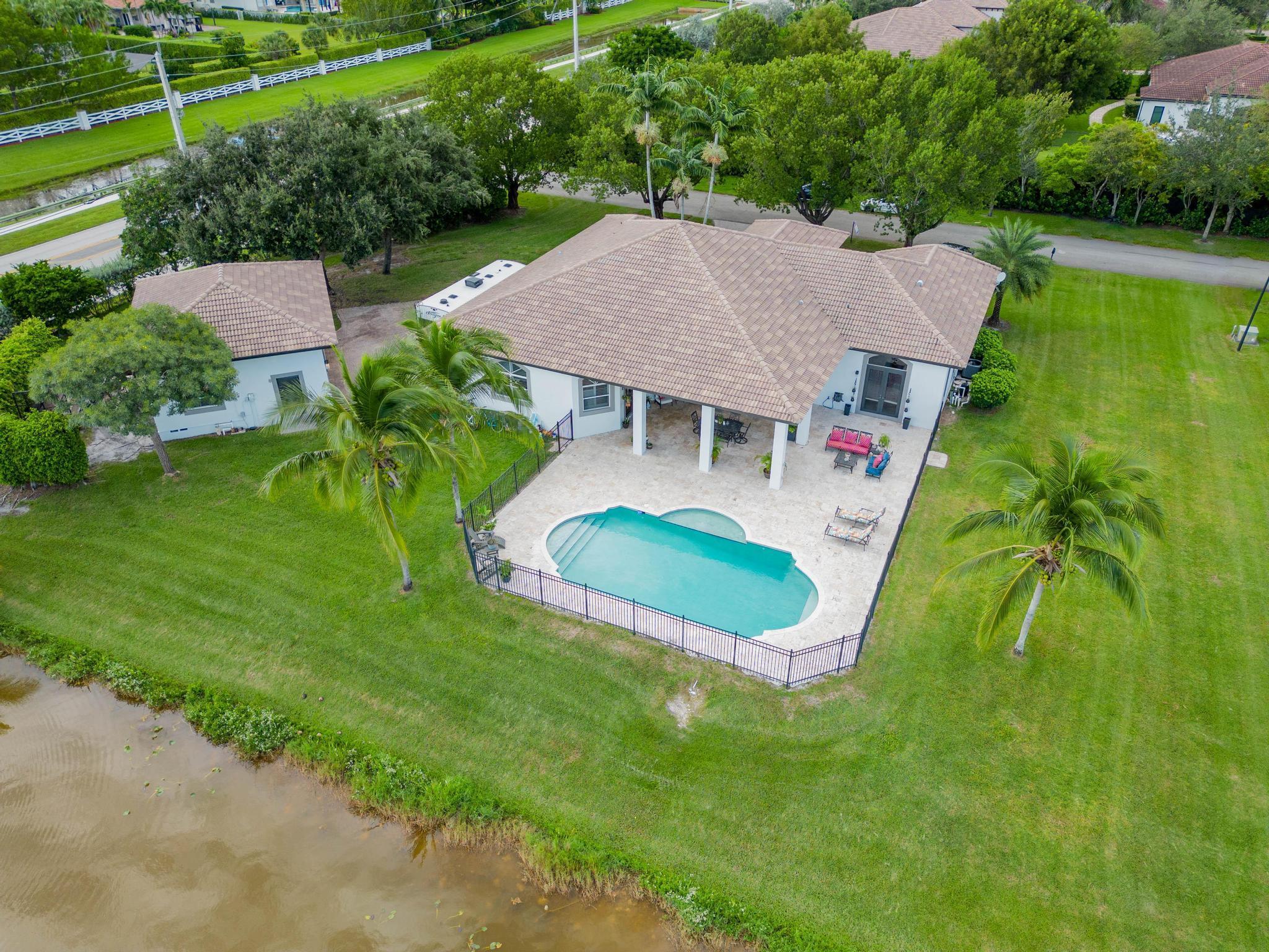 This stunning home on over 3/4 acre offers the epitome of luxurious living with a breathtaking lake view.As you step though the welcoming front porch, you are immediately greeted by an expansive and airy living space that brings the outside in.The open layout with 12' ceilings create a sense of spaciousness and warmth.Features luxury vinyl though main living area with carpet in the bedrooms.This split floorplan offers 2 roomy bedrooms with Jack and Jill attached bath.3rd bedroom has a cabana bath across the hall.The main bedroom is large and features access to the pool,a lake view and walk in closets.The gigantic main bath suite including dual sinks, a walk-through shower and whirlpool tub.The pool overlooking the lake has a huge, covered patio and is perfect for entertaining
