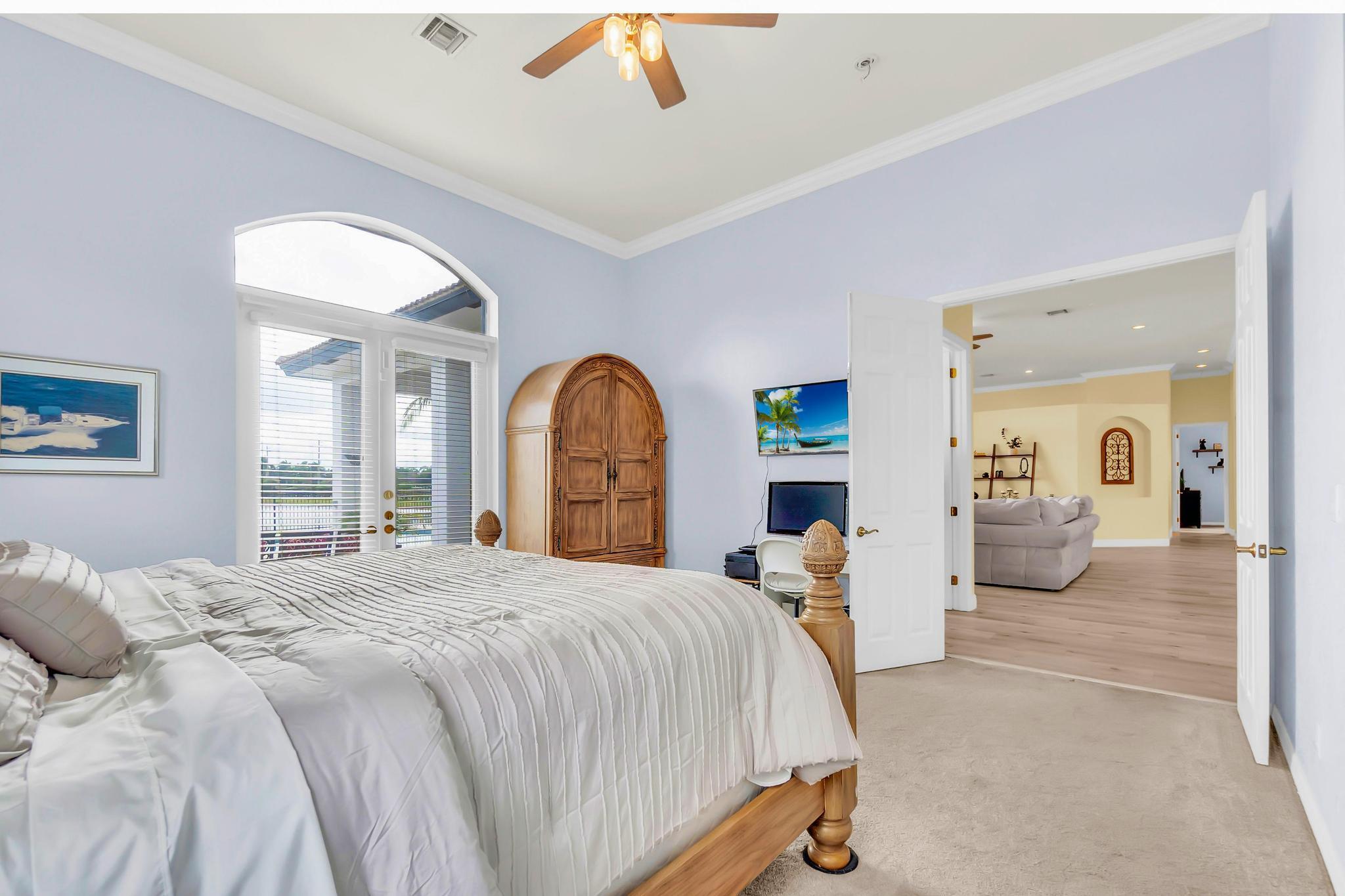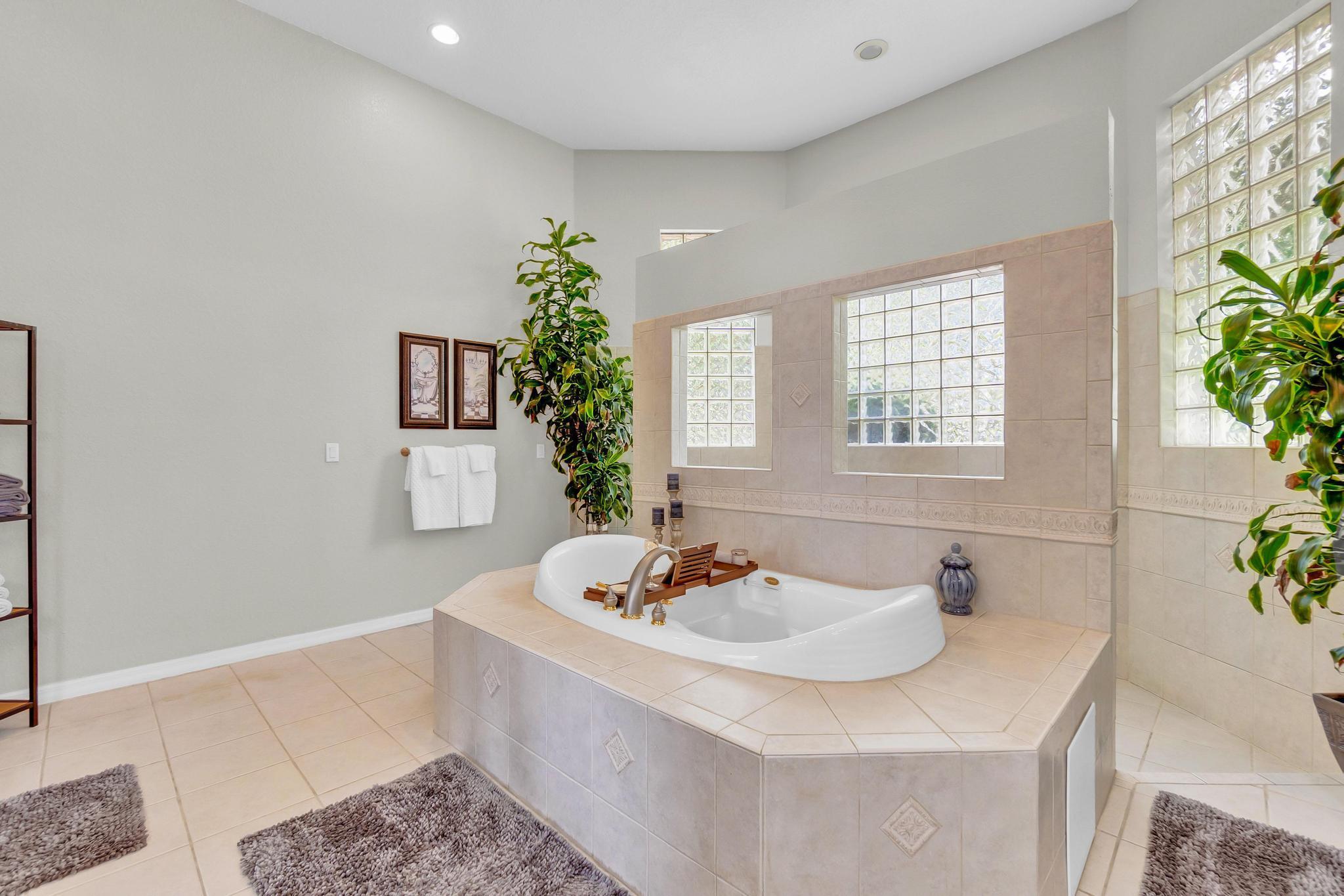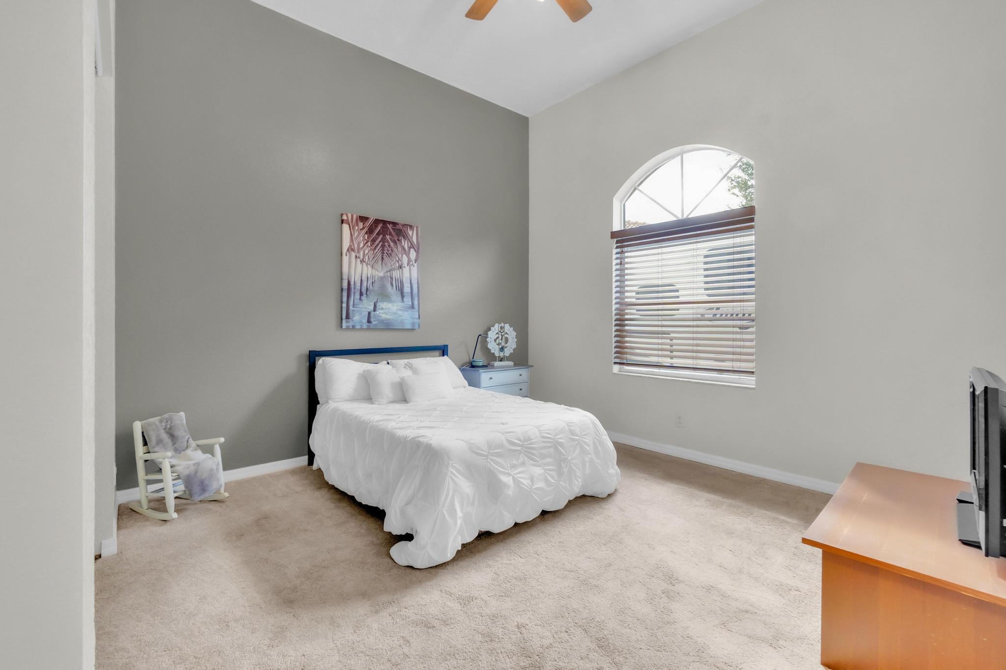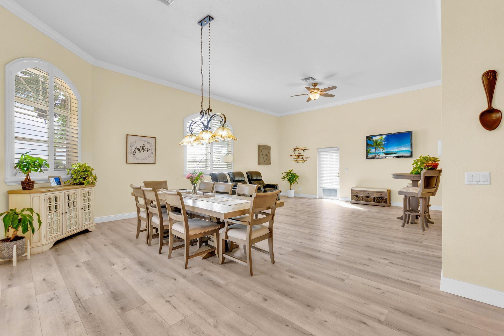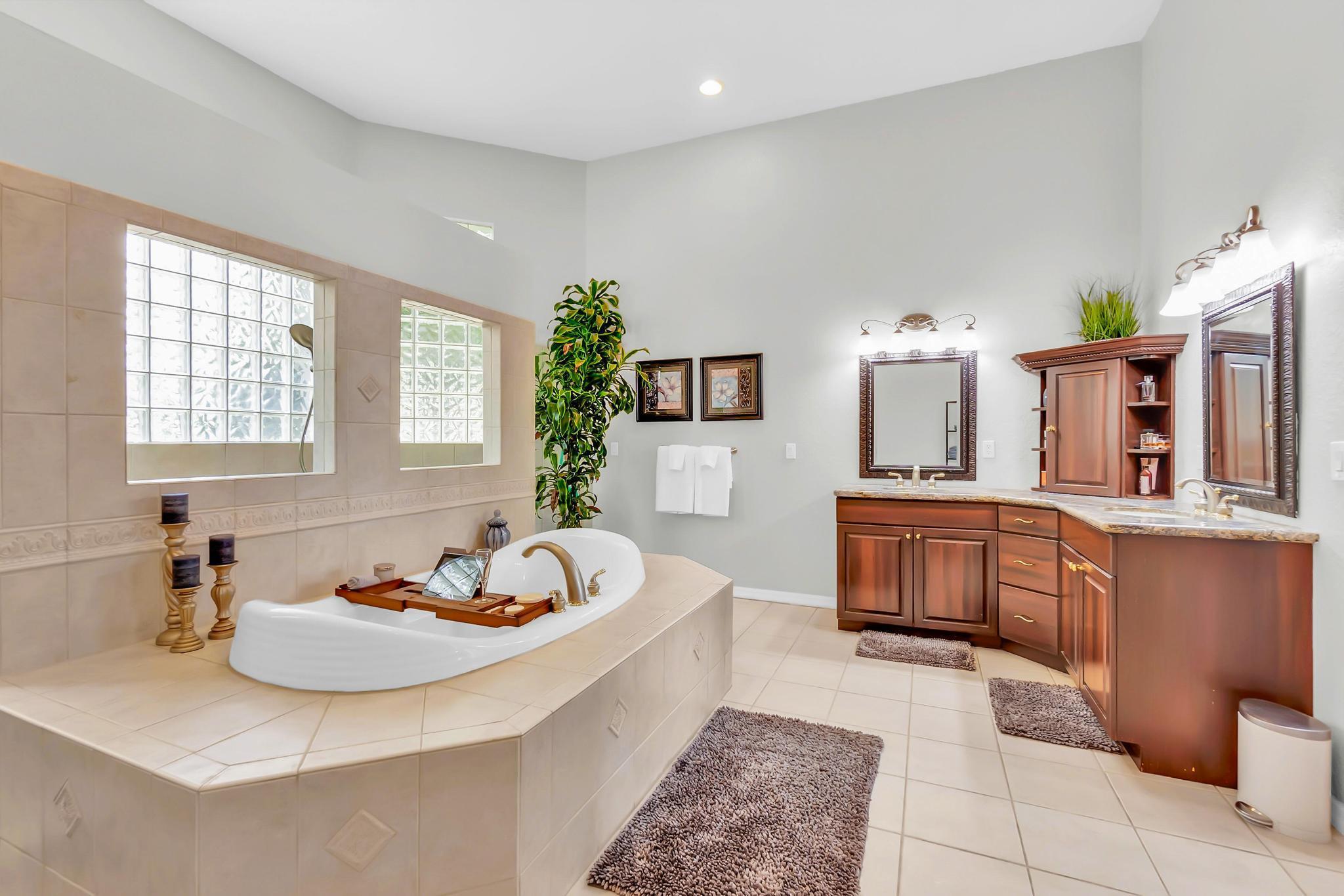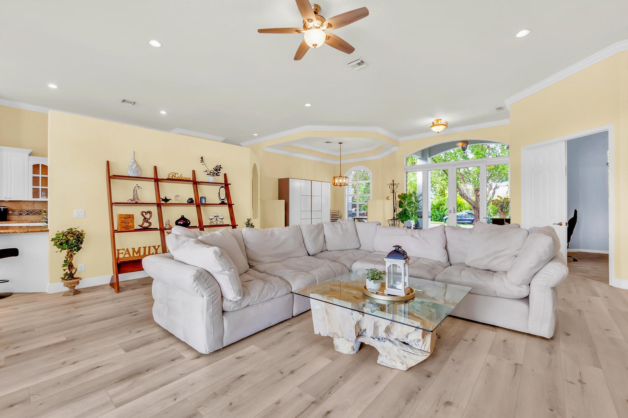This stunning home on over 3/4 acre offers the epitome of luxurious living with a breathtaking lake view.As you step though the welcoming front porch, you are immediately greeted by an expansive and airy living space that brings the outside in.The open layout with 12' ceilings create a sense of spaciousness and warmth.Features luxury vinyl though main living area with carpet in the bedrooms.This split floorplan offers 2 roomy bedrooms with Jack and Jill attached bath.3rd bedroom has a cabana bath across the hall.The main bedroom is large and features access to the pool,a lake view and walk in closets.The gigantic main bath suite including dual sinks, a walk-through shower and whirlpool tub.The pool overlooking the lake has a huge, covered patio and is perfect for entertaining