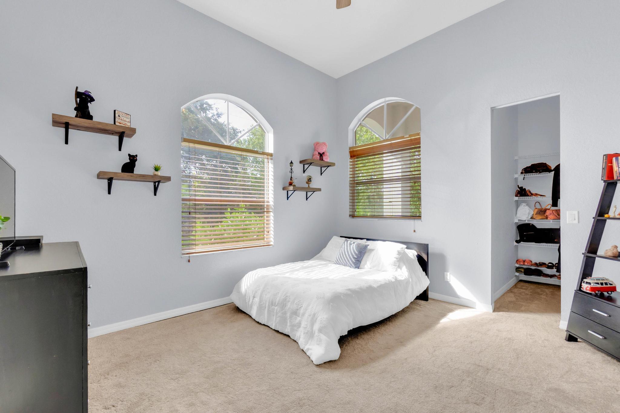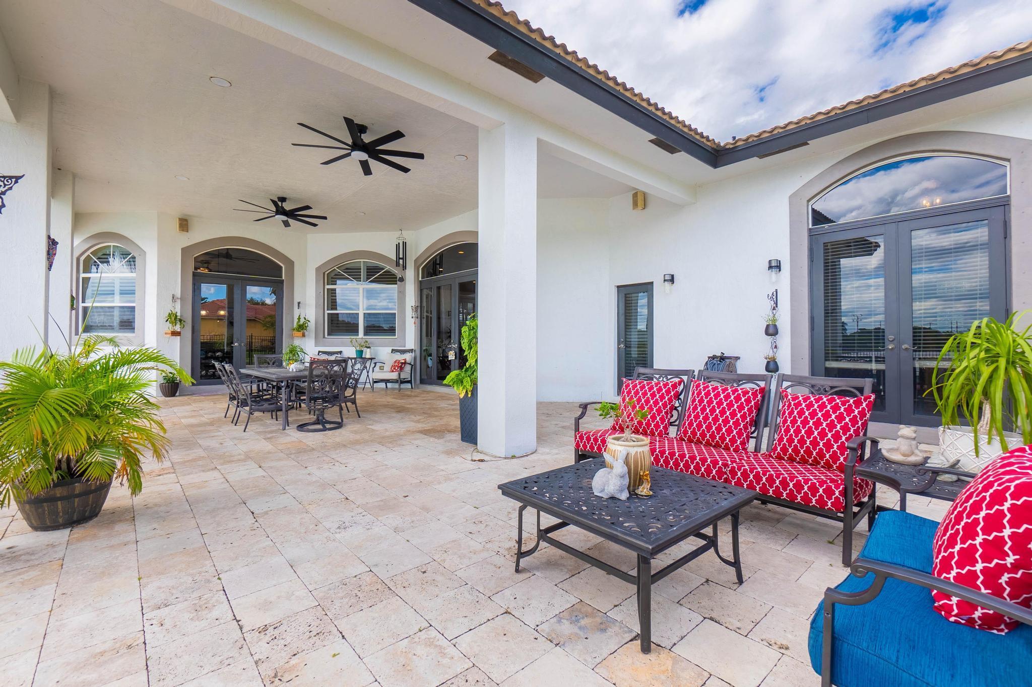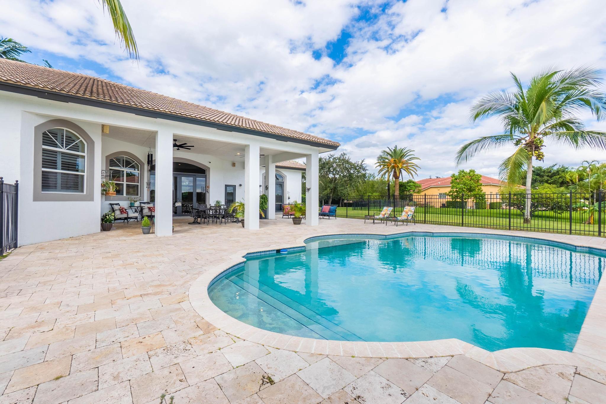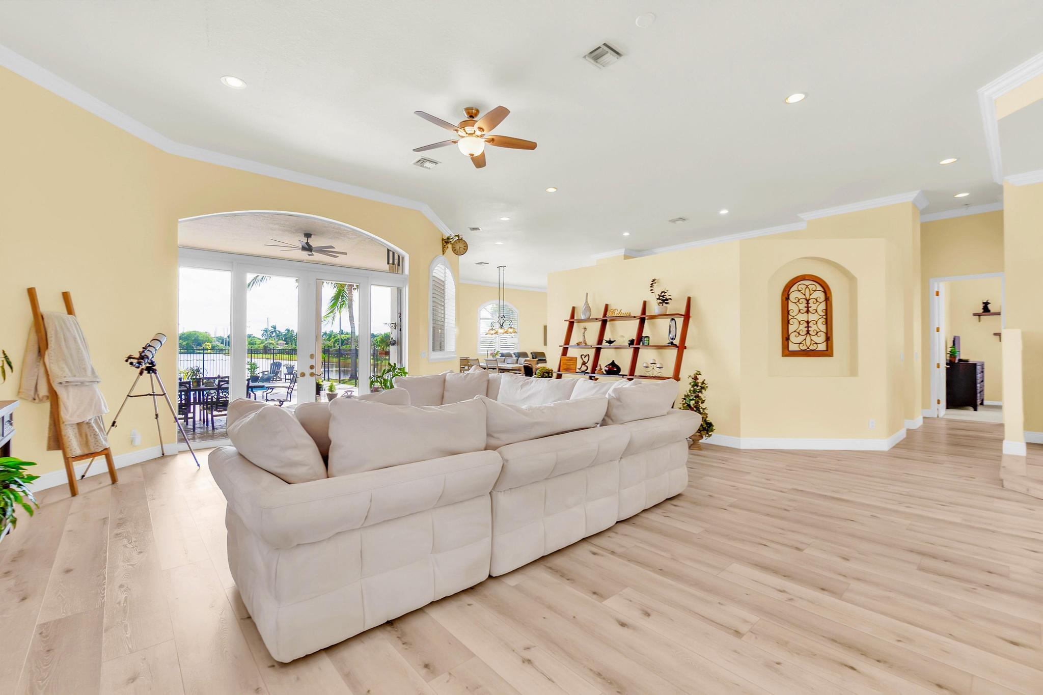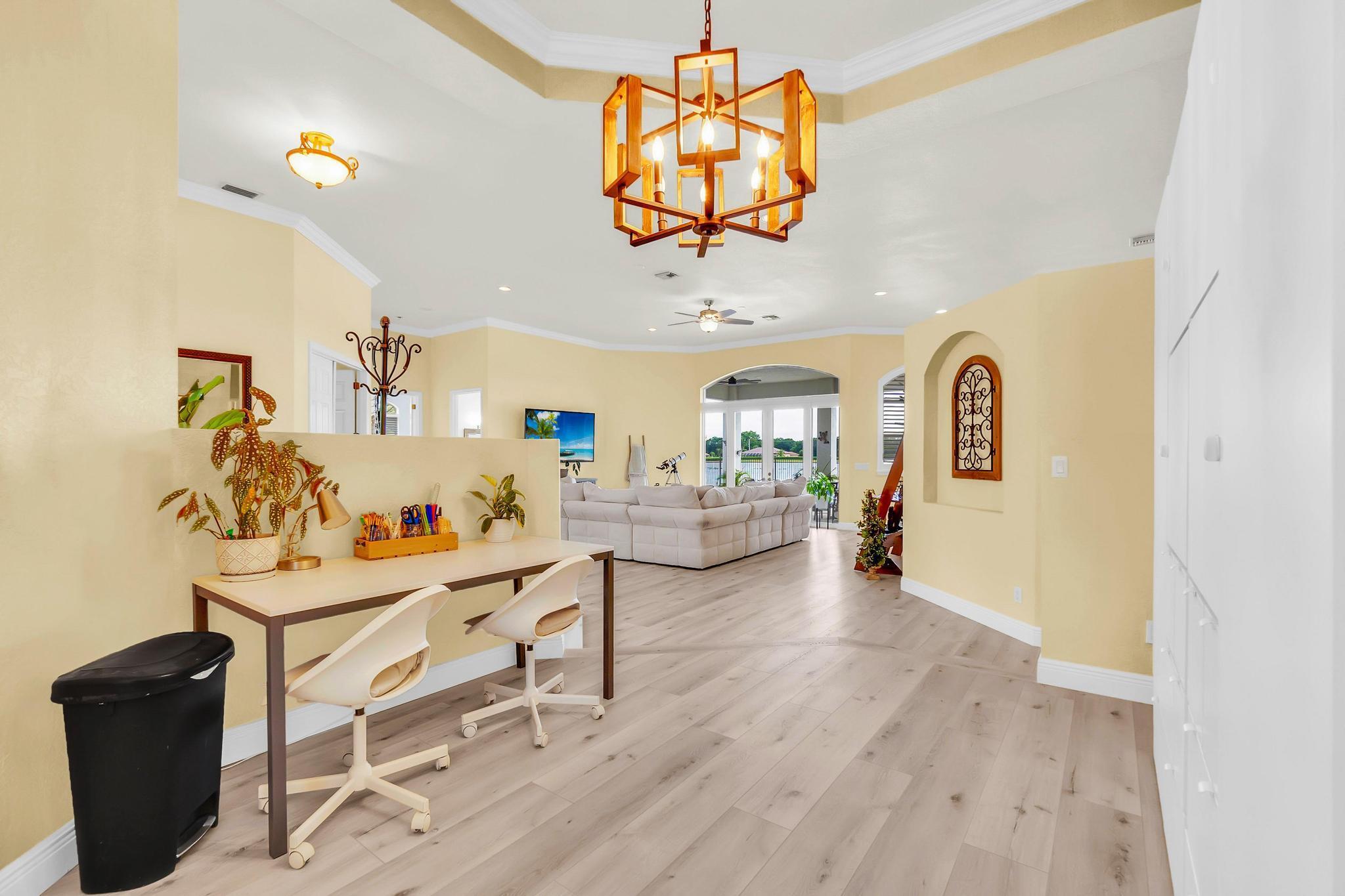 This stunning home on over 3/4 acre offers the epitome of luxurious living with a breathtaking lake view.As you step though the welcoming front porch, you are immediately greeted by an expansive and airy living space that brings the outside in.The open layout with 12' ceilings create a sense of spaciousness and warmth.Features luxury vinyl though main living area with carpet in the bedrooms.This split floorplan offers 2 roomy bedrooms with Jack and Jill attached bath.3rd bedroom has a cabana bath across the hall.The main bedroom is large and features access to the pool,a lake view and walk in closets.The gigantic main bath suite including dual sinks, a walk-through shower and whirlpool tub.The pool overlooking the lake has a huge, covered patio and is perfect for entertaining
