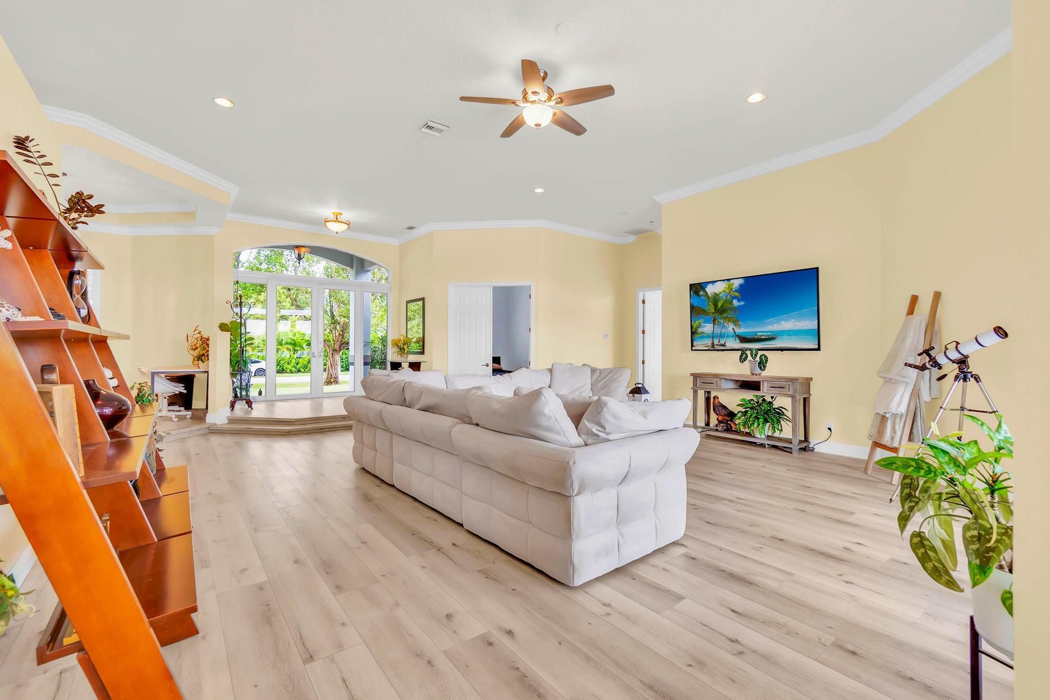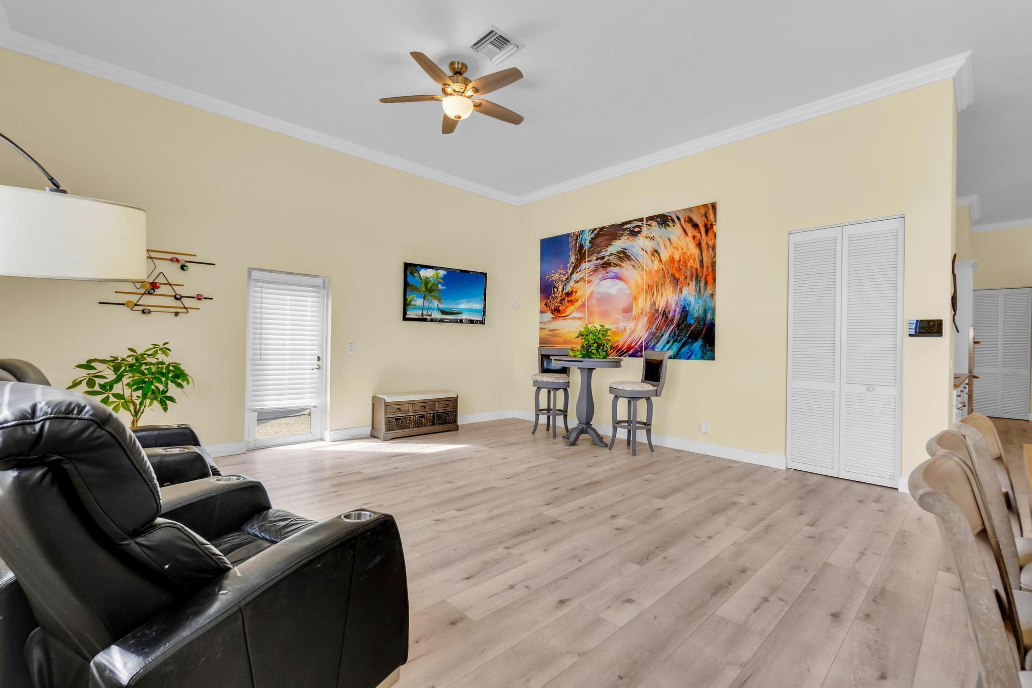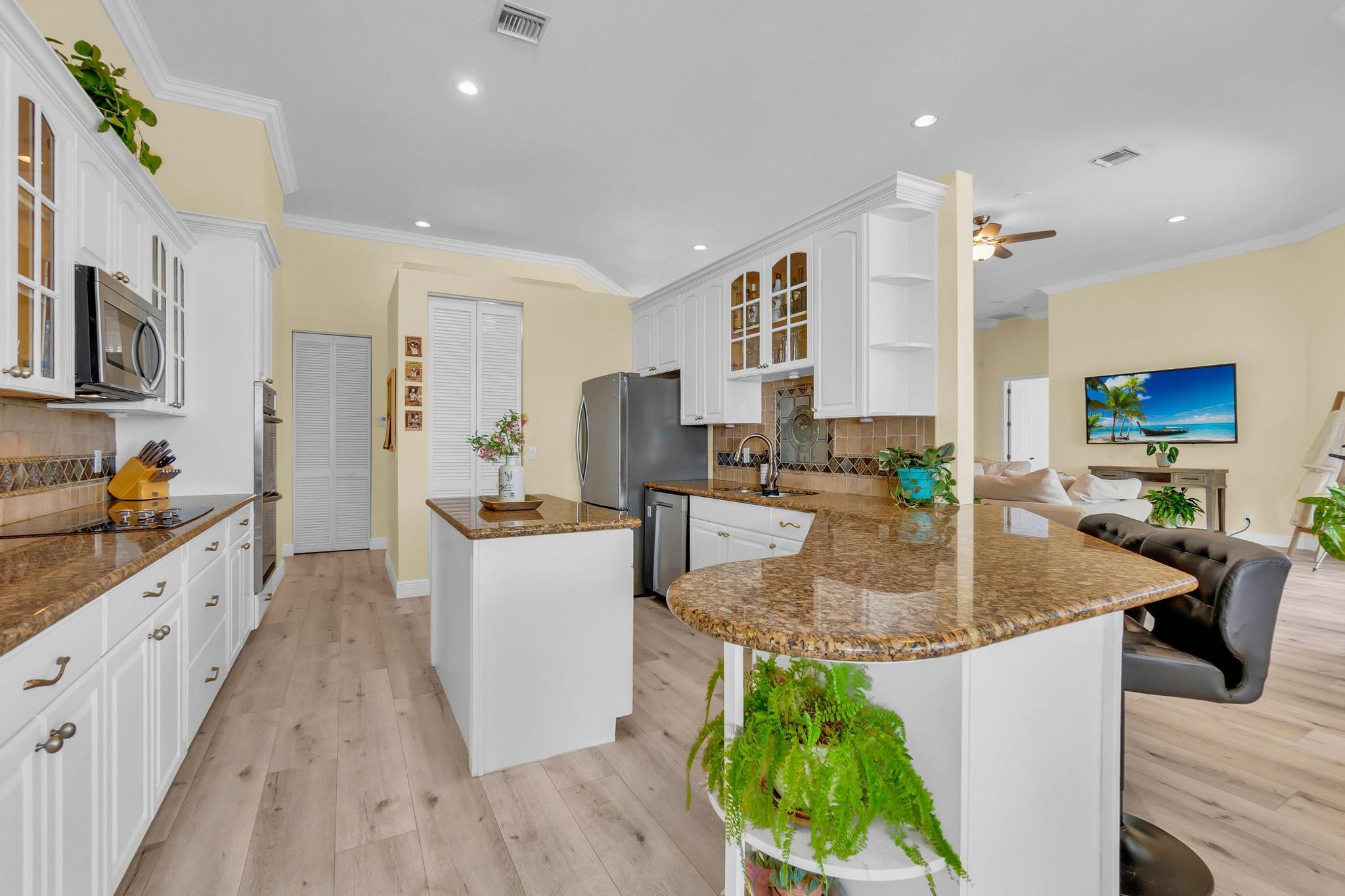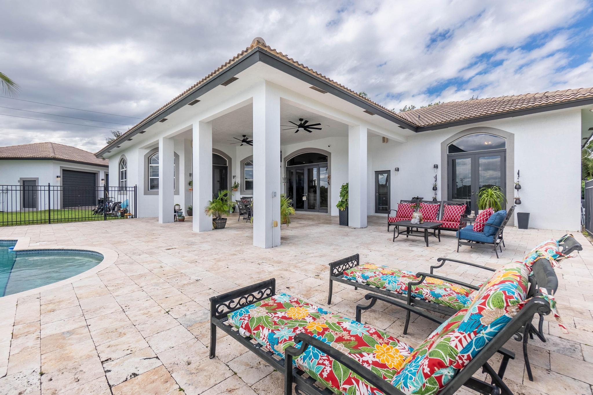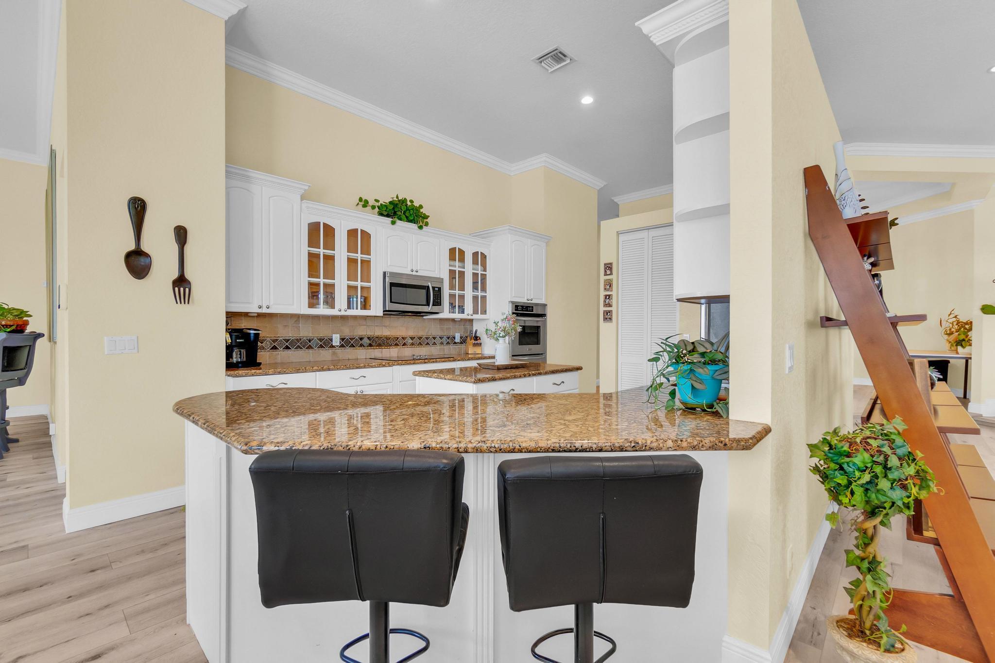 This stunning home on over 3/4 acre offers the epitome of luxurious living with a breathtaking lake view.As you step though the welcoming front porch, you are immediately greeted by an expansive and airy living space that brings the outside in.The open layout with 12' ceilings create a sense of spaciousness and warmth.Features luxury vinyl though main living area with carpet in the bedrooms.This split floorplan offers 2 roomy bedrooms with Jack and Jill attached bath.3rd bedroom has a cabana bath across the hall.The main bedroom is large and features access to the pool,a lake view and walk in closets.The gigantic main bath suite including dual sinks, a walk-through shower and whirlpool tub.The pool overlooking the lake has a huge, covered patio and is perfect for entertaining