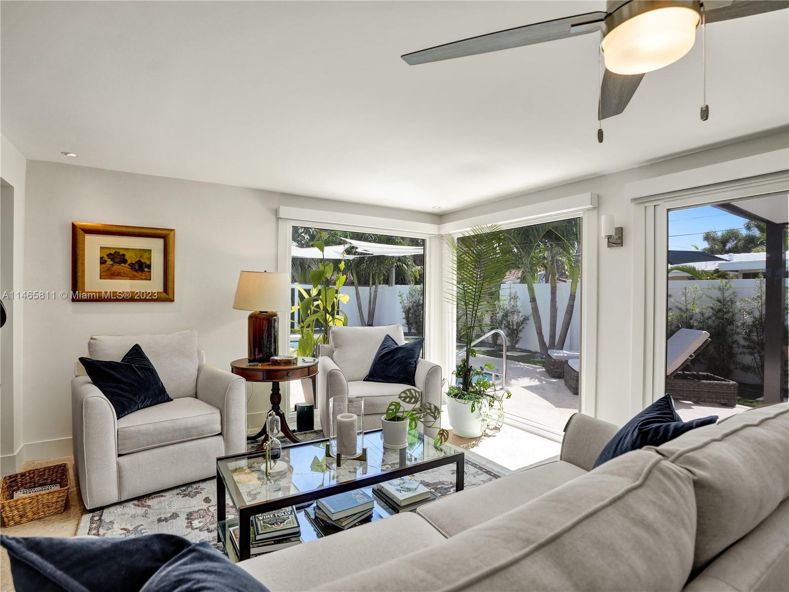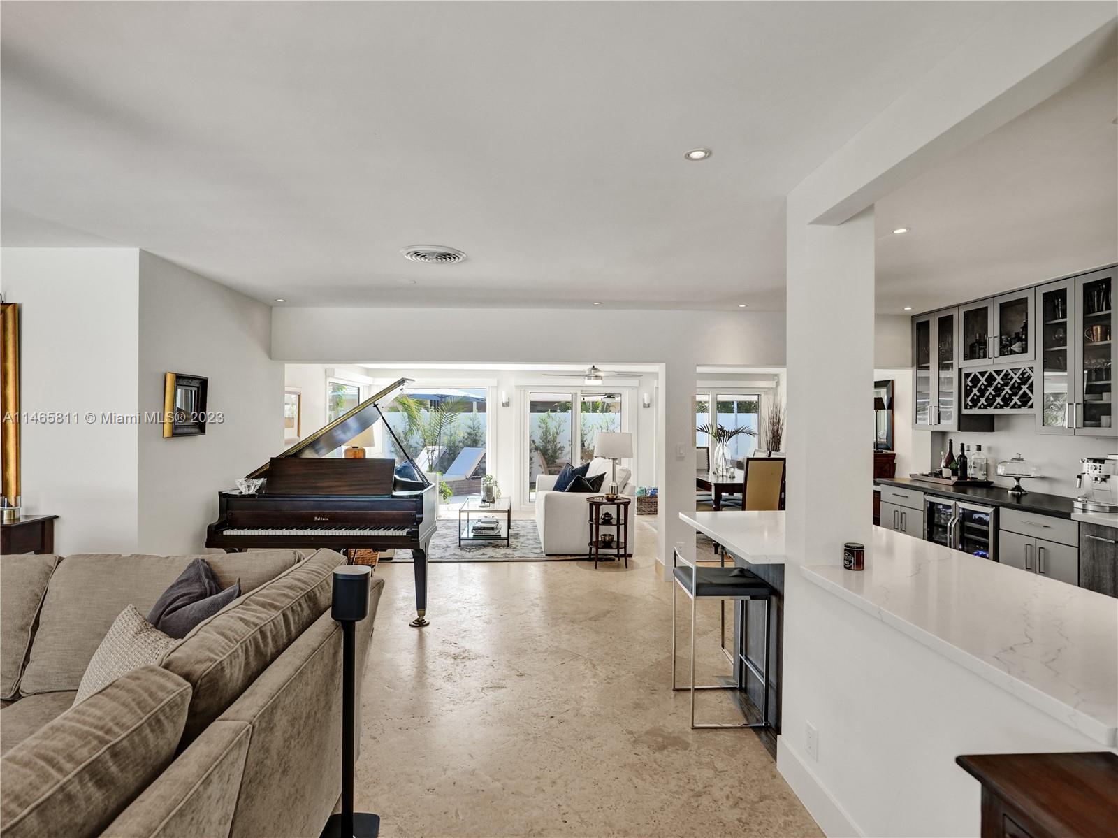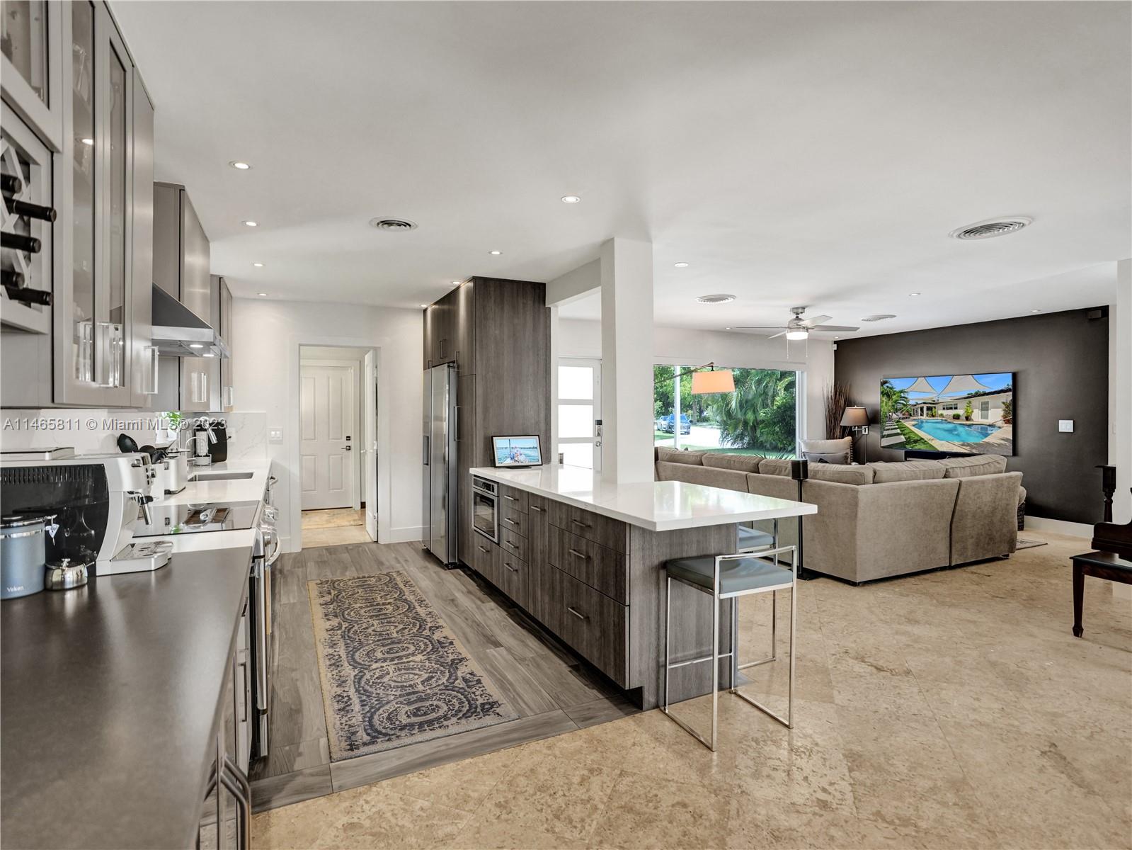2/2 PLUS office! True tropical indoor/outdoor living in coveted Imperial Point – Minutes to Beaches. Open concept home with stone floors, Huge kitchen w/ quartz counters & separate bar area with 3-zone cooler & glass cabinets.