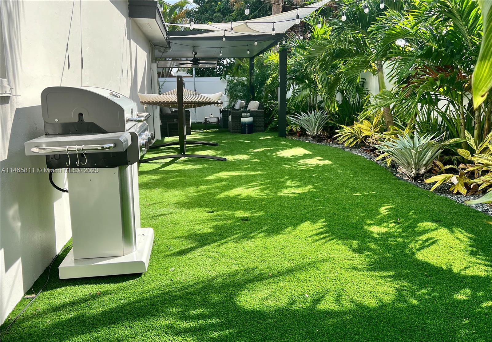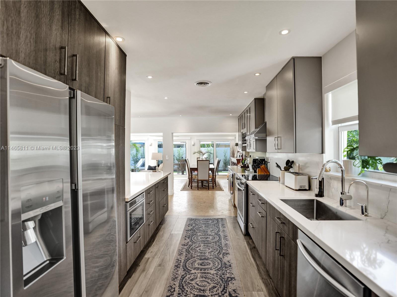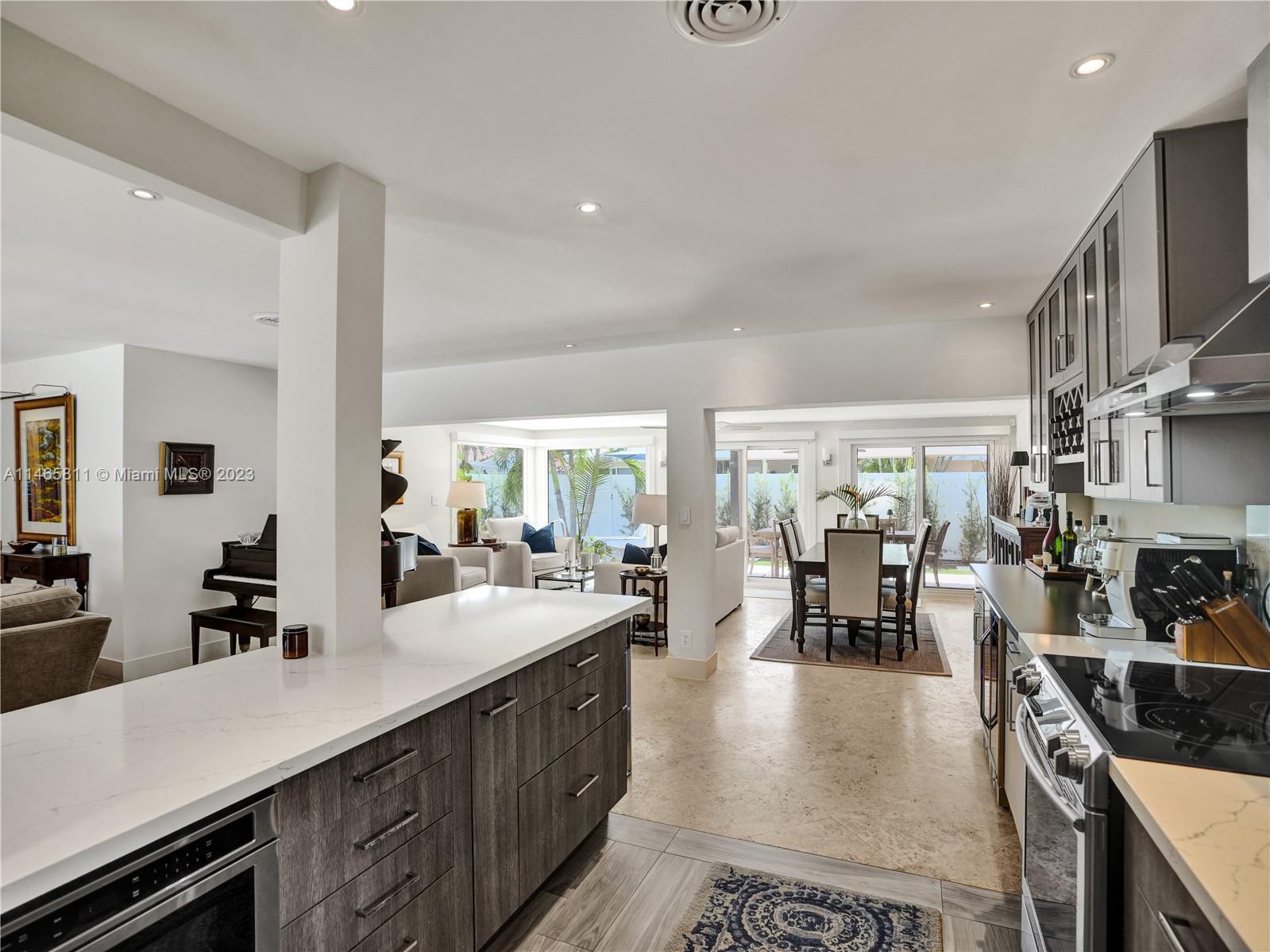 2/2 PLUS office! True tropical indoor/outdoor living in coveted Imperial Point – Minutes to Beaches. Open concept home with stone floors, Huge kitchen w/ quartz counters & separate bar area with 3-zone cooler & glass cabinets.