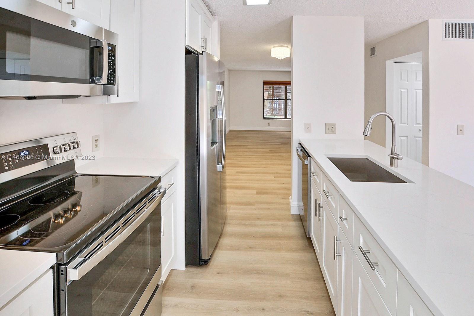 SPACIOUS TOWNHOUSE IN HIGHLY DESIRABLE PEMBROKE LAKES AREA HAS 3 BEDROOMS, 2.5 BATHROOMS, AND 1,672SF OF LIVING AREA. COMPLETELY REMODELED WITH A TASTEFUL MODERN AESTHETIC, THIS LOVELY HOME FEATURES STYLISH PLANK FLOORING, STUNNING FLOATING STAIRCASE, NEW BASEBOARDS, A DREAMY WHITE KITCHEN WITH WHITE SHAKER CABINETS & GORGEOUS QUARTZ COUNTERS. OPEN AND INVITING FLOOR PLAN OFFERS EASY ACCESS TO THE LARGE PRIVATE PATIO, WHICH IS PERFECT FOR OUTDOOR DINING, PLAY, AND ENTERTAINING. THE UPSTAIRS PRIMARY SUITE OFFERS A LARGE WALK-IN CLOSET AND GORGEOUS ENSUITE BATH WITH PORCELAIN TILE AND MARBLE TOPPED VANITY. THE OTHER FULL BATH AND 1/2 BATH HAVE ALSO BEEN COMPLETELY REMODELED. COMMUNITY OFFERS A POOL. ENJOY PROXIMITY TO SHOPPING, RESTAURANTS, MEMORIAL WEST HOSPITAL, & CB SMITH PARK.