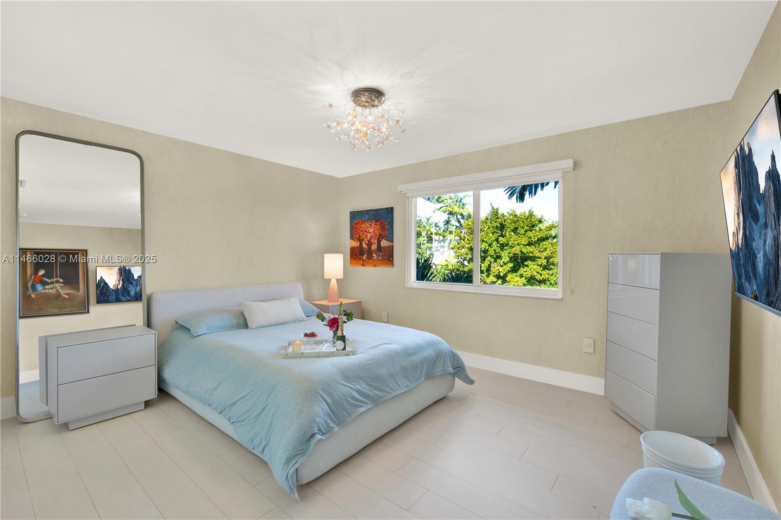 Welcome to your dream waterfront home in Gables by the Sea, a prestigious gated community offering tranquility and luxury. This stunning 2-story residence has been impeccably renovated with top-tier finishes, seamlessly blending sophistication and serenity. Soaring ceilings and Porcelanosa floors frame breathtaking water views. The primary suite boasts high ceilings, adding a sense of space and flooding the room w/ natural light, while the private balcony overlooks lush tropical gardens and peaceful waterfront vistas. Relax in the Jacuzzi, cascading into a sparkling saline-chlorine pool. The gourmet kitchen, featuring a grand quartzite island and Thermador & Wolf appliances, is a chef’s delight. Every gorgeous sunset feels magical in your private oasis—resort-style living at its finest