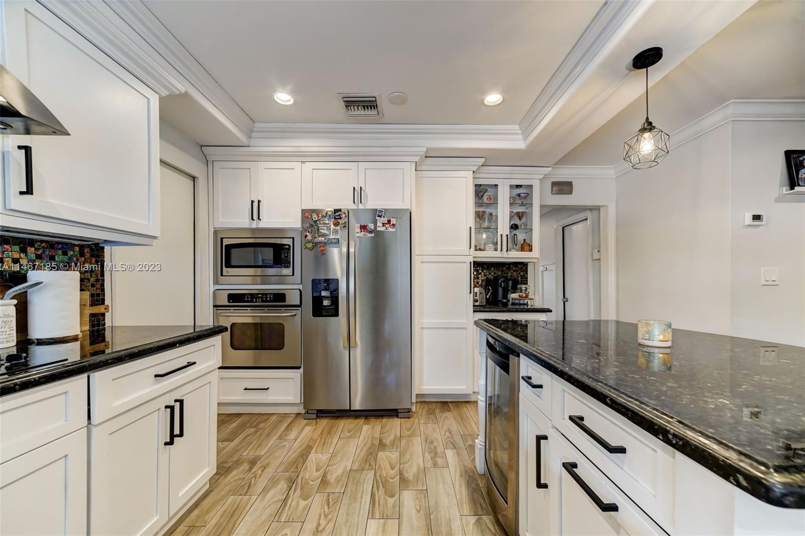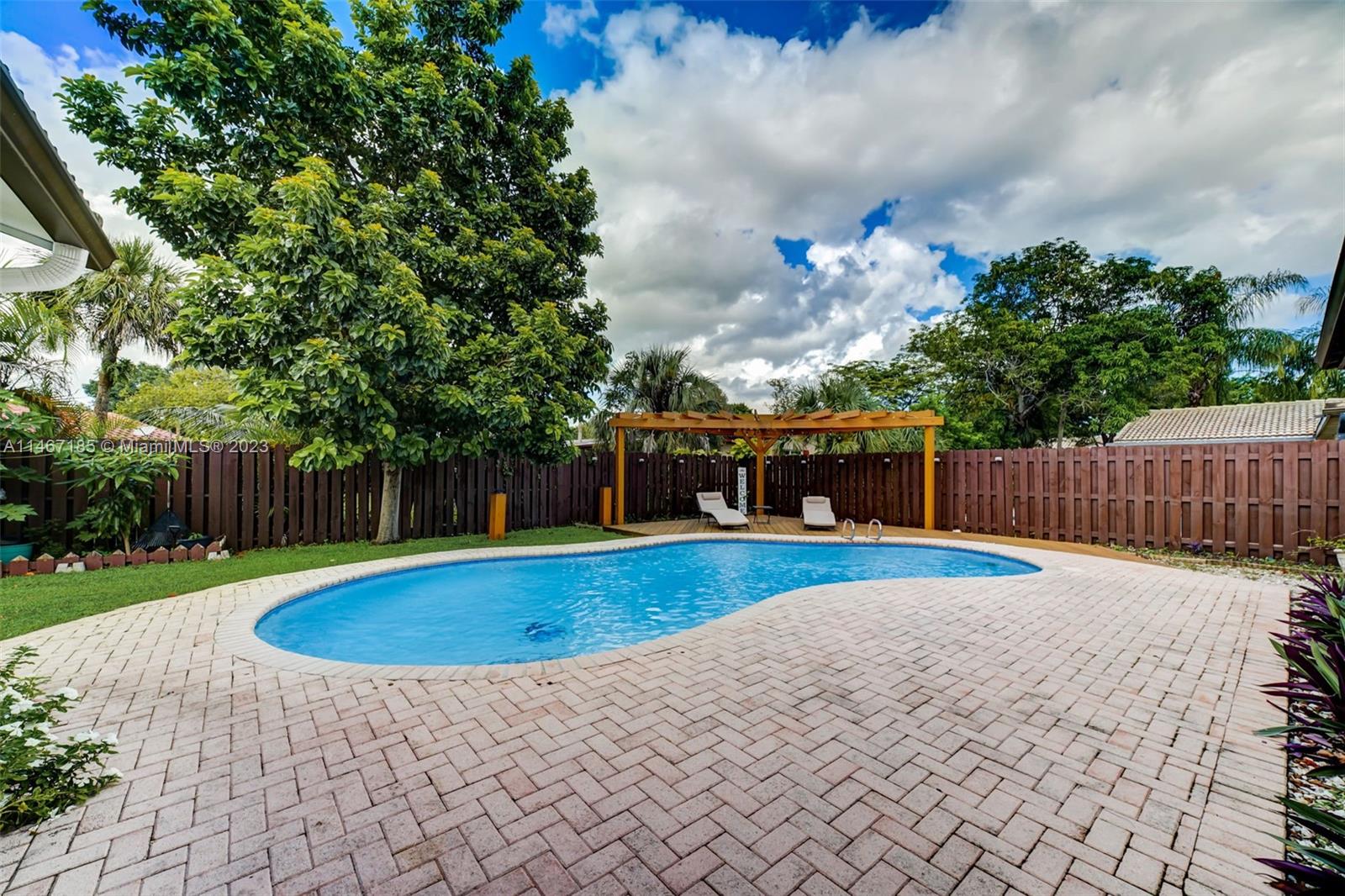 This exceptional property combines the best of outdoor living and modern interior design. Home features a saltwater pool, covered patio with a pass thru window to kitchen. Inside, the home has undergone a transformation. Chef's dream kitchen, adorned with pristine white cabinetry, exquisite backsplash, cooktop, wall oven, vented range hood and island for workspace or gathering. Both bathrooms have been tastefully updated to reflect current design trends. Luxury plank (LVP) flooring extends throughout the home, providing a cohesive and low-maintenance flooring solution. Spacious bedrooms are all generously sized, Backyard is fenced, circular driveway, air conditioner 3 yrs new. This property epitomizes modern luxury and convenience, making it a rare find in a desirable location.
