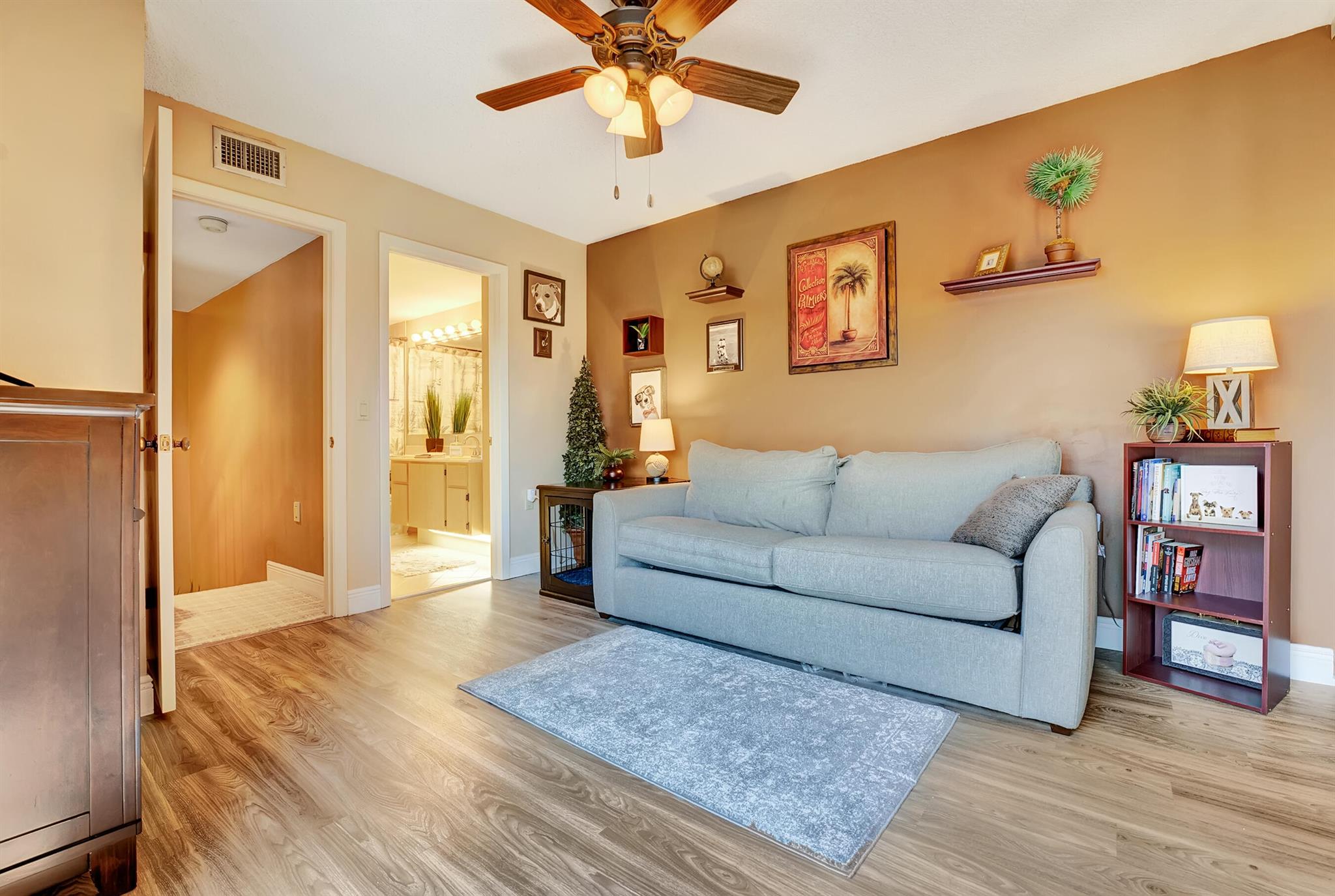 Meticulous and loved, this property is being sold furnished or unfurnished. The current owners of this home have renovated the kitchen by adding custom cabinetry and removing the header to create an open concept floorplan. Showcasing 2-bedroom ensuites the home has been freshly painted and features luxury vinyl plank flooring in the main areas. Storm protection is also here with top notch accordion shutters that have a 5-point locking mechanism and clear panels giving peace of mind while allowing light and vision through to the outdoors. Enjoy year around indoor/outdoor living with a fully enclosed private patio ideal for entertaining or relaxing after a long day. Sandalwood is one of a select list of communities with exclusive access to the Village of Palm Beach Lakes POA and all of the