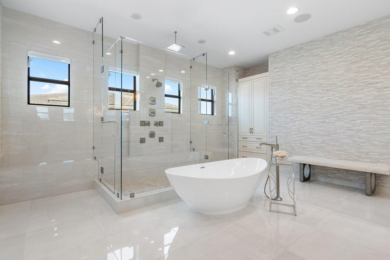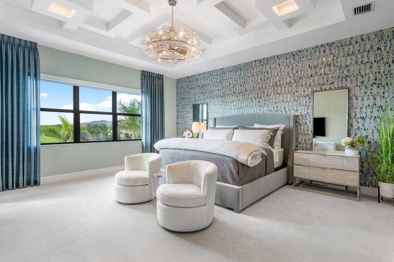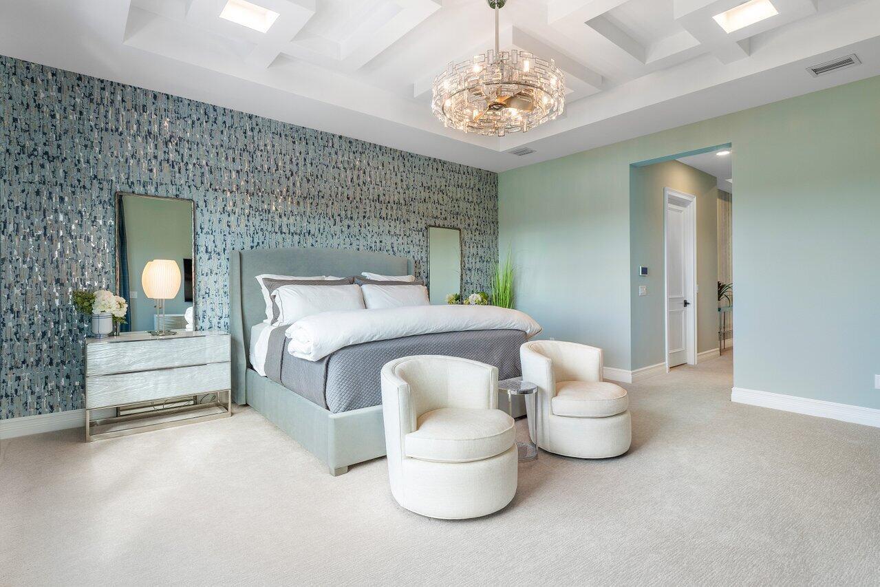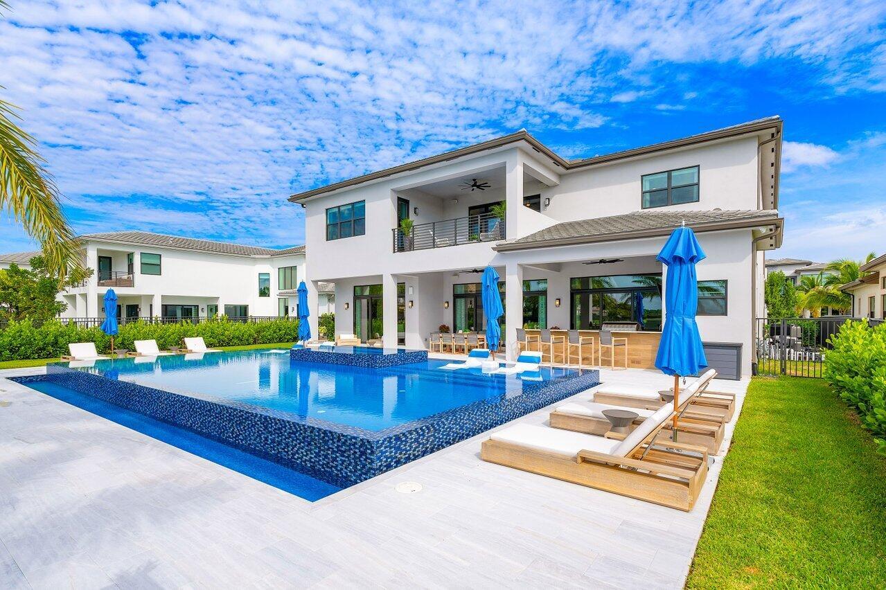 Presenting a modern lakefront estate with panoramic long lake views. Undoubtedly the BEST southern exposure lot in the prestigious Boca Bridges with endless unobstructed long lake views. Introduced by an Impressive approach, the architectural elements of this roughly 6,000 SF Contemporary Riverside are simply stunning. Open sightline's entice you as you take in the grandeur of the open concept dining and family rooms that adjoin the impressive kitchen. Exceeding the expectations of any gourmet chef with its impressive offerings of Wolf, SubZero and Bosch appliances. The tranquil transitions from room to room continue to showcase the one of a kind striking coffered ceiling details, extensive millwork, custom built-in's and the 80 bottle wine showcase.