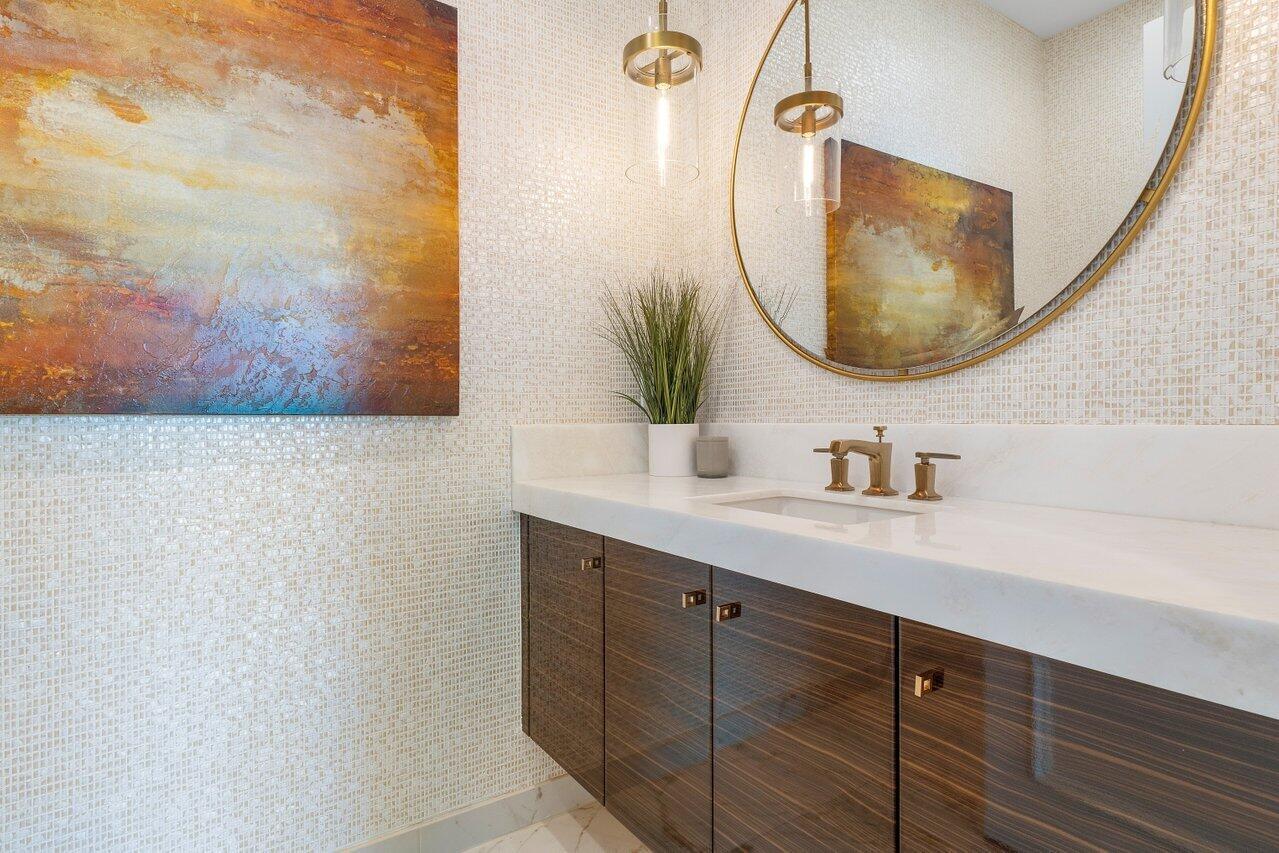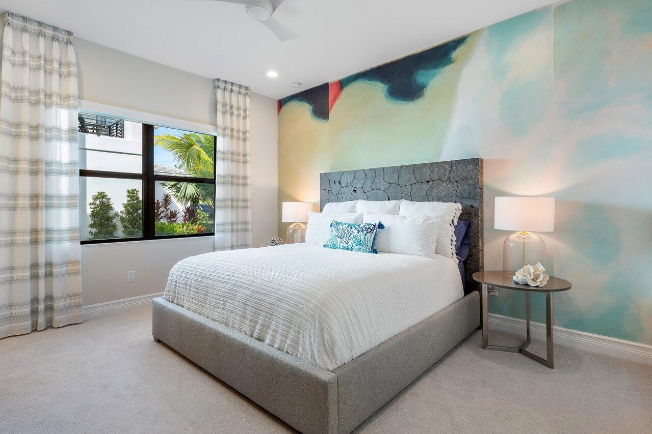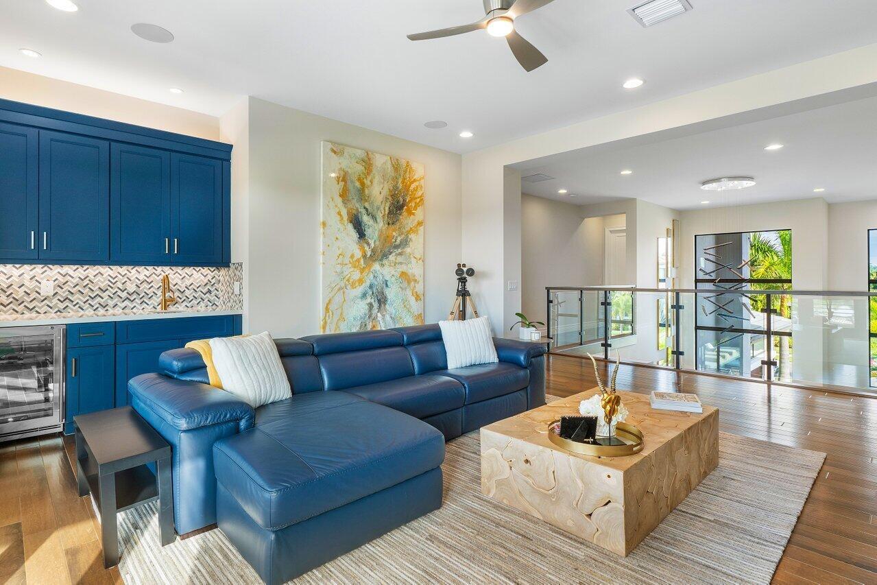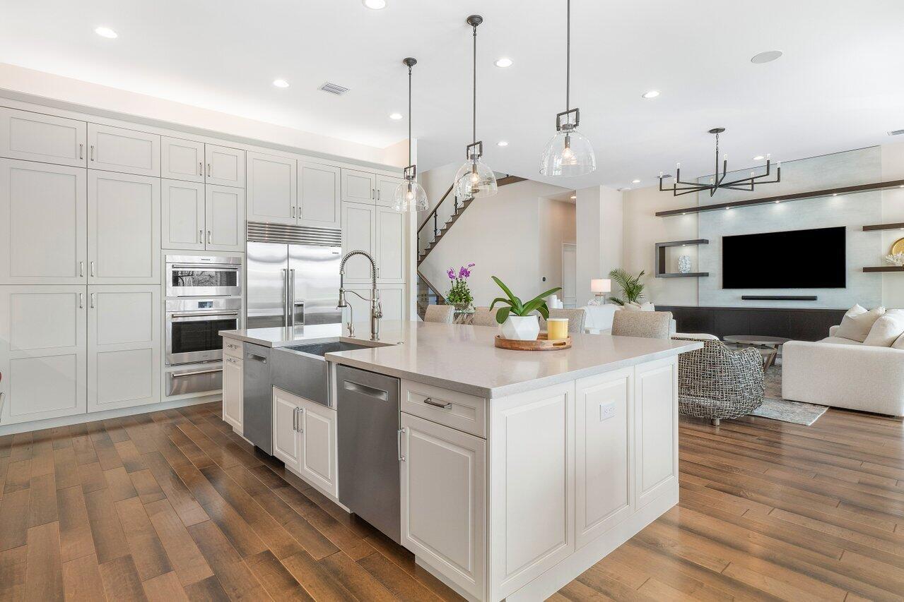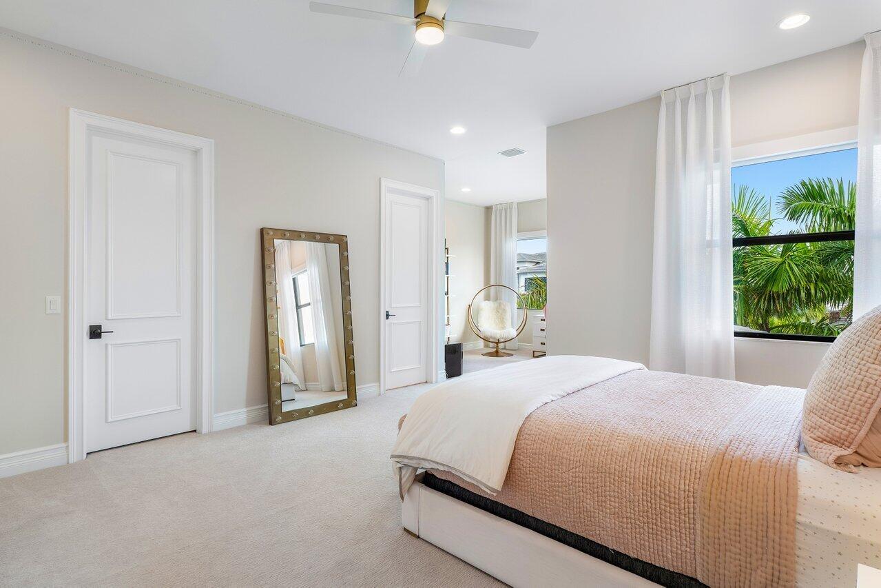Presenting a modern lakefront estate with panoramic long lake views. Undoubtedly the BEST southern exposure lot in the prestigious Boca Bridges with endless unobstructed long lake views. Introduced by an Impressive approach, the architectural elements of this roughly 6,000 SF Contemporary Riverside are simply stunning. Open sightline's entice you as you take in the grandeur of the open concept dining and family rooms that adjoin the impressive kitchen. Exceeding the expectations of any gourmet chef with its impressive offerings of Wolf, SubZero and Bosch appliances. The tranquil transitions from room to room continue to showcase the one of a kind striking coffered ceiling details, extensive millwork, custom built-in's and the 80 bottle wine showcase.