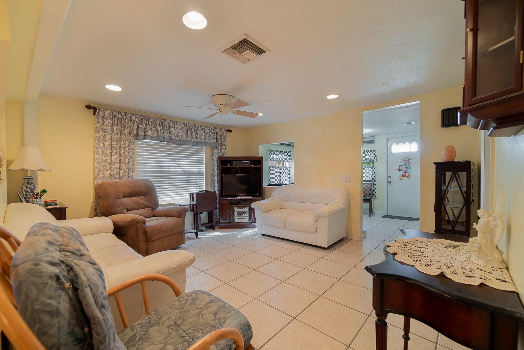 Lovely 2 bed / 1 bath single family home on very quiet cul de sac. Possibily to easily turn into a 3 bedroom. Ceramic floors throughout the home. Attached workshop perfect for hobbies or storage. Newer roof and AC. Beautiful vegetation including a 40 year old staghorn fern and avocado tree. Close to downtown West Palm Beach, restaurants, shops, airport and all amenities. Come make this your home !!!!