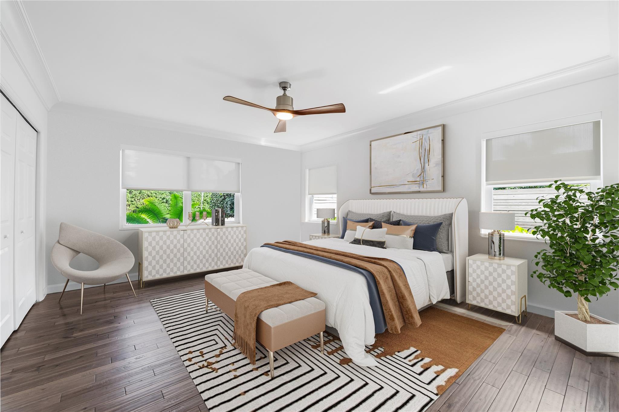 Exquisitely renovated residence lives like new construction w/modern details & luxurious appointments. Every element is designed to cultivate today's lifestyle w/an open concept flr plan, walls of glass providing an abundance of natural light & glass doors that stack to blend interior & exterior living spaces. Enjoy the S. Florida lifestyle under the covered loggia w/a louvered electric ceiling, swim in the salt water chlorinated heated & chilled pool, or experience waterway views from the finished roof top terrace. The kitchen is outfitted w/upgraded appliances & tremendous storage. The spacious primary suite offers 2 custom walk-in closets & lavish spa inspired bathrm. Additional features incl: a mosquito misting system, water filtration system, solar panels & more. Sq. Ft. from seller.
