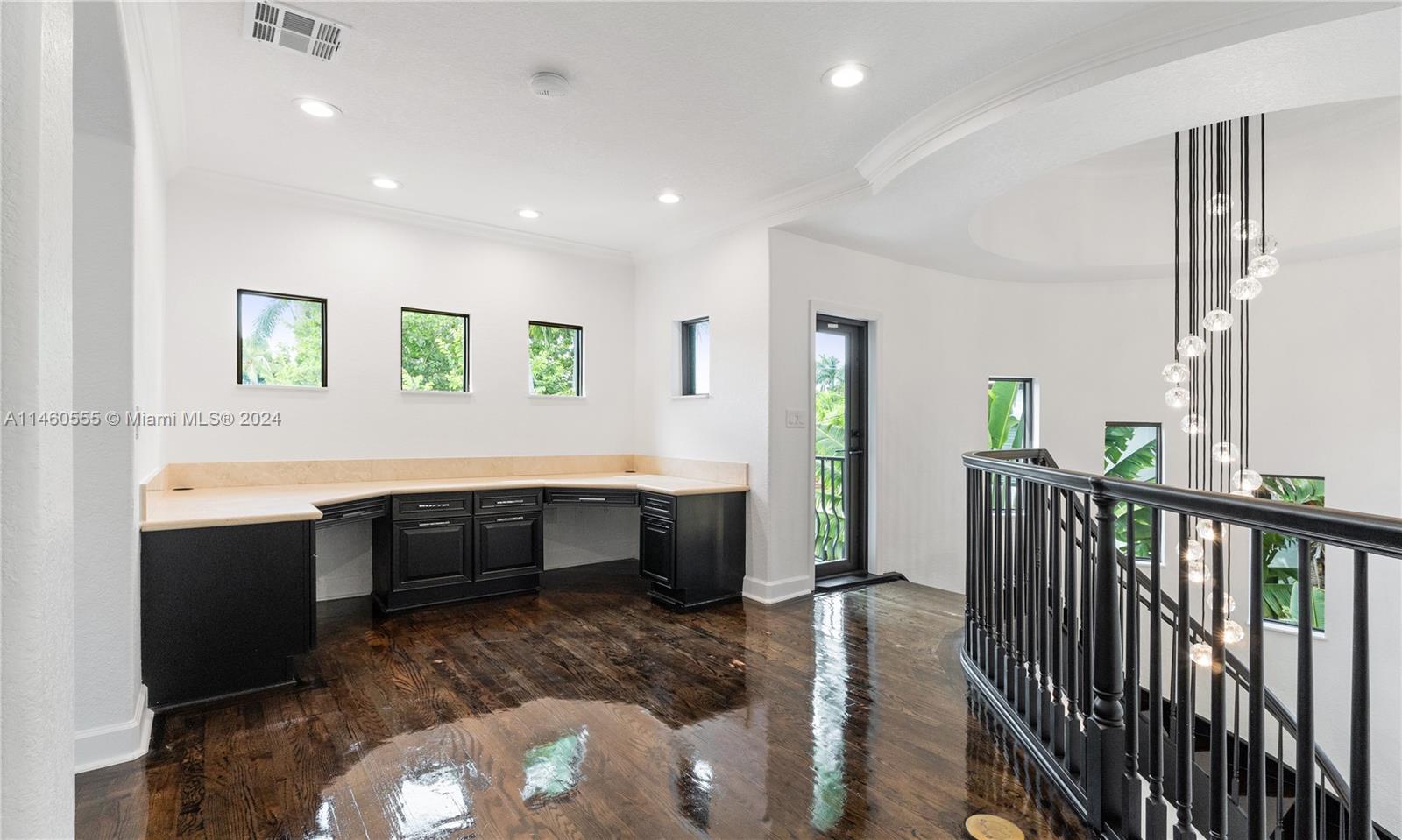 Beautiful Mediterranean home on prestigious La Gorce Drive. With its open concept, the residence offers the perfect blend of elegance and functionality. Featuring 5 bedrooms, 4 bathrooms, ceiling heights from 13ft- 20ft, hardwood floors, the interior exudes a sense of grandeur and warmth. Impact windows offer natural light, creating a welcoming inviting atmosphere. The open kitchen, complete with a breakfast nook, and upgraded appliances is a chef’s dream. Recent upgrades include new exterior lighting, impact doors and windows, salt water pool heater and pump, and a sprinkler system. The landscaped yard is a private haven with a pool and spa, making a perfect entertaining home. This home offers luxurious and convenient lifestyle, combining classic Mediterranean charm and modern amenities.