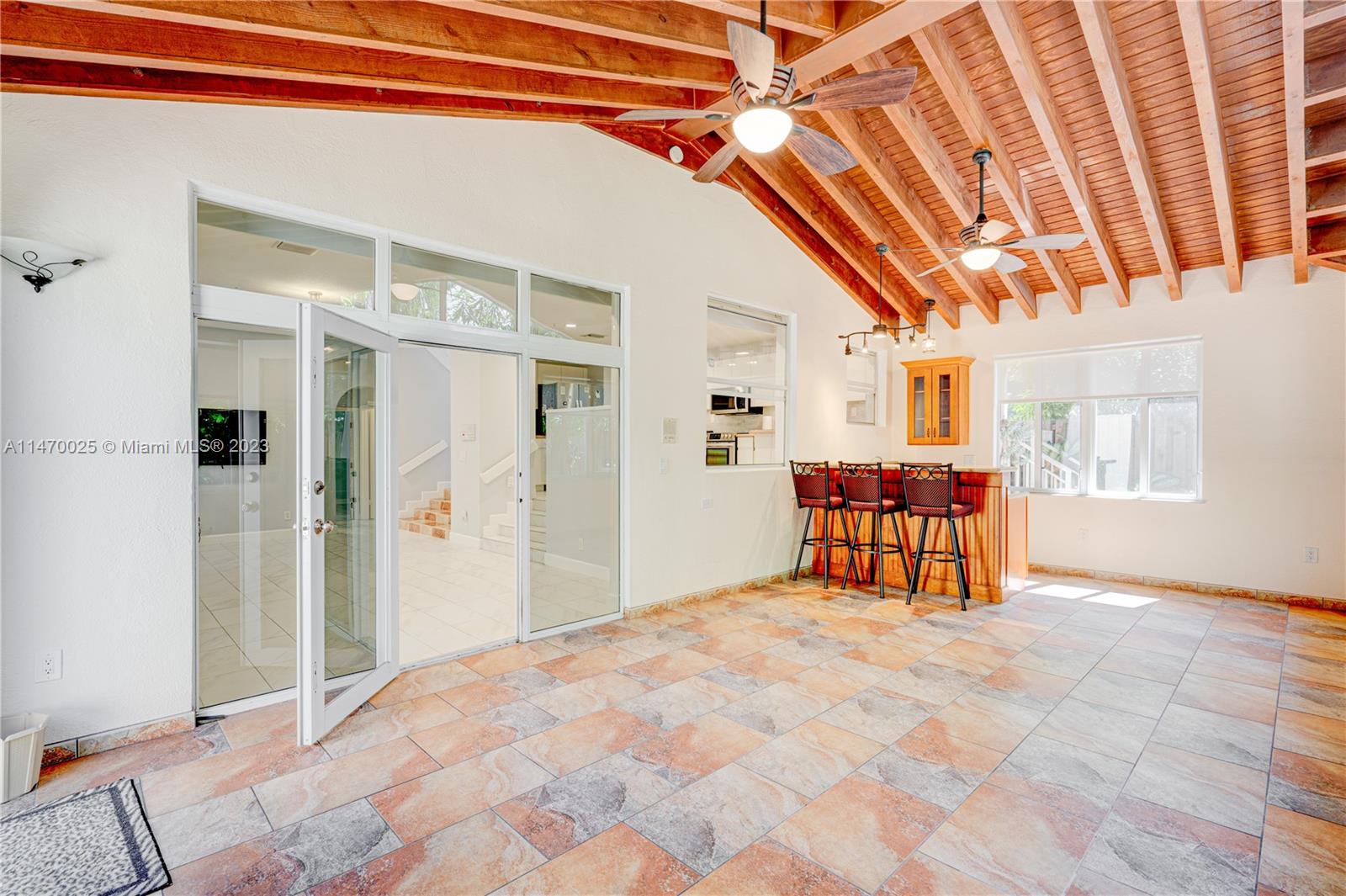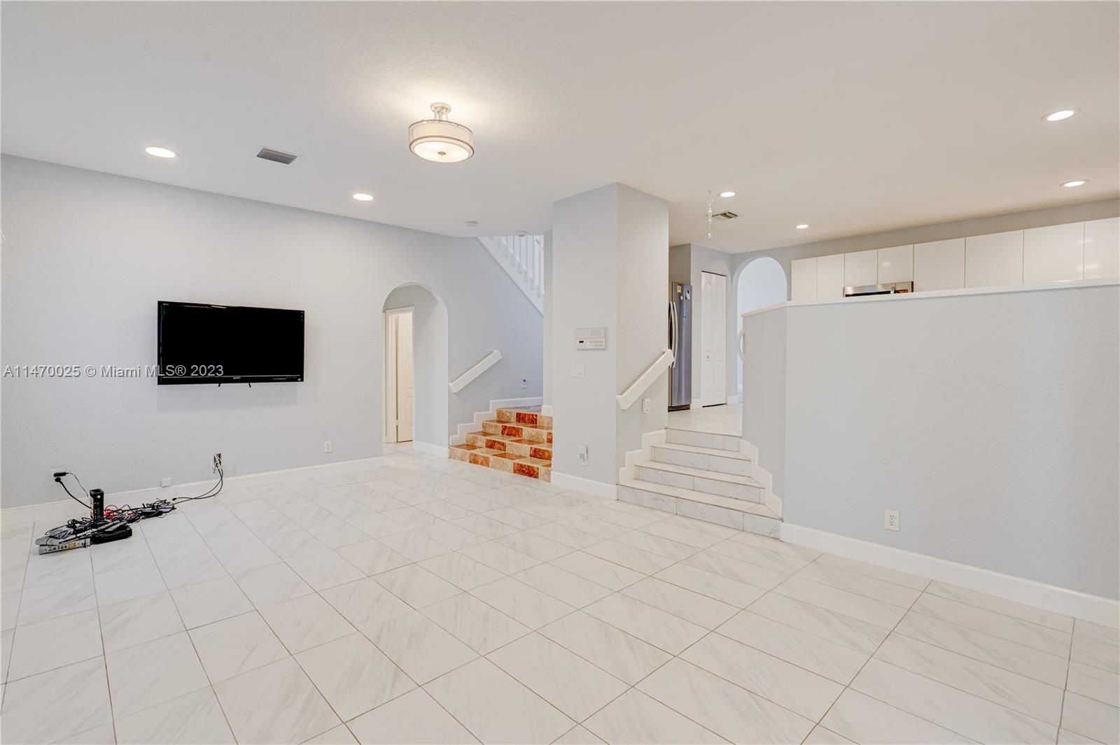 HOT NEW LISTING! GREAT LOCATION WITHIN THE THRIVING CITY OF DORAL! MAINTAINED IN MINT CONDITION, FRESHLY PAINTED, THIS HOME HAS NEW LUXURY VINYL FLOORS UPSTAIRS, ALONG W/ 4 BEDROOMS/2BATHS. THE LARGE MAIN BEDROOM HAS AN EQUALLY LARGE WALK-IN CLOSET AND A VERY COMFORTABLE BATHROOM WITH LOTS OF NATURAL LIGHT. THERE’S A 3RD BATH DOWNSTAIRS, ALL 3 BATHS HAVE BEEN UPGRADED, AS WELL AS THE KITCHEN. NEW TILED FLOORS DOWNSTAIRS, S/S APPLIANCES. THIS HOME FEATURES A GREAT ROOM ADDITION THAT HAS GORGEOUS VAULTED WOOD CEILINGS, EQUIPPED WITH A WET BAR AND ENOUGH SPACE TO RELAX AND ENTERTAIN. LARGEST SQFT OF LIV SPACE WITHIN THIS BEAUTIFUL, SMALLER, FRIENDLY DORAL COMMUNITY. THE GARAGE CAN BE EASILY CONVERTED BACK FROM THE MULTI-USE ROOM AND STORAGE USED AS NOW. THE PATIO HAS MATURE SWEET FRUIT TREES.