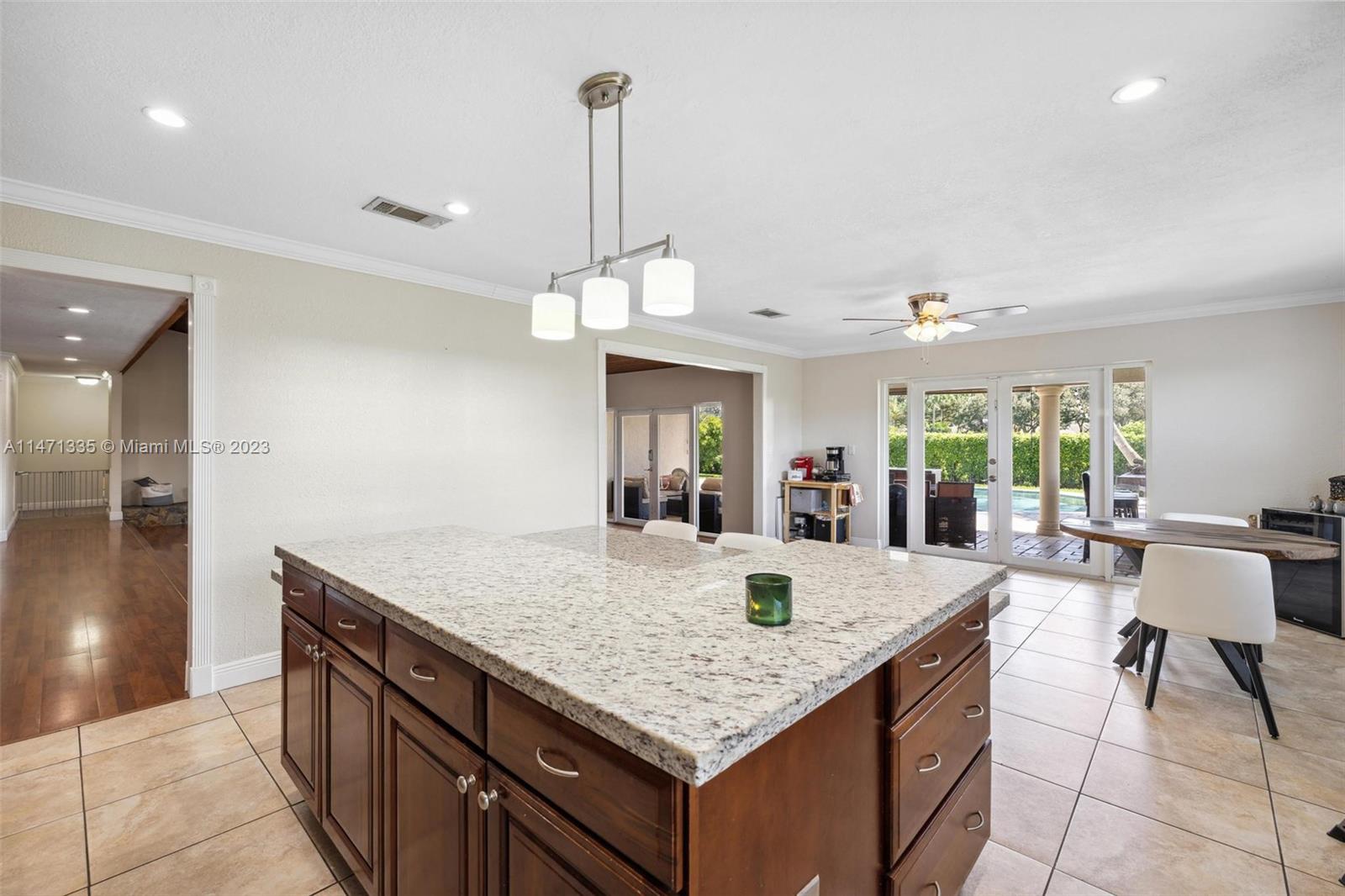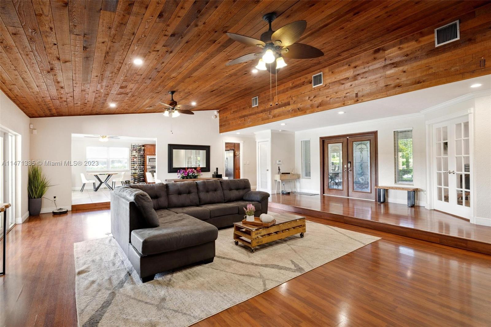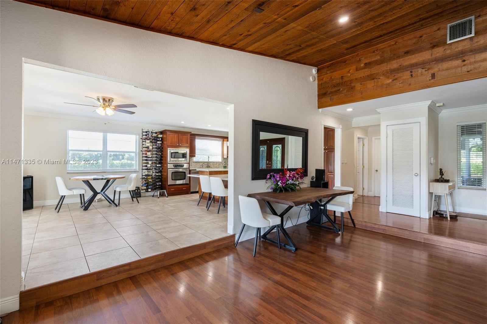 Coveted within the tranquil Ivanhoe Estates, this stunning home boasts 4 bedrooms, 3.5 bathrooms, and custom closets for optimal organization. Wood flooring graces the social areas, while bedrooms feature elegant grey tile. The remodeled kitchen is a focal point with wood cabinets, granite countertops, a spacious island, and stainless steel appliances. A great room with cedar ceilings and a stone fireplace adds character. The master suite offers an expansive bath and patio access. Step outside to a private backyard retreat with a large pool, covered summer kitchen, and ample space for entertaining. Additional features include a water filtration system, a circular driveway, a 2-car garage, and a brand-new roof, making this a truly exceptional offering in Ivanhoe Estates.