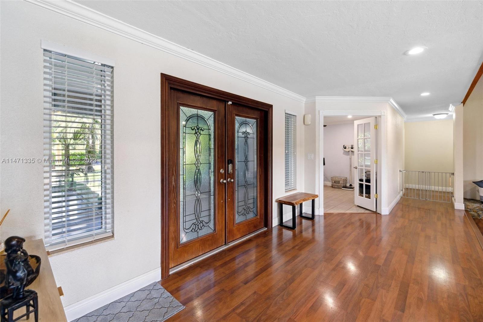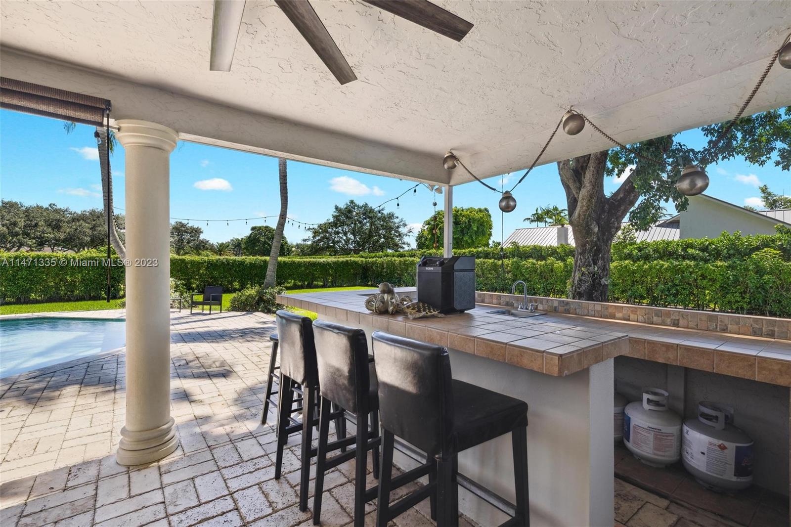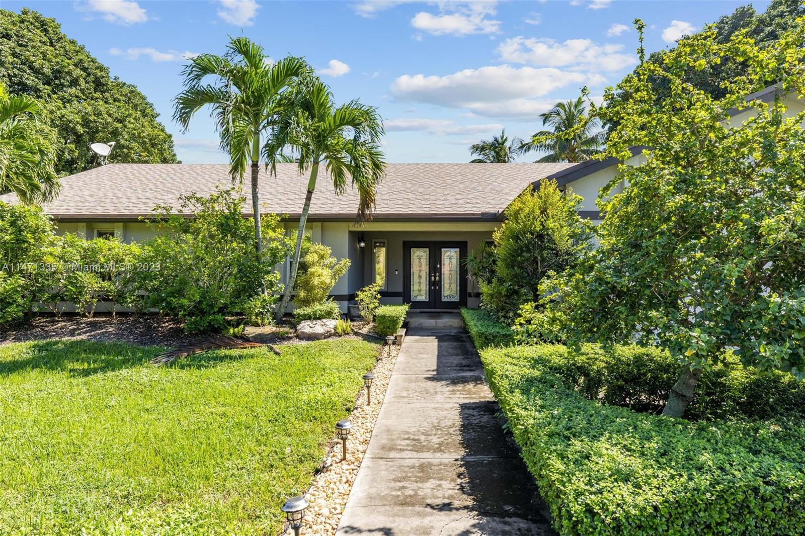 Coveted within the tranquil Ivanhoe Estates, this stunning home boasts 4 bedrooms, 3.5 bathrooms, and custom closets for optimal organization. Wood flooring graces the social areas, while bedrooms feature elegant grey tile. The remodeled kitchen is a focal point with wood cabinets, granite countertops, a spacious island, and stainless steel appliances. A great room with cedar ceilings and a stone fireplace adds character. The master suite offers an expansive bath and patio access. Step outside to a private backyard retreat with a large pool, covered summer kitchen, and ample space for entertaining. Additional features include a water filtration system, a circular driveway, a 2-car garage, and a brand-new roof, making this a truly exceptional offering in Ivanhoe Estates.