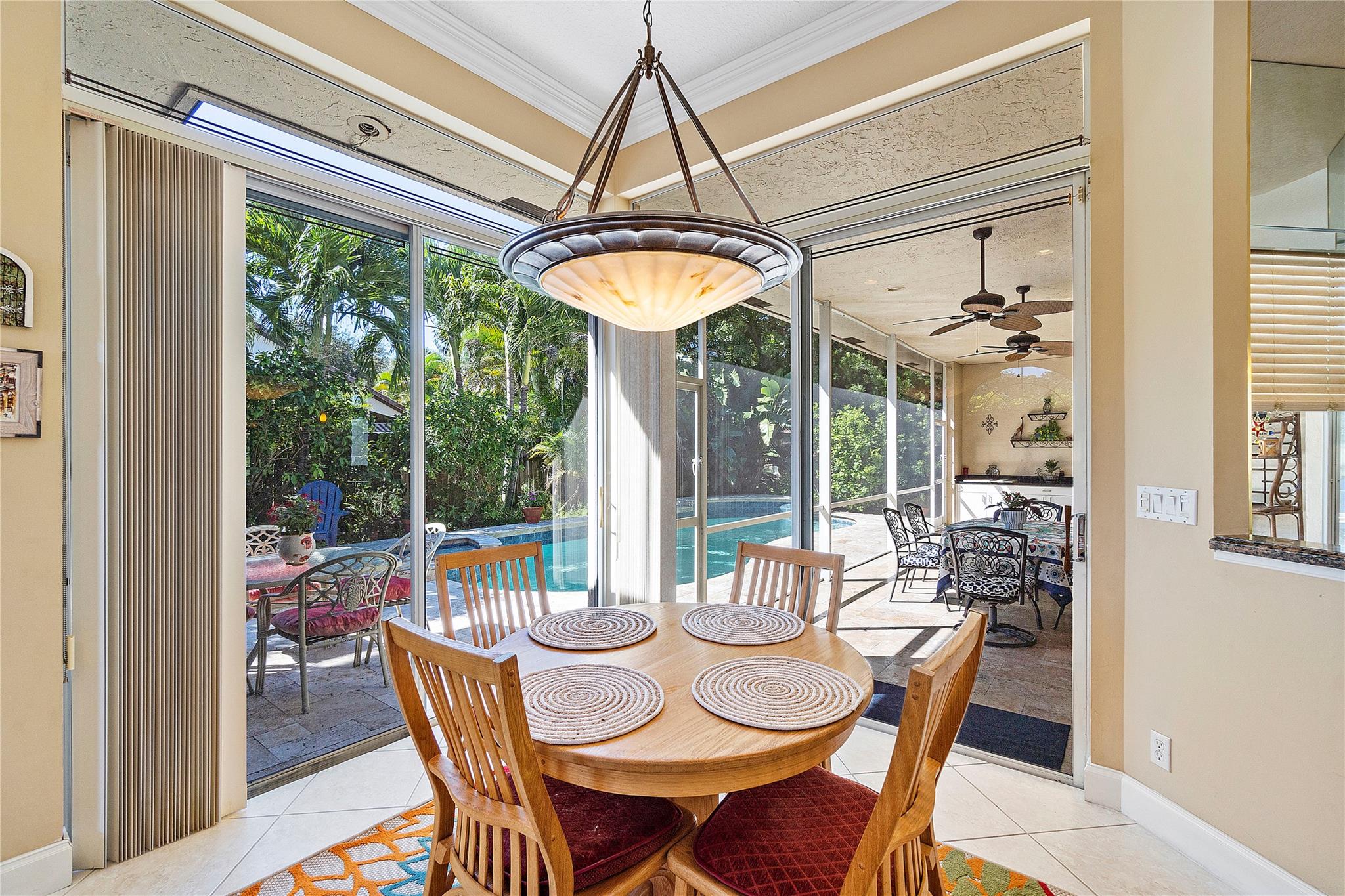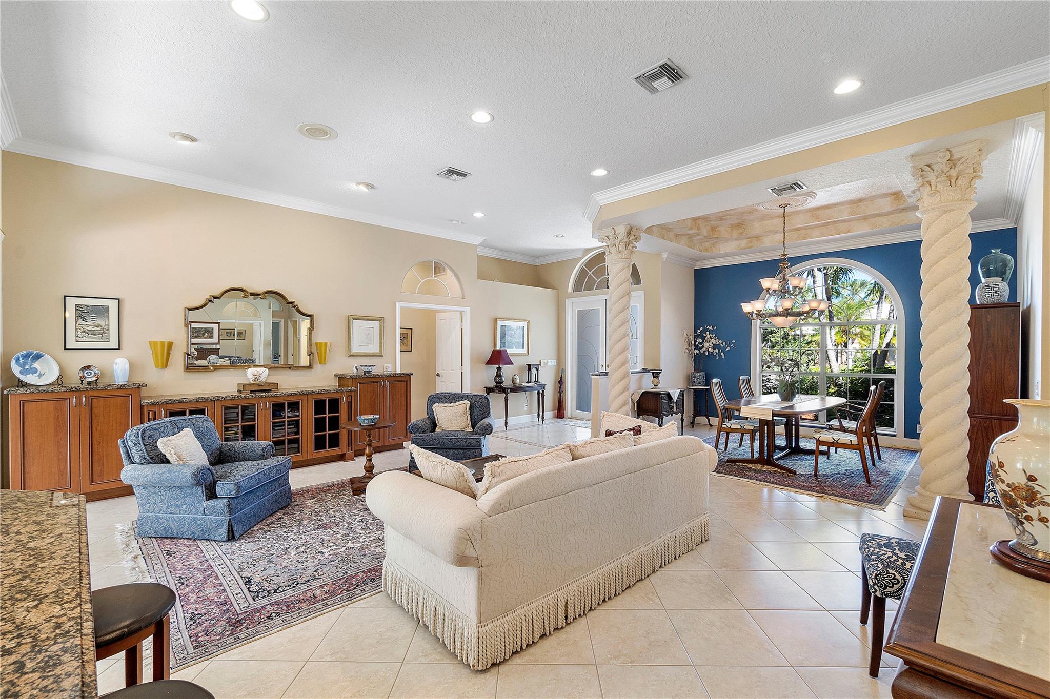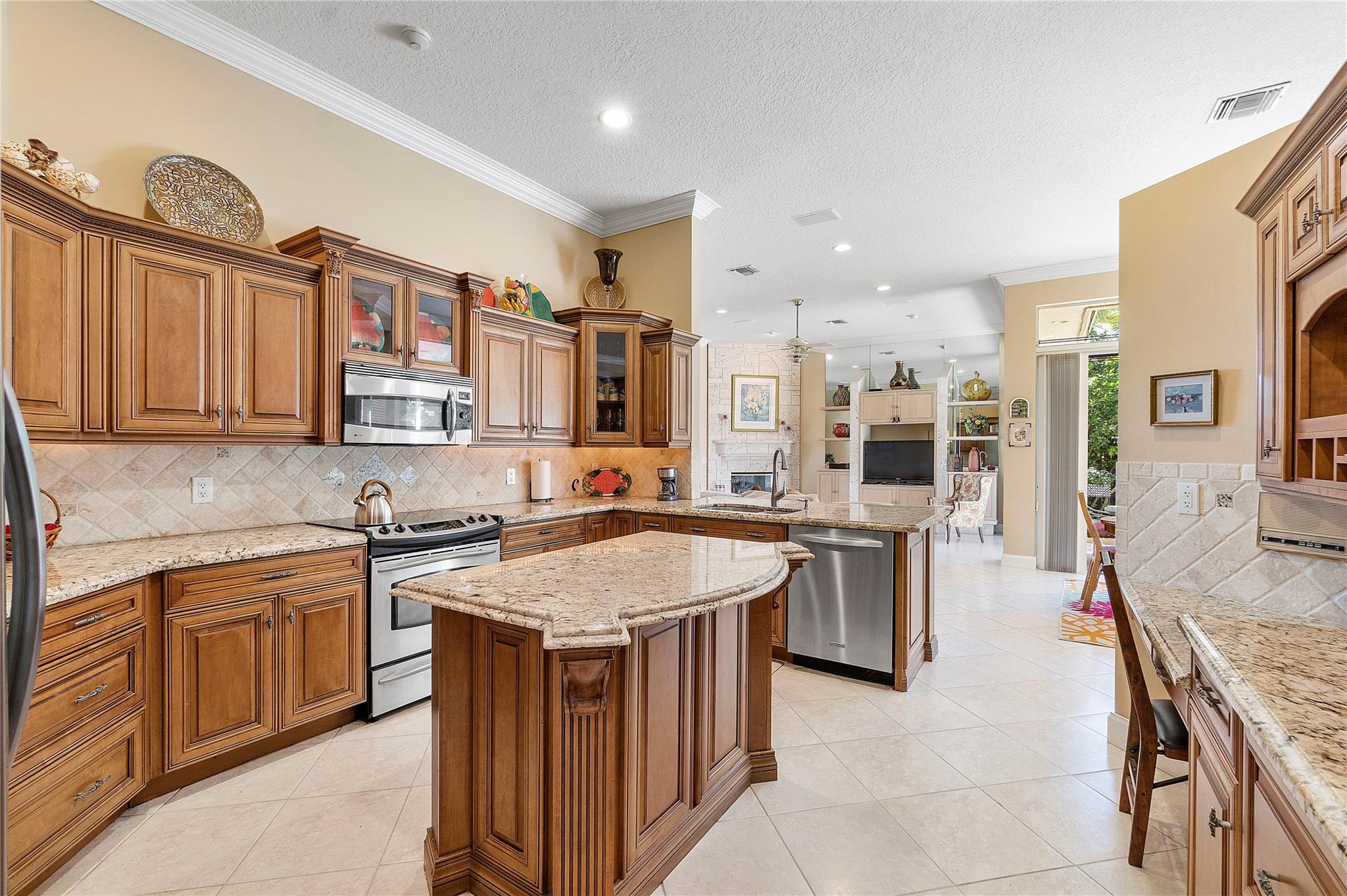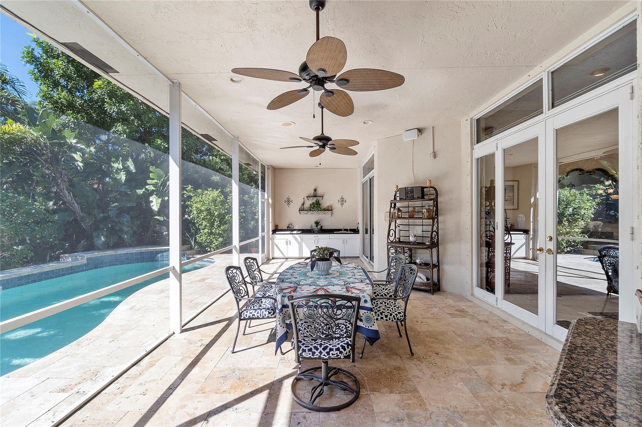 This Custom built 3/2.5 Home, complete with a circular driveway situated on a cul de sac. Inside, you'll find a updated kitchen with granite counters, wood cabinets, a center island, stainless steel appliances, a desk area, and built-in wine storage. Entertain your guests behind bar which is equipped with a mini refrigerator for all your beverages. Plantation shutters throughout. Spacious laundry room with refrigerator and extra storage. Brazilian cherry wood floors in the sizable Primary bedroom, which also features two walk-in closets and a luxurious bathroom with double sinks, a Jacuzzi tub, and a separate shower. Outside, the covered patio overlooks the fenced yard and sparkling pool with a spa.