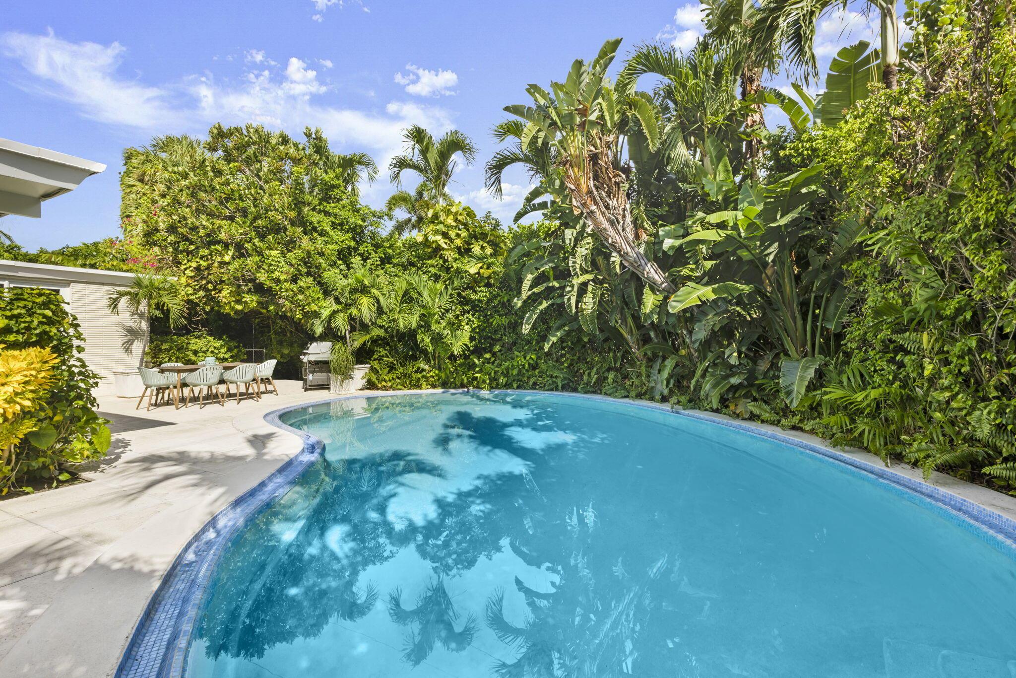 Welcome to 205 Jamaica Lane. This stunning mid-century modern home is situated on a lushly landscaped, 11,000+ sq ft lot on the North End. This architectural gem offers a private retreat with sleek lines, abundant natural lighting, and a a spacious living area with volume ceilings and a sunroom overlooking the pool. Enjoy the North End lifestyle with easy access to the Lake Trail and the widest beaches on the island.