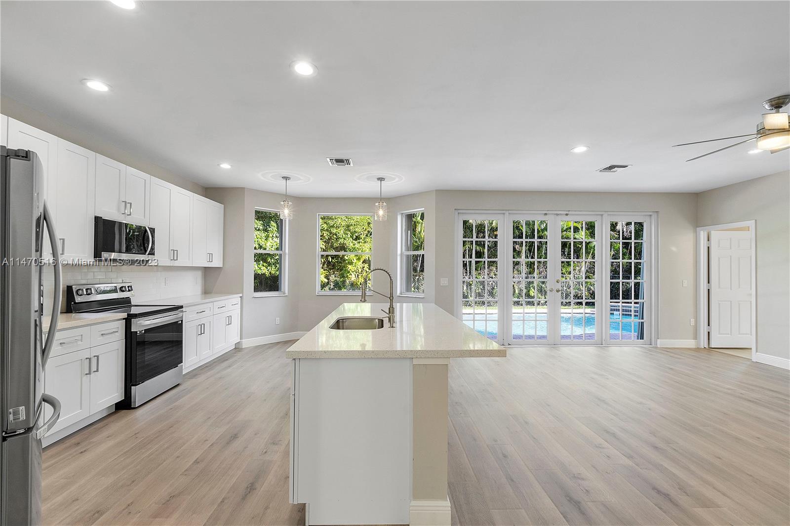 Beautiful 4 Bed/ 3 Bath + (5th Bed Loft) & 3 Car Garage Pool Home Located In Prestigious Yardley Estates. This Home Features An Open New Custom Kitchen W/ LG SS Appliances, Quartz Countertops W/ Island & Breakfast Bar. One Bedroom Downstairs Has Connecting Bathroom With New Vanity, Shower W/ Frameless Enclosure. New Flooring Throughout, All New Light Fixtures & Fans, LED Recessed Lighting, Siemens Electrical Panel. Water Heater 2020. 2 Newer AC's. Large Primary Suite W/ Dual Walk-In Closets. Upgraded En-Suite Bathroom With Freestanding Tub, Dual Sinks & Upgraded Shower. Two Other Bedrooms Share Updated Hall Bath W/ Dual Sinks, & Upgraded Tub/Shower. Large Private Fenced Corner Lot w/ Newly Renovated Pool, Mango Trees, & Accordion Shutters. Located Near A Rated Schools & Park. Low HOA.