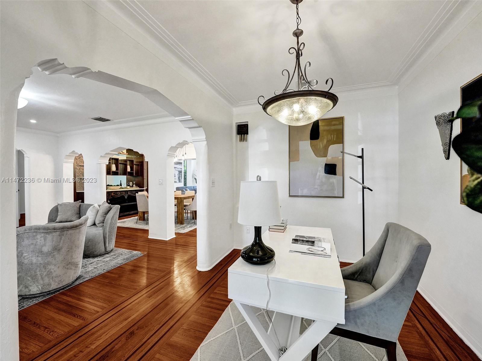 A commodious gem in this “City Beautiful,” 718 Malaga offers an authentic MiMo (mid-century modern) home featuring a 3-car garage on a double lot. Gracious and versatile living spaces include living room, family room, dining area and office/den. The 4-bedroom configuration offers flexibility, particularly the private entrance au pair bedroom with adjoining bathroom. The tropical foliage garden and intimate courtyard patios provide an oasis retreat. Notably located near The Biltmore Hotel, Venetian Pool, Miracle Mile, and MIA airport.