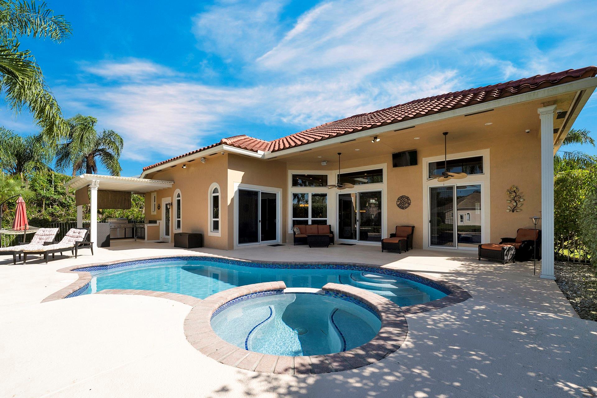 FRESH ON THE MARKET. THIS COMPLETELY UPGRADED WATERFRONT HOME IS READY FOR NEW OWNERS IN THE HIGHLY DESIRABLE COMMUNITY OF WINDSOR BAY. OWNERS SPARED NO EXPENSE IN THIS ABSOLUTELY PERFECT 5/3 (5TH ROOM IS USED AS AN OFFICE) TRIPLE SPLIT BEDROOM MONTEREY MODEL. ROOF LESS THAN 3 YEARS OLD. IMPACT DOORS AND WINDOWS. SALT WATER HEATED POOL WITH JACUZZI WAS RECENTLY RESURFACED. ALL BATHROOMS REMODELED. INCREDIBLE BACKYARD WITH WIDE WATER VIEWS. UNDER A PERGOLA YOU'LL FIND A FULLY EQUIPPED BUILT-IN OUTDOOR KITCHEN STATION. NEWLY REDONE FLOORS IN THE GARAGE ALONG WITH NEW CABINETS, PORTABLE HYBRID GENERATOR INCLUDED. PERSONAL HIGH END TOUCHES THROUGHOUT THE HOME. FOR A COMPLETE LIST PLEASE SEE THE ATTACHMENT WITH UPGRADES AND IMPROVEMENTS.