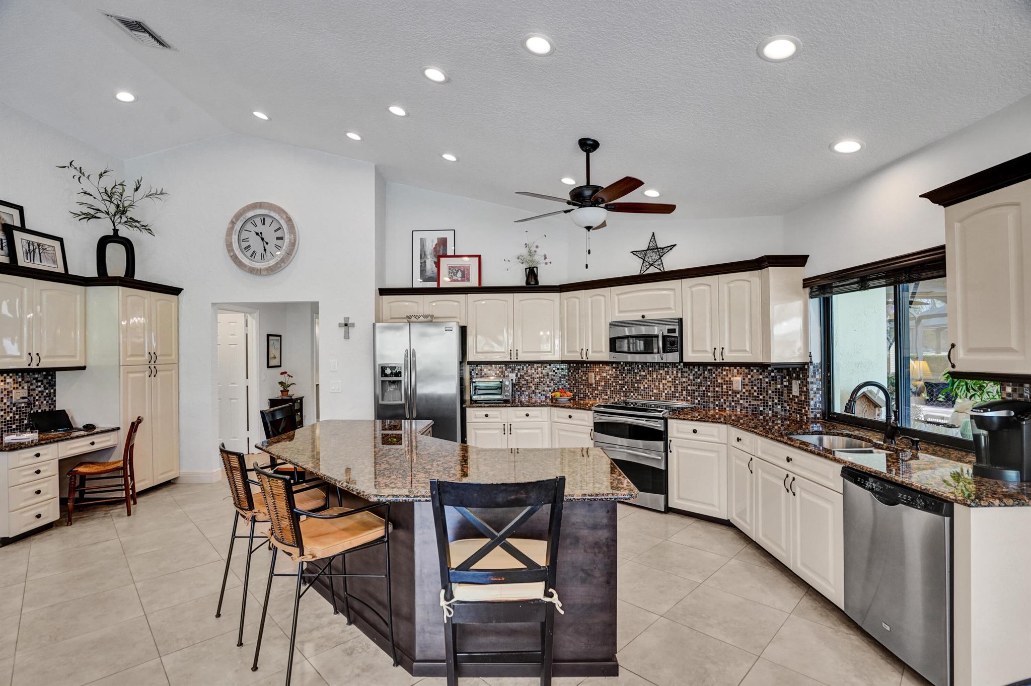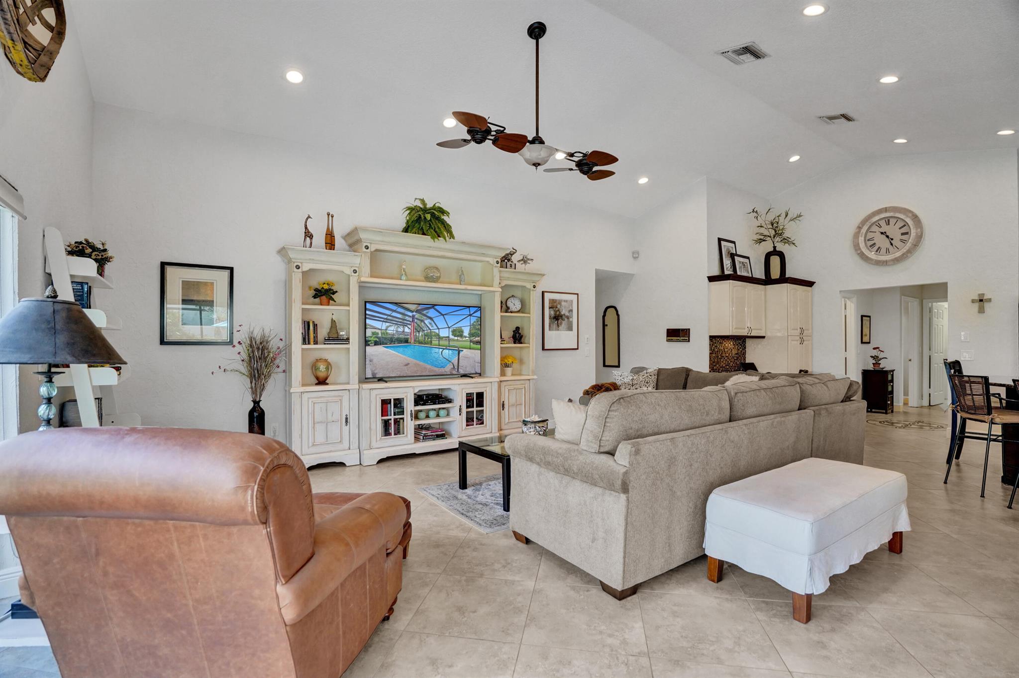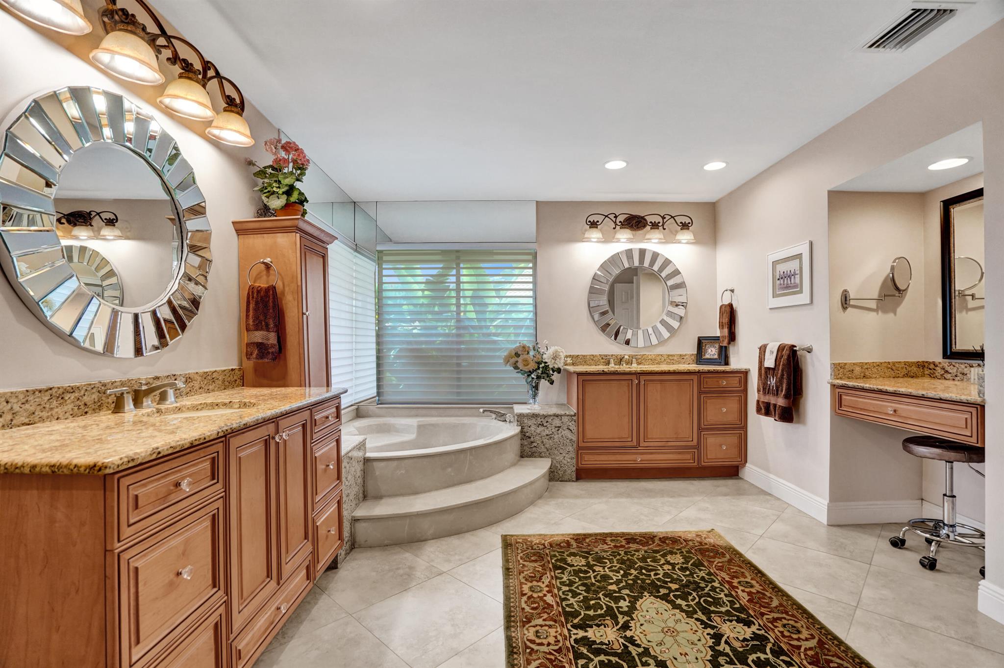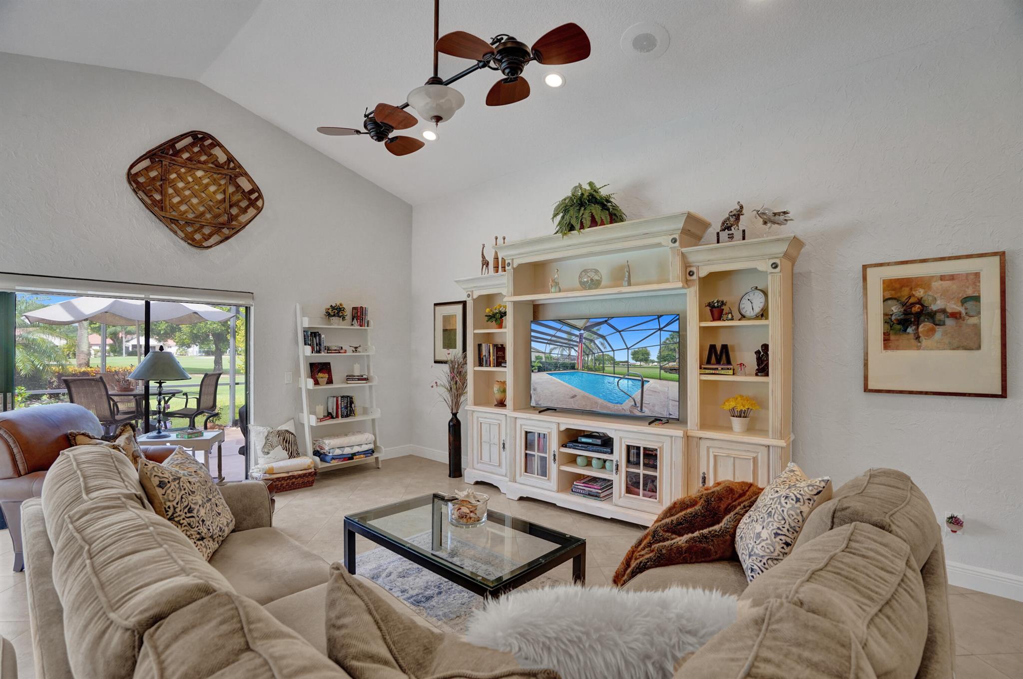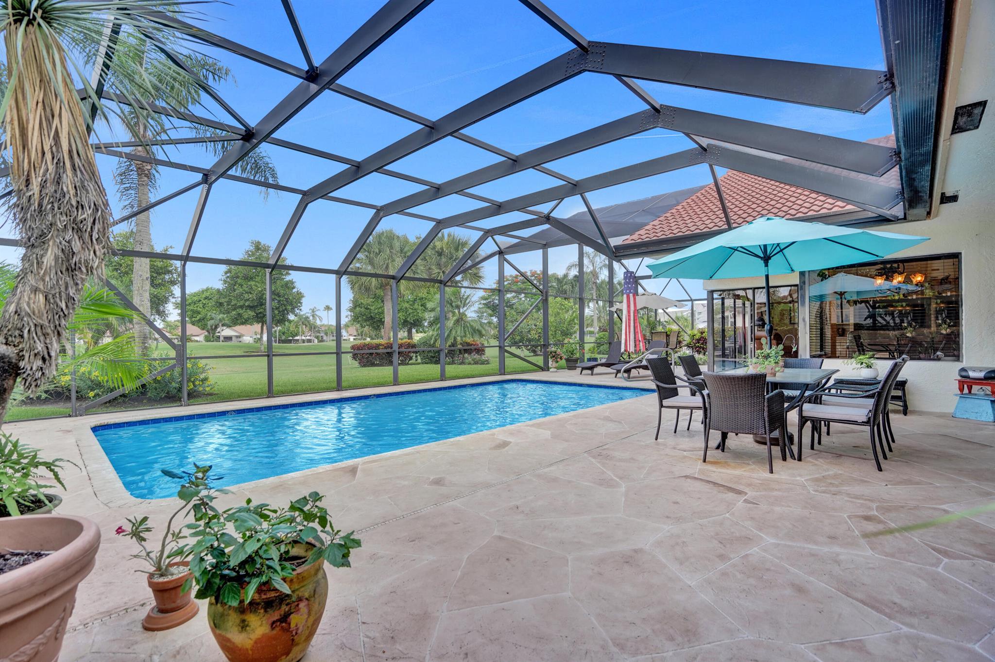 You will love this beautiful Corinthian model in the all-age golf community of Boca Woods. The home is just under 3000 sf; has 3 large bedrooms, 3 full bathrooms and an enclosed patio with a pool. Renovations were completed several years ago and included floors, kitchen and bathes; the house has been impeccably maintained and is in move-in condition. Upon entering the home you are welcomed into a large living area with vaulted ceilings, an adjacent dining room and views of the pool and golf course. The spacious eat-in kitchen/family room provide a gathering point for family fun and entertaining. The home is located on the 11th fairway of the Lakes course and provides amazing views of both the tee and the green. Generac partial home generator is included. Membership is mandatory