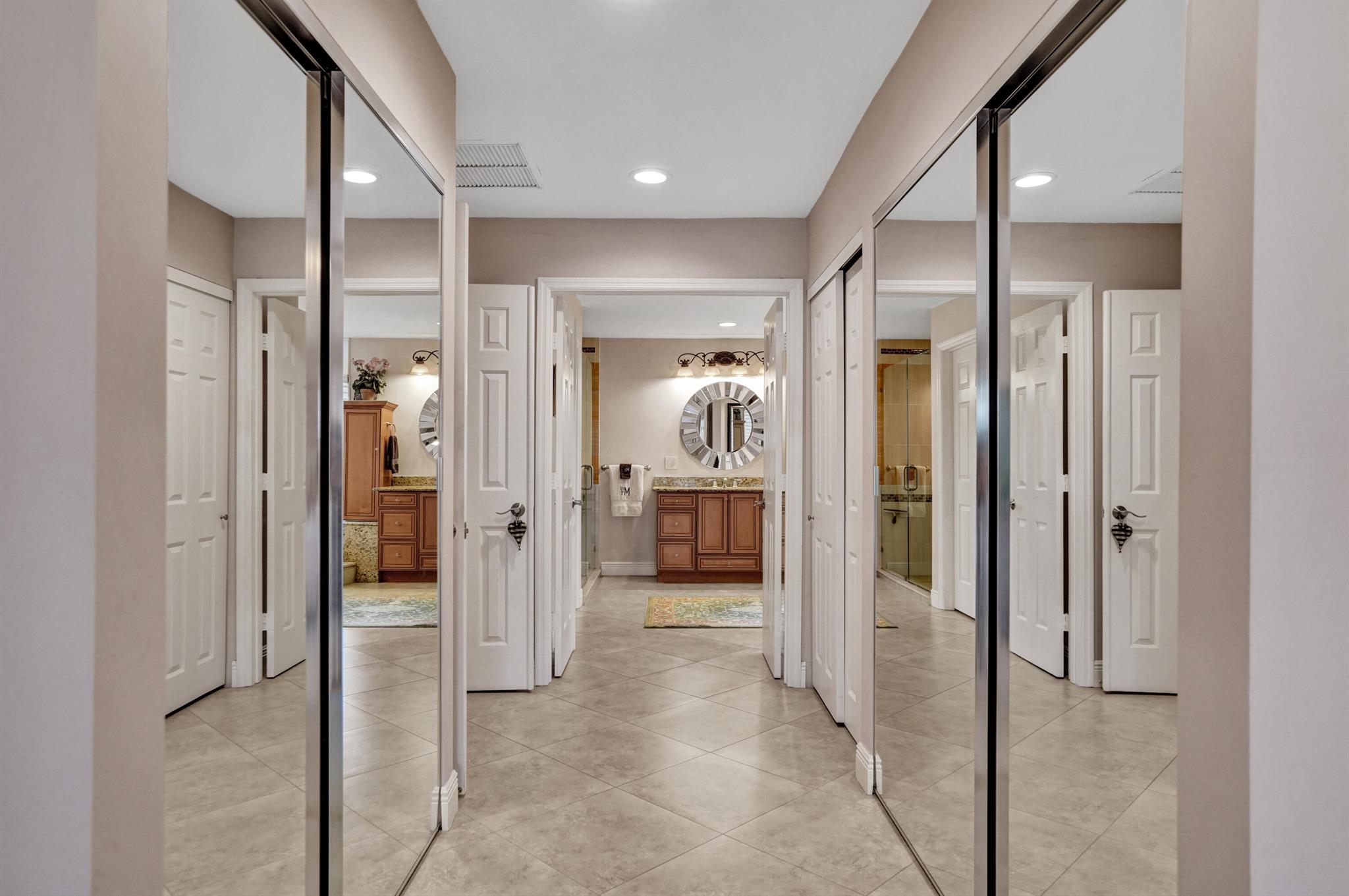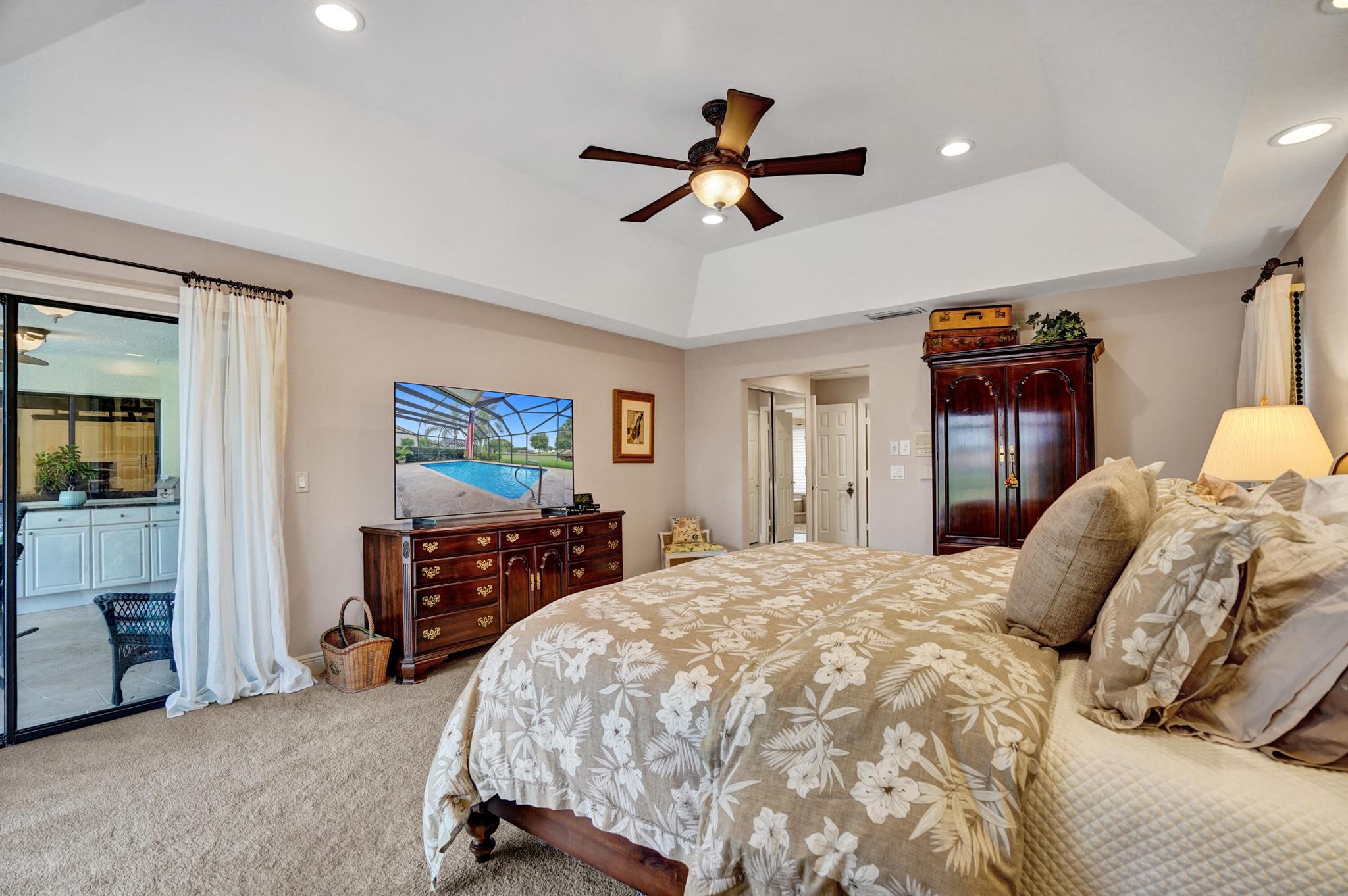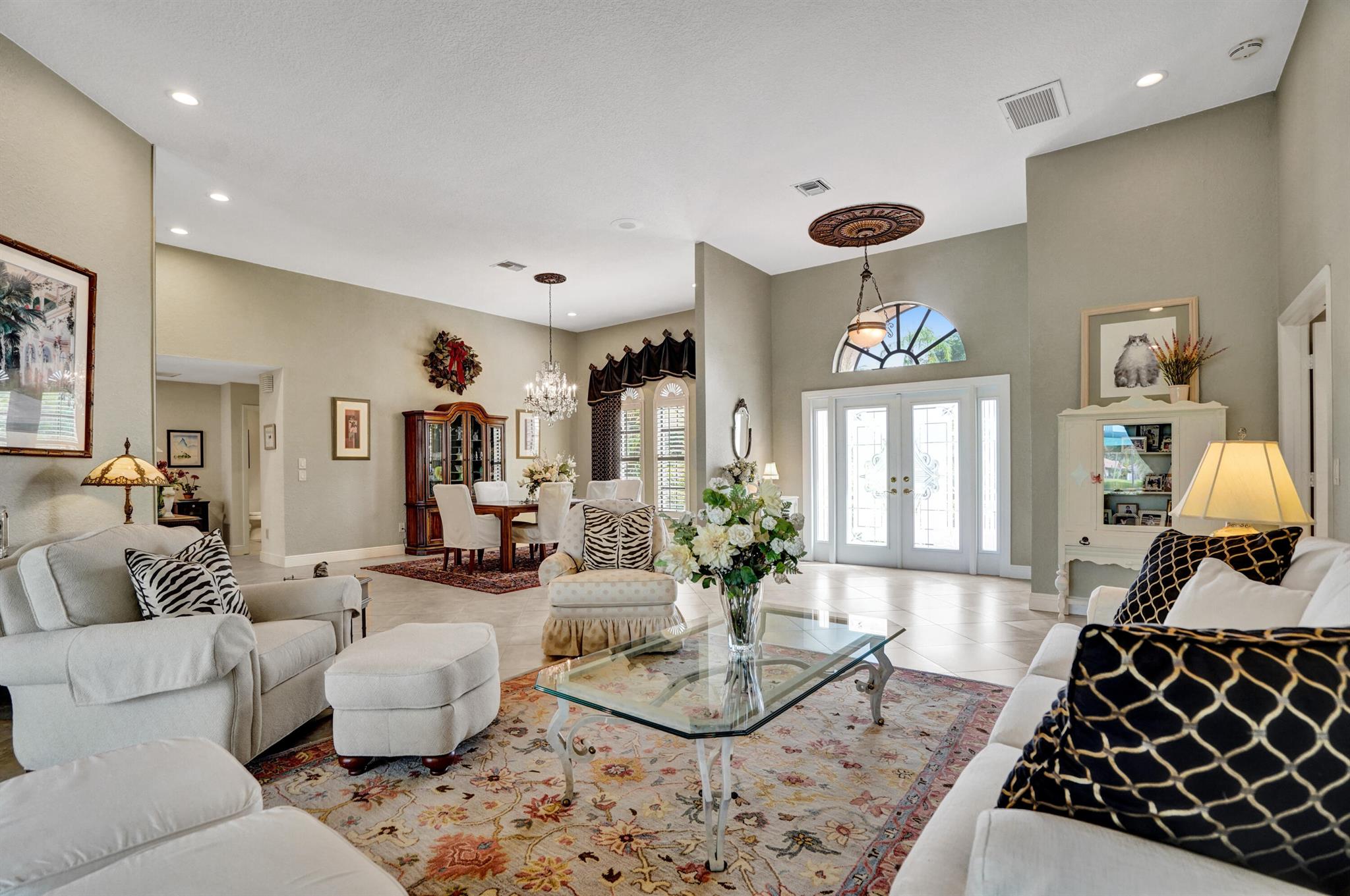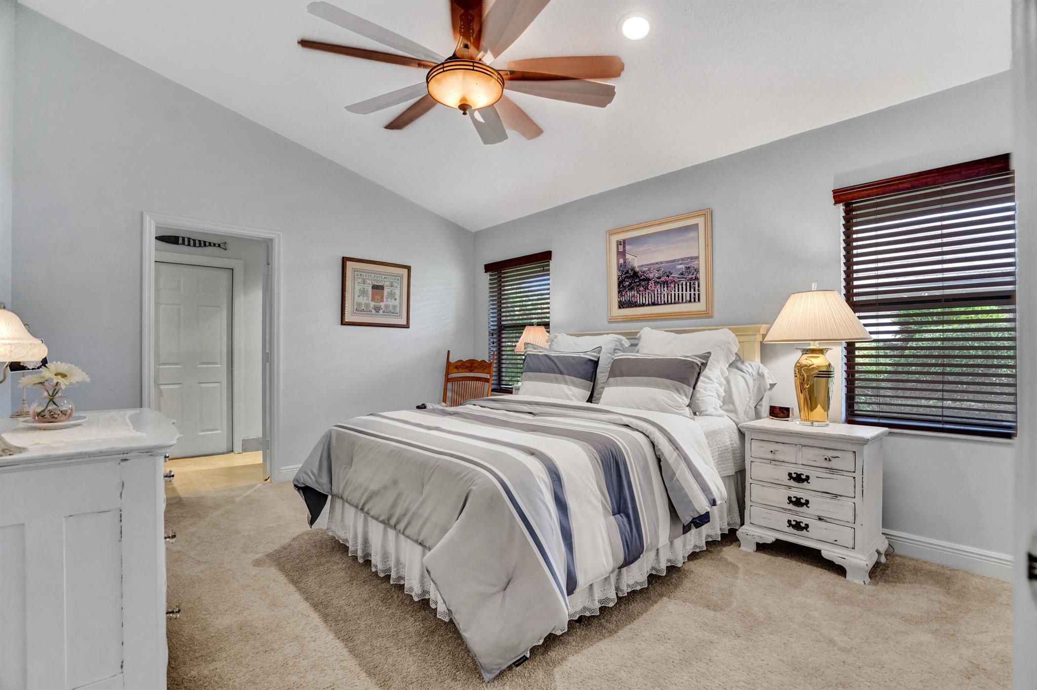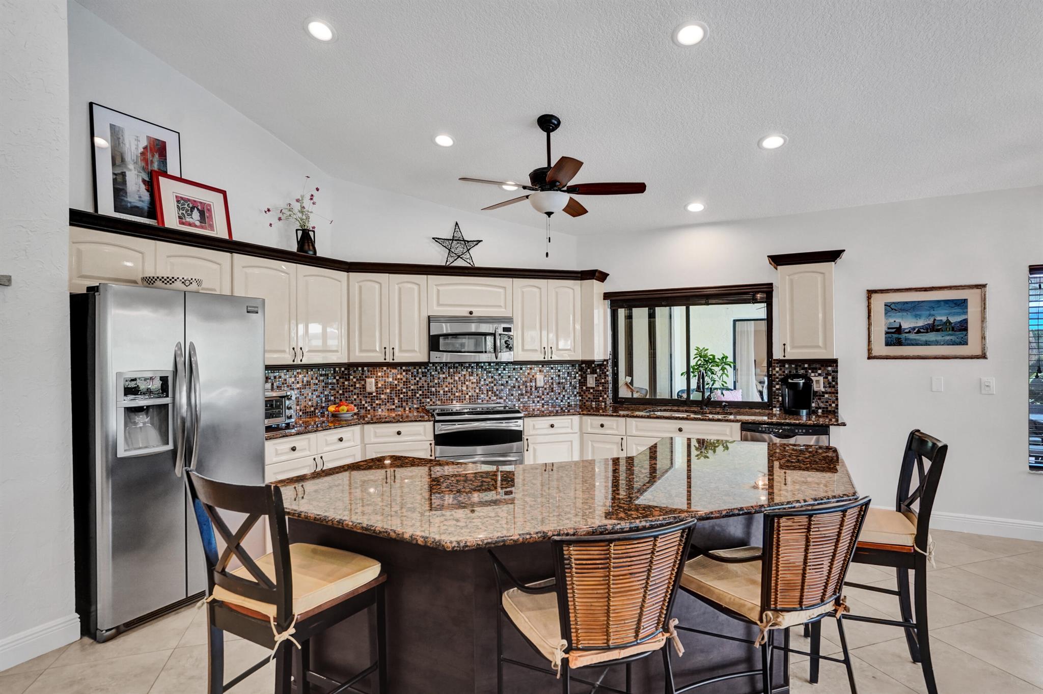 You will love this beautiful Corinthian model in the all-age golf community of Boca Woods. The home is just under 3000 sf; has 3 large bedrooms, 3 full bathrooms and an enclosed patio with a pool. Renovations were completed several years ago and included floors, kitchen and bathes; the house has been impeccably maintained and is in move-in condition. Upon entering the home you are welcomed into a large living area with vaulted ceilings, an adjacent dining room and views of the pool and golf course. The spacious eat-in kitchen/family room provide a gathering point for family fun and entertaining. The home is located on the 11th fairway of the Lakes course and provides amazing views of both the tee and the green. Generac partial home generator is included. Membership is mandatory