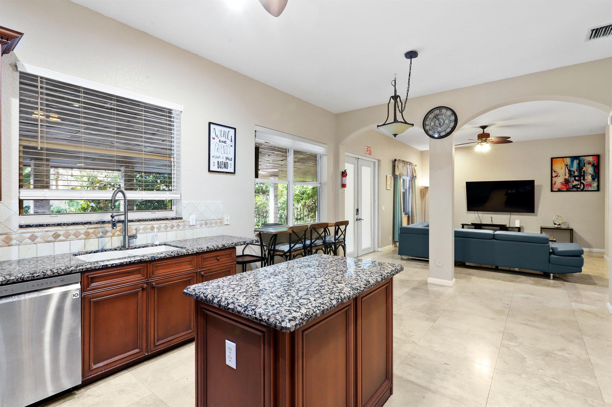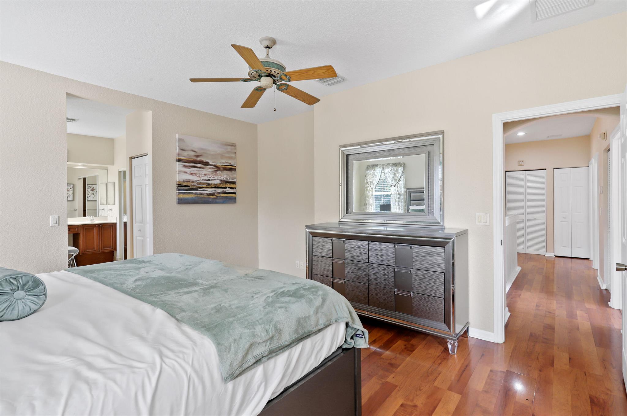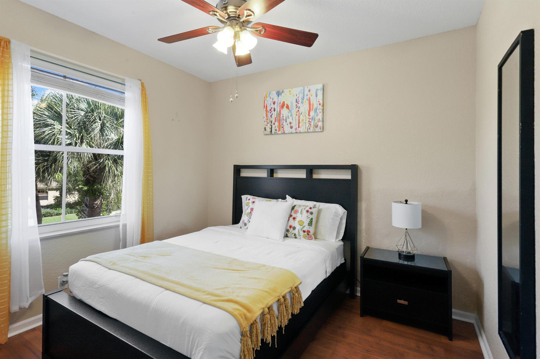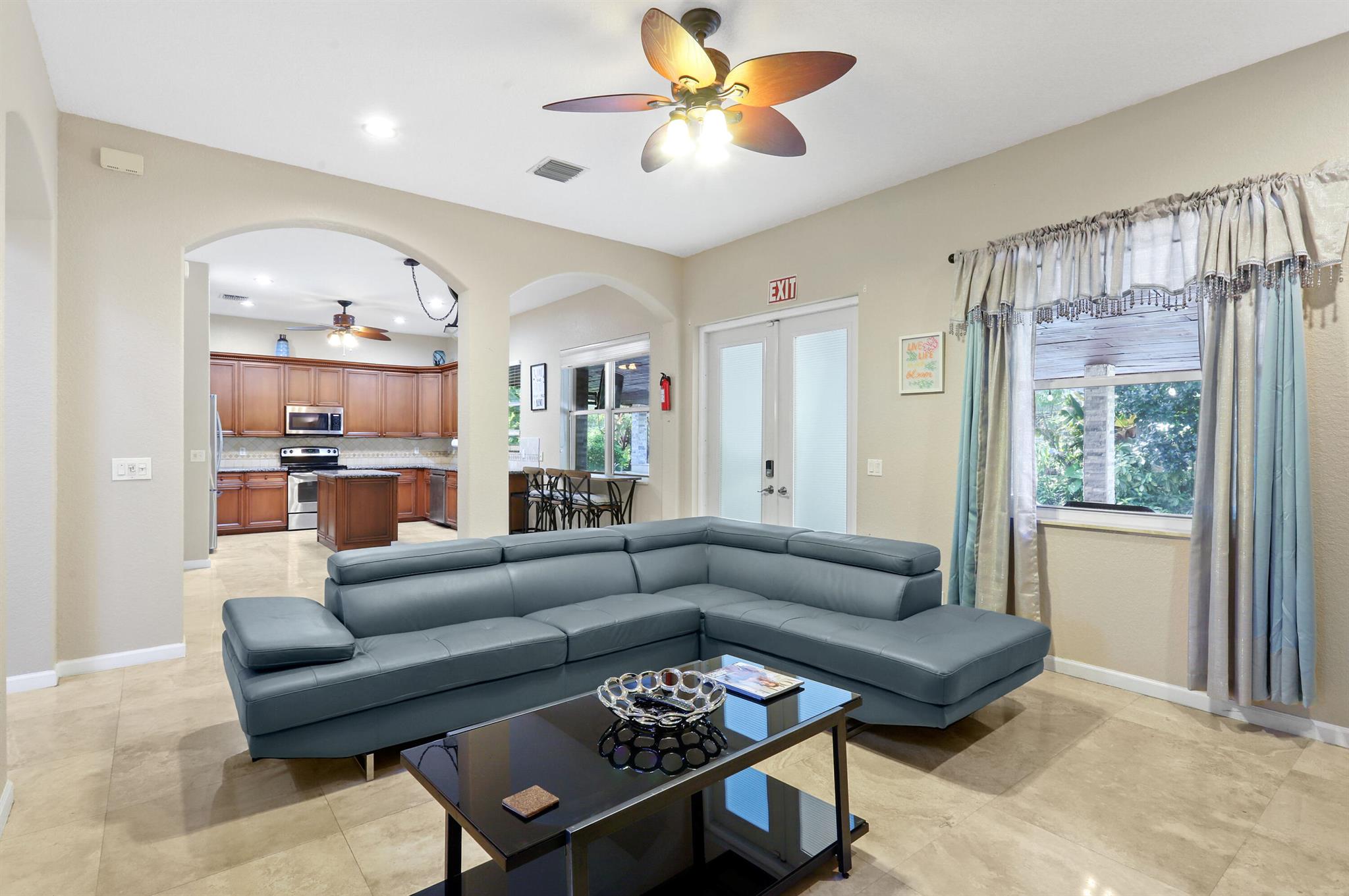 Welcome to the prestigious Laguna Lakes community, a serene and secure gated oasis in the beautiful surroundings of Palm Beach County. This charming home is a rare gem, offering everything you've been searching for. As you enter this elegant sanctuary, you will be greeted by a grand entryway boasting a soaring 20 plus foot vaulted ceiling, creating an undeniable sense of luxury and grandeur. The open floor concept throughout the home allows for seamless flow and effortless entertaining.With five spacious bedrooms and three full bathrooms, this home provides ample space for the entire family and guests. The primary bedroom is a true retreat, featuring an additional sitting area that can be utilized as a nursery or office space, ensuring flexibility and convenience.