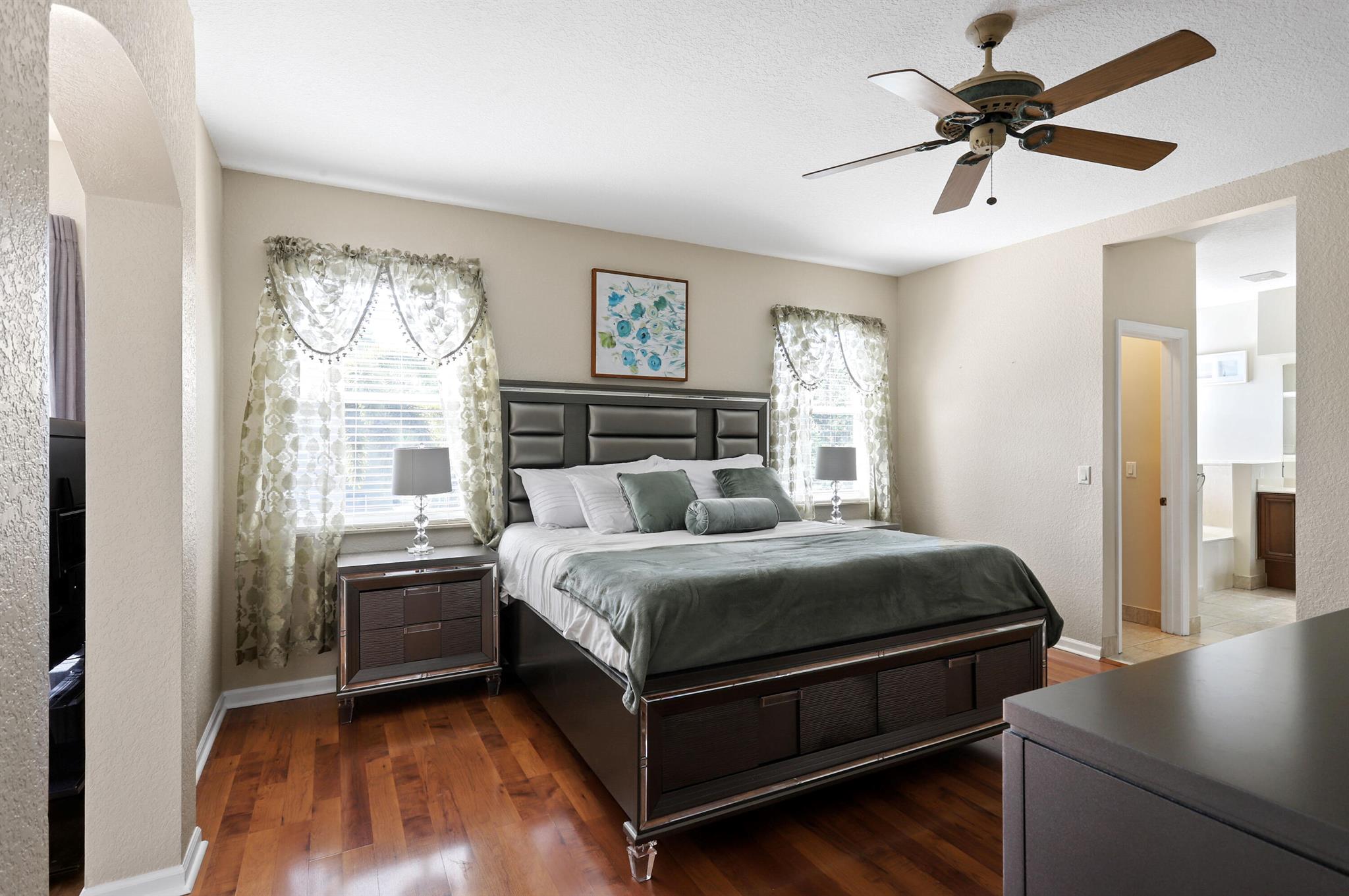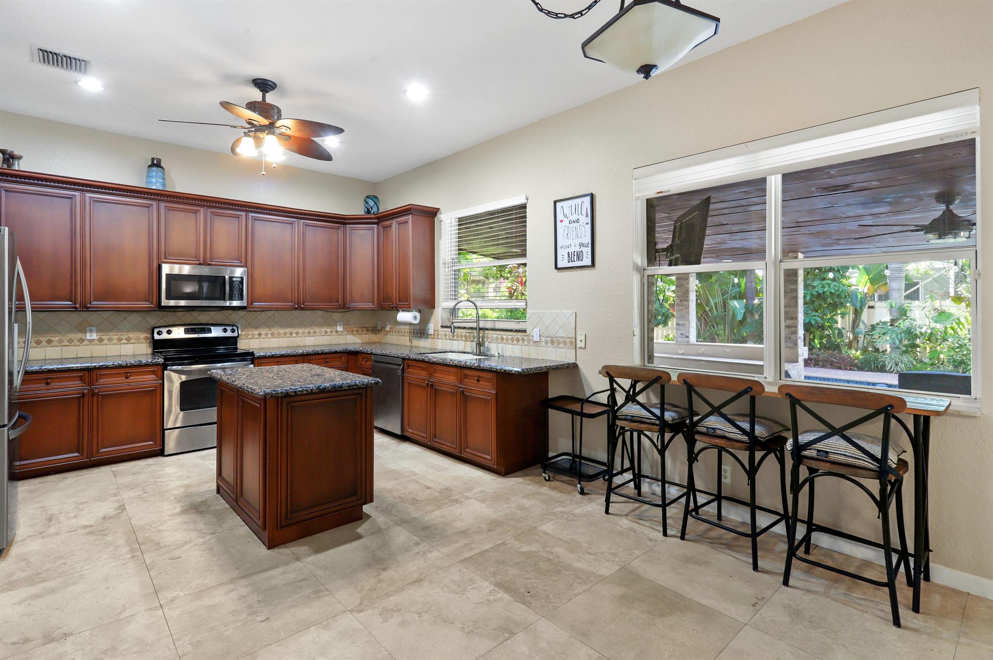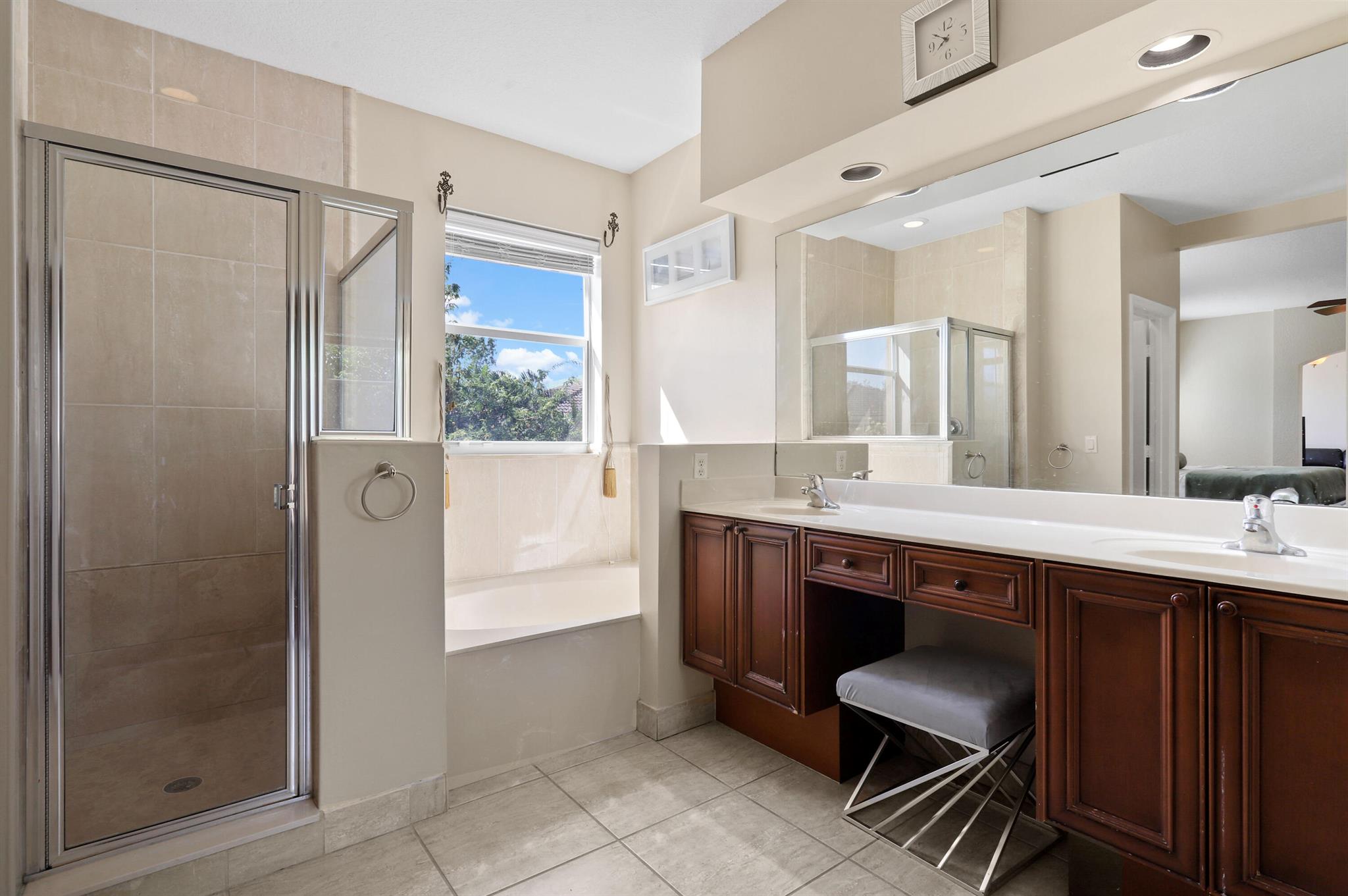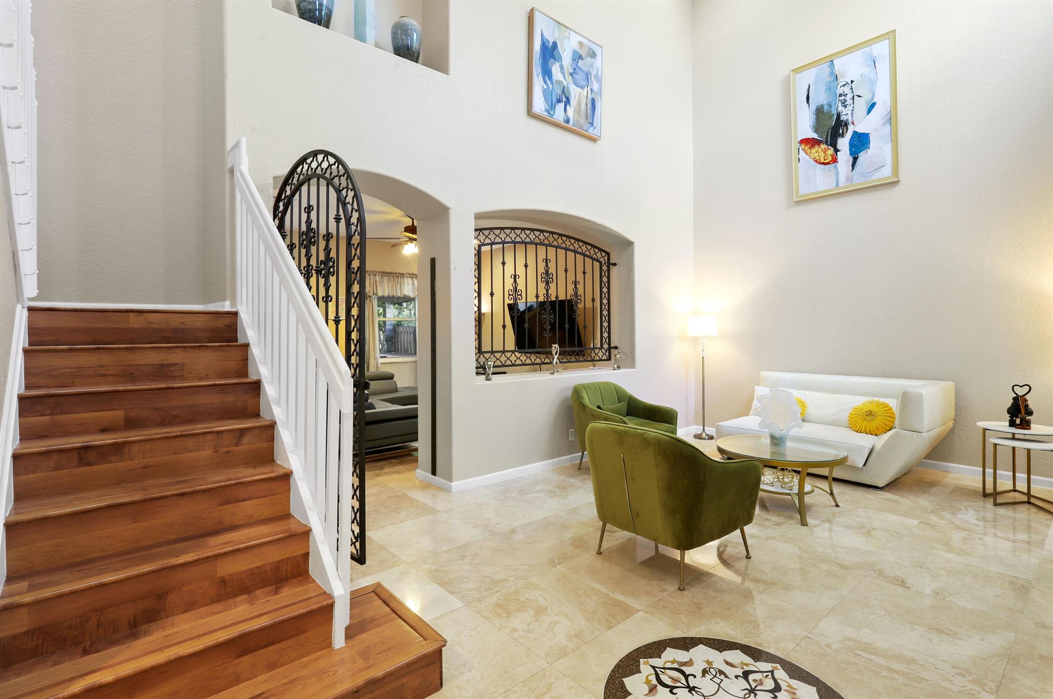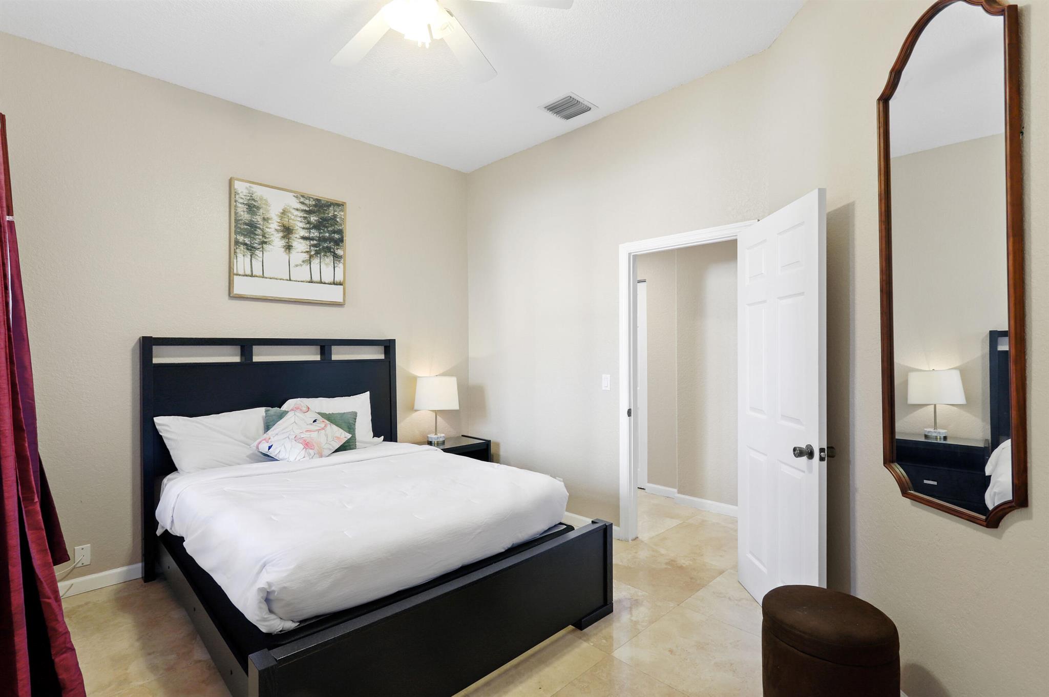 Welcome to the prestigious Laguna Lakes community, a serene and secure gated oasis in the beautiful surroundings of Palm Beach County. This charming home is a rare gem, offering everything you've been searching for. As you enter this elegant sanctuary, you will be greeted by a grand entryway boasting a soaring 20 plus foot vaulted ceiling, creating an undeniable sense of luxury and grandeur. The open floor concept throughout the home allows for seamless flow and effortless entertaining.With five spacious bedrooms and three full bathrooms, this home provides ample space for the entire family and guests. The primary bedroom is a true retreat, featuring an additional sitting area that can be utilized as a nursery or office space, ensuring flexibility and convenience.