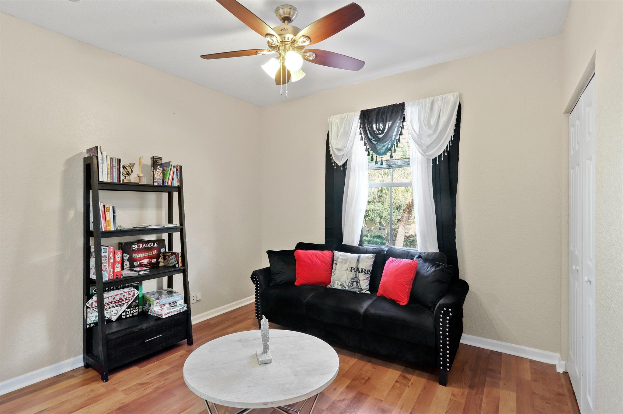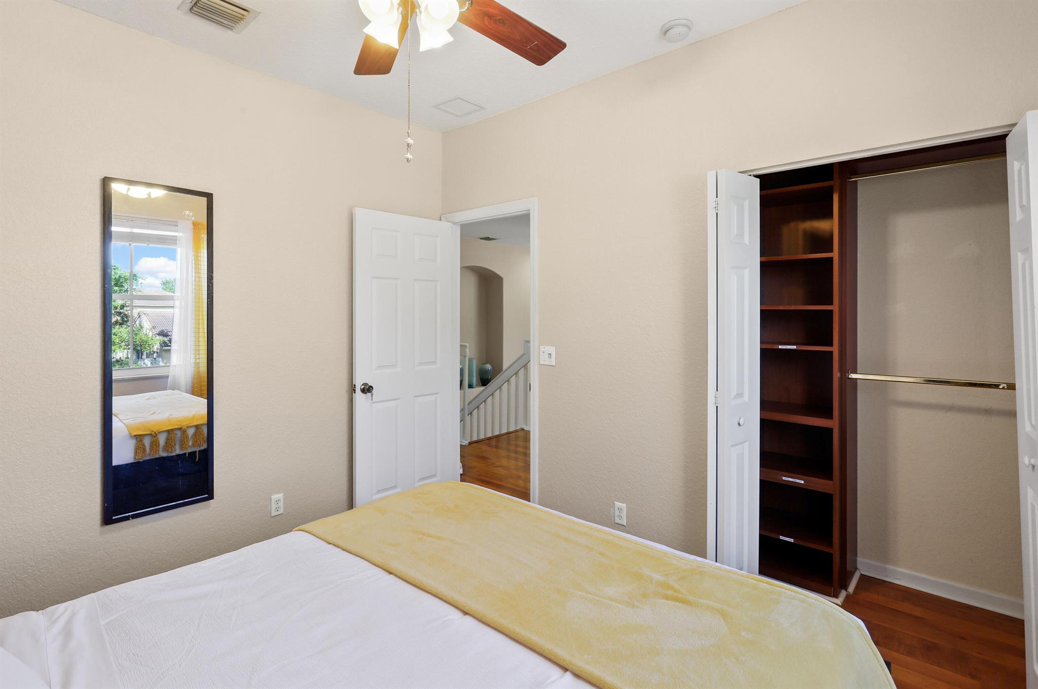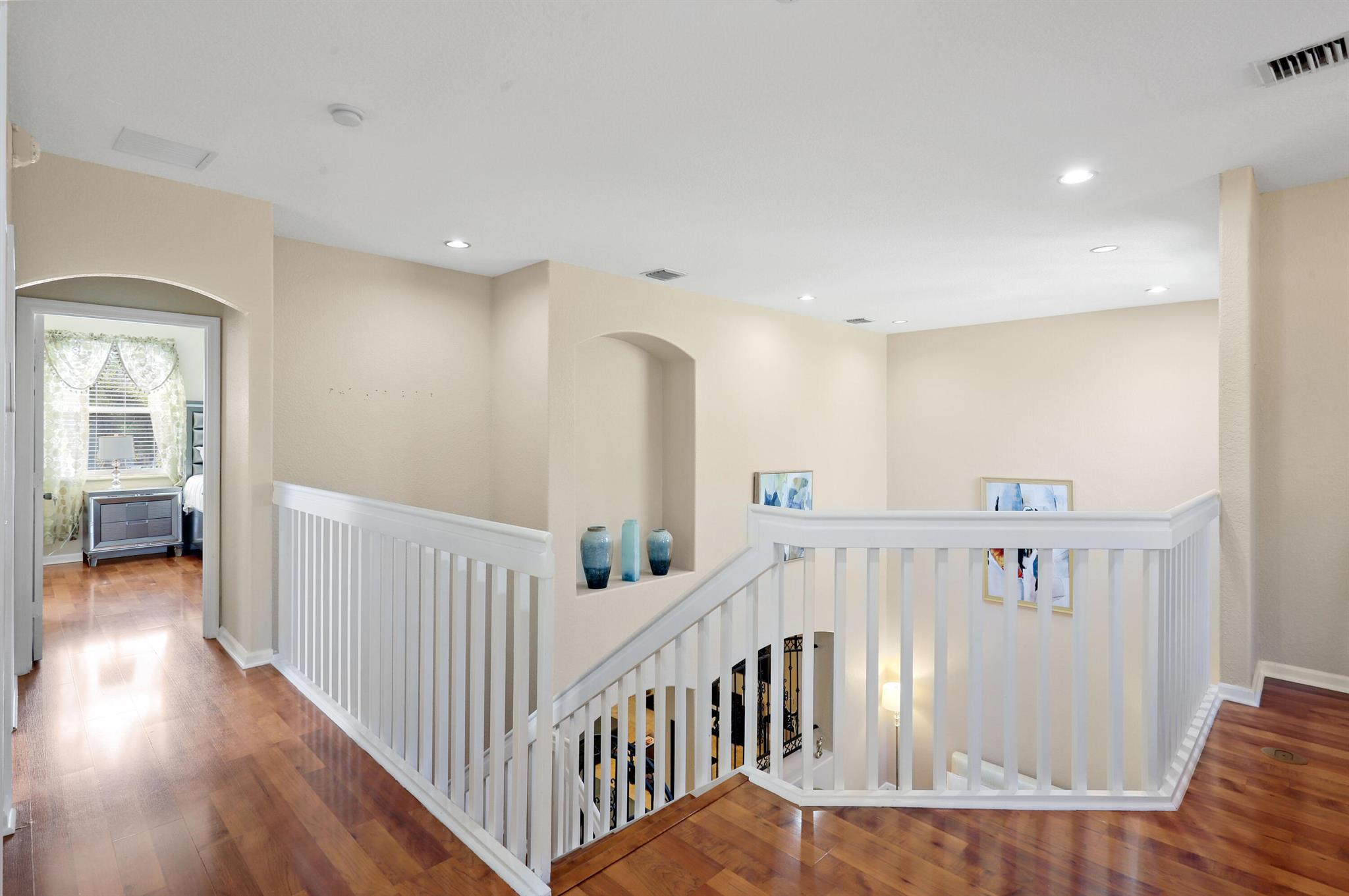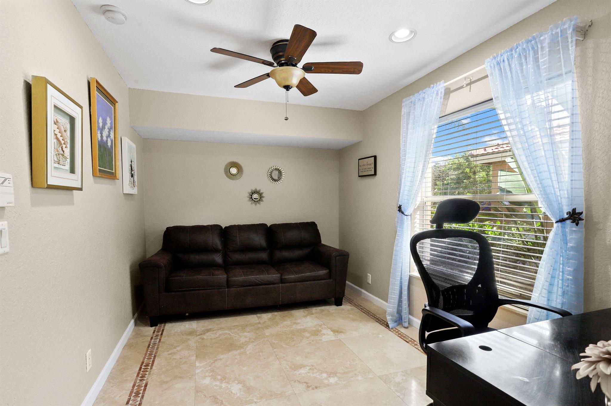 Welcome to the prestigious Laguna Lakes community, a serene and secure gated oasis in the beautiful surroundings of Palm Beach County. This charming home is a rare gem, offering everything you've been searching for. As you enter this elegant sanctuary, you will be greeted by a grand entryway boasting a soaring 20 plus foot vaulted ceiling, creating an undeniable sense of luxury and grandeur. The open floor concept throughout the home allows for seamless flow and effortless entertaining.With five spacious bedrooms and three full bathrooms, this home provides ample space for the entire family and guests. The primary bedroom is a true retreat, featuring an additional sitting area that can be utilized as a nursery or office space, ensuring flexibility and convenience.
