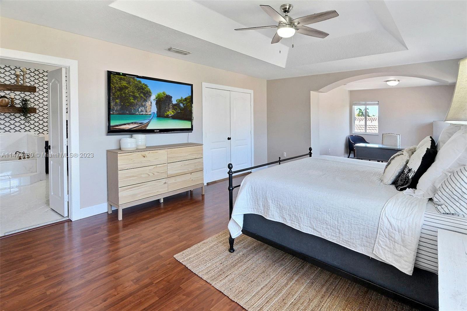 EXQUISITE 4 BED, 2.5 BATH SINGLE FAMILY HOME IN SPANISH LAKES COMMUNITY OF HIALEAH OFFERS 2,780 SQ FT OF LIVING. UPON ARRIVAL BE GREETED BY AN ELEGANT CIRCULAR DRIVEWAY WINDING AROUND TASTEFUL LANDSCAPING. INTERIOR DESIGN ENTHUSIASTS WILL SWOON AT THE ONE OF A KIND, HIGH END DECOR ELEMENTS FOUND THROUGHOUT THIS SPECTACULAR HOME INCLUDING, BOARD & BATTEN ACCENT WALLS, NICHES, & ARCHES. THE KITCHEN THAT DREAMS ARE MADE OF HAS IN DEMAND CAFE SERIES APPLIANCES, BRICK ALCOVE, & TWO TONED CABINETRY TOPPED W/ QUARTZ. A GRAND PRIMARY SUITE HAS A TRAY CEILING & SITTING ROOM GREAT FOR AN OFFICE OR NURSERY. THE STUNNING ENSUITE BATH HAS WRAPAROUND BLUE SHAKER CABINETRY, ROMAN TUB, & SEPARATE SHOWER. PERFECT FOR ENJOYING INDOOR/OUTDOOR LIVING, A WALL OF GLASS DOORS OPEN TO THE SPACIOUS PATIO & YARD.
