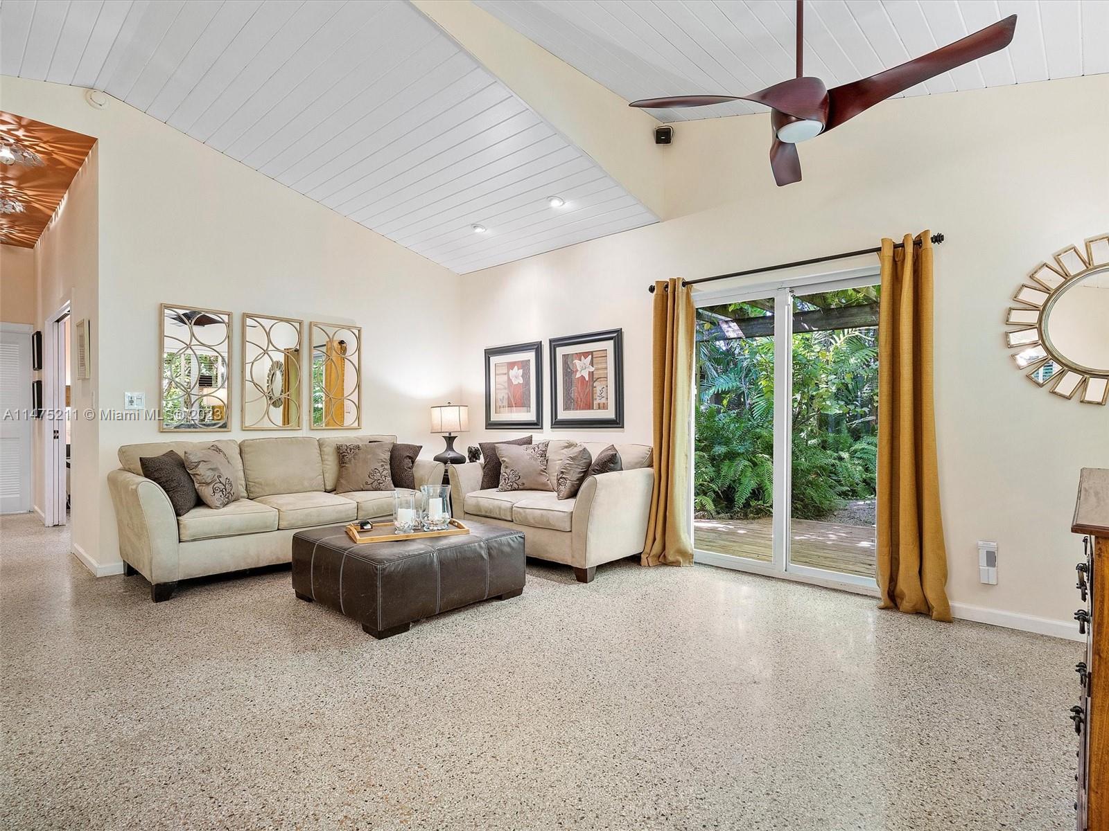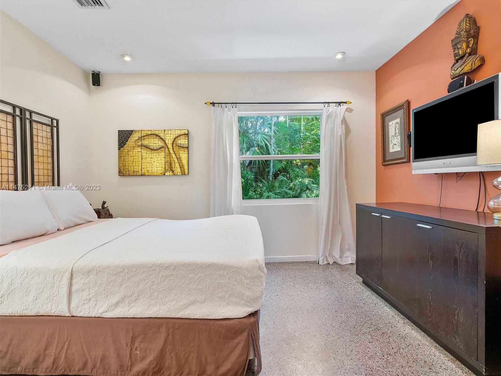 Tucked within a lush garden, this charming Key West-style 2/2, 1269 SF home features vaulted ceilings, a well-appointed kitchen with Downsview cabinetry in stainless steel and green granite countertops, and high-end Miele and GE appliances. The master suite offers relaxation with a deep tub, steam shower, and ample storage. Outside, discover an outdoor shower, winding pathways, a tea house, and fountains. Enjoy proximity to Greynolds Park, golf, grocery stores, restaurants, and the beach. Recent updates: landscape lighting, Rachio WiFi Sprinkler System, GE range and microwave with Chef Connect, tankless water heater, washer/dryer. Outside, two gas firepits and screened porch for privacy. Broker remarks for bedroom count. Serene living environment, ideal for home.