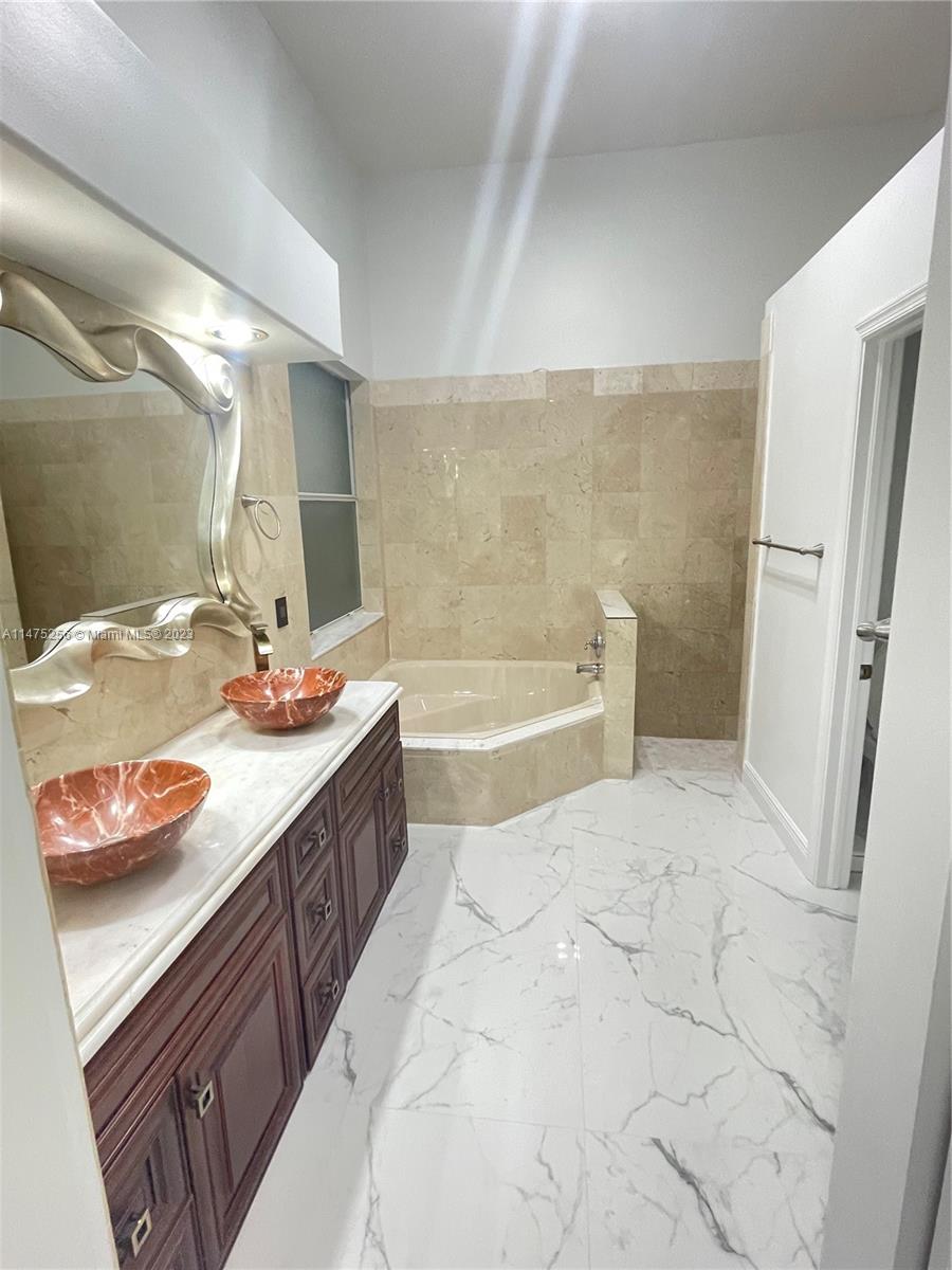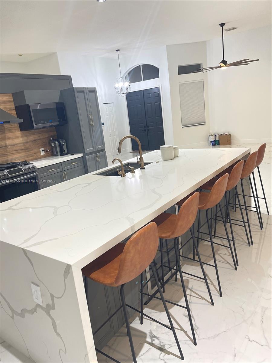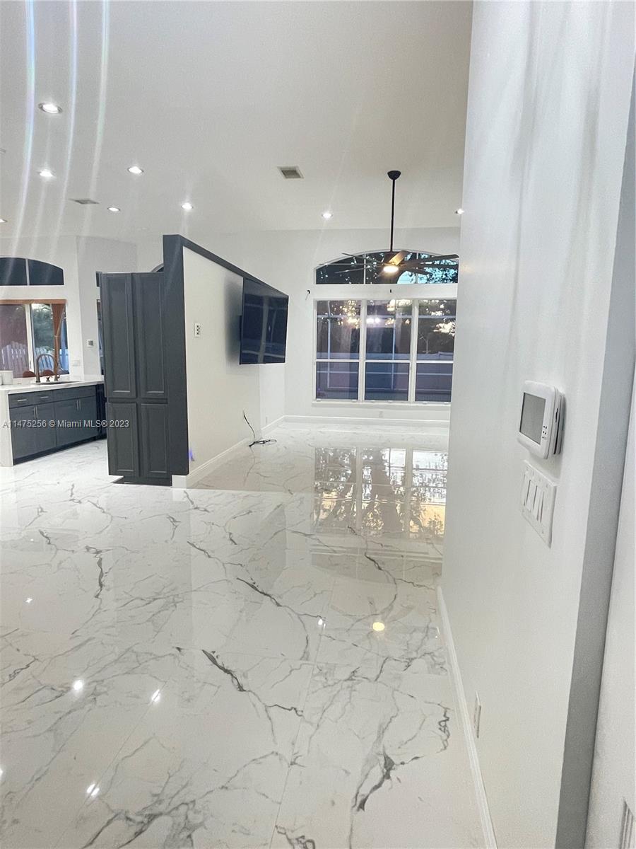 Don't miss this upgraded beautiful house. Stunning Home in quiet security gated community features 4 bedrooms 2.5 bathrooms 2 car garage with salt-water pool. The house bright and shine with porcelain floor all around . 2 closets in the master bedroom and jacuzzi. The kitchen has quartz counter-tops with plenty of cabinet space and storage ,brand new black stainless steel appliances . This house is one floor with high ceiling and Smart vents with smart lights this house has it all! The pool is heated and screened . Close community "Oakridge " , close to i-95 , turnpike , 595, 441 , Hard Rock Casino and shopping centers. Just come and see this amazing property.