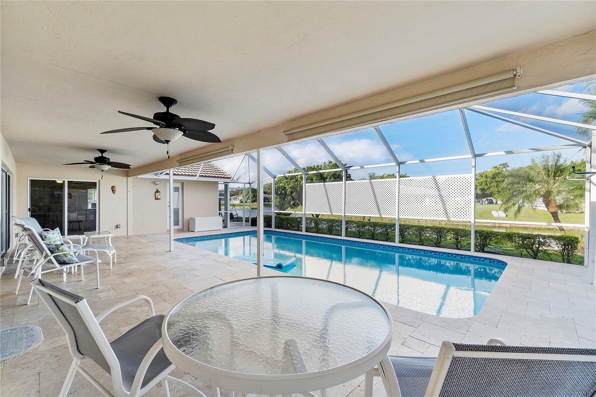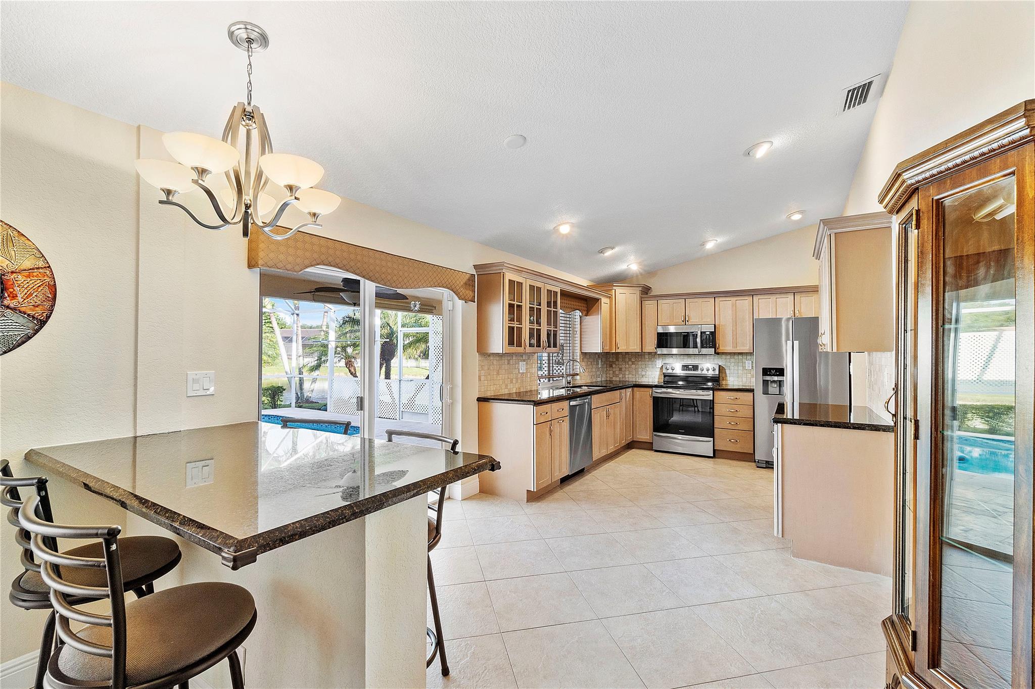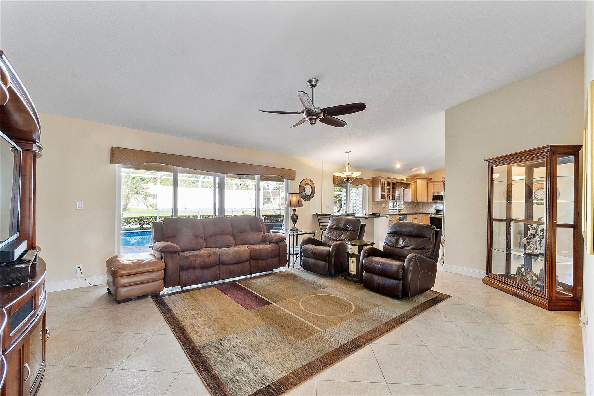 AMAZING OPPORTUNITY TO OWN THIS METICULOUSLY MAINTAINED TURN KEY 4 BEDROOM PLUS 2.5 BATH POOL HOME ON PRIME INTERIOR WATERFRONT LOT. THE MOMENT YOU SET EYES ON THE IMPRESSIVE CURB APPEAL OF THE OUTDOOR SPACES WITH CIRCULAR STAMPED CONCRETE DRIVEWAY, ALL IMPACT WINDOWS AND DOORS, PLUS LUSH LANDSCAPING IS A REFLECTION OF THE WARMTH AND INVITING INTERIOR WITH HIGH VAULTED CEILINGS. PORCELAIN TILE FLOORS (NO CARPET), FRESHLY PAINTED INTERIOR AND EXTERIOR, NEW AC (2022), NEWER SS APPLIANCES, UPDATED BATHROOMS (2021) SOLID SURFACE COUNTERS, ELECTRIC SHADES, PLANTATION SHUTTERS, AND HUGE FAMILY ROOM AND LIVING ROOM! ENORMOUS SCREENED RESURFACED HEATED POOL WITH TRAVERTINE (2020) DECKING PERFECT FOR RESORT ENTERTAINING & BEST SUNSETS. CAMERAS & GENERATOR INCLUDED. NO HOA! GREAT CYPRESS GLEN AREA.