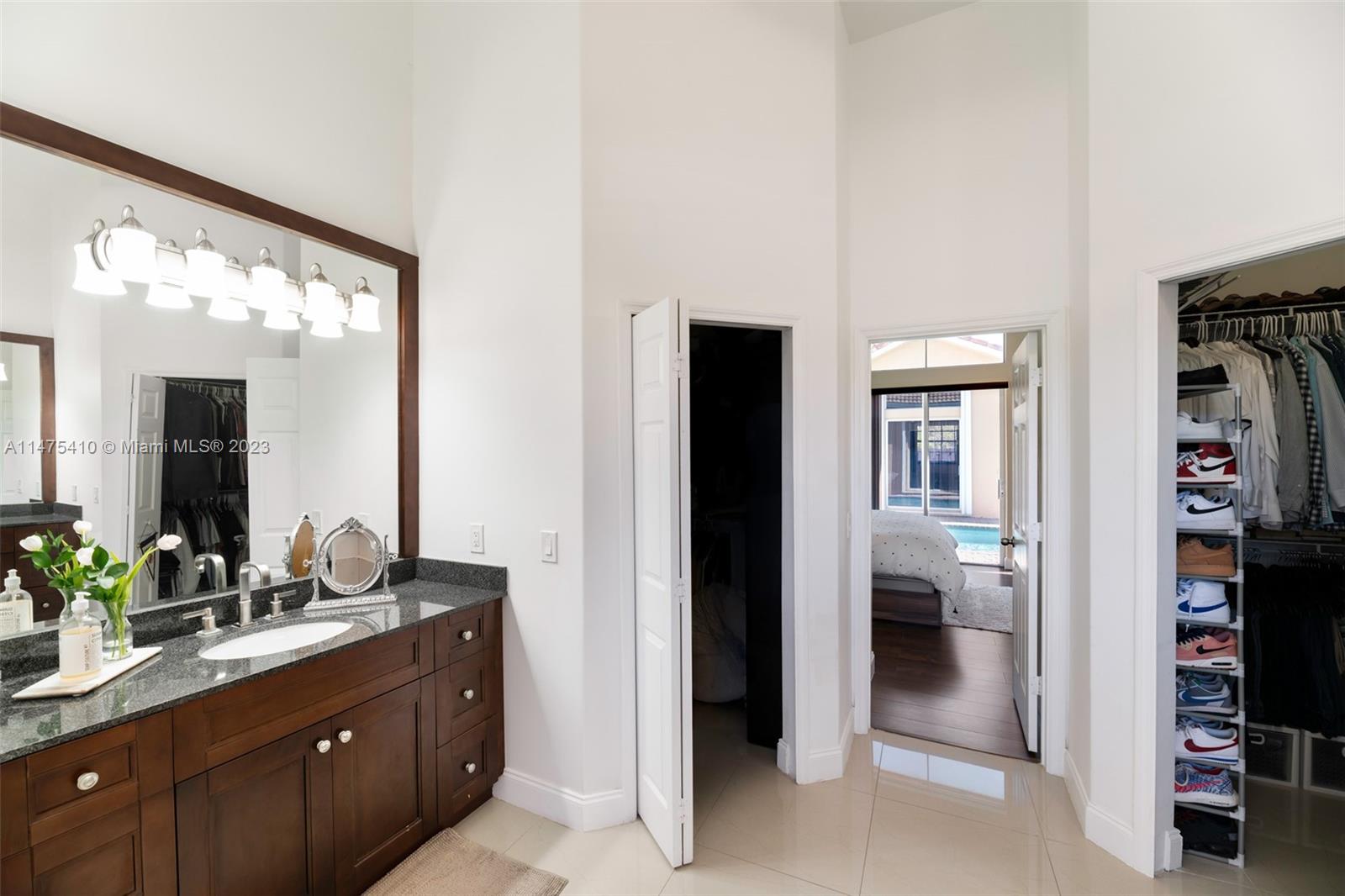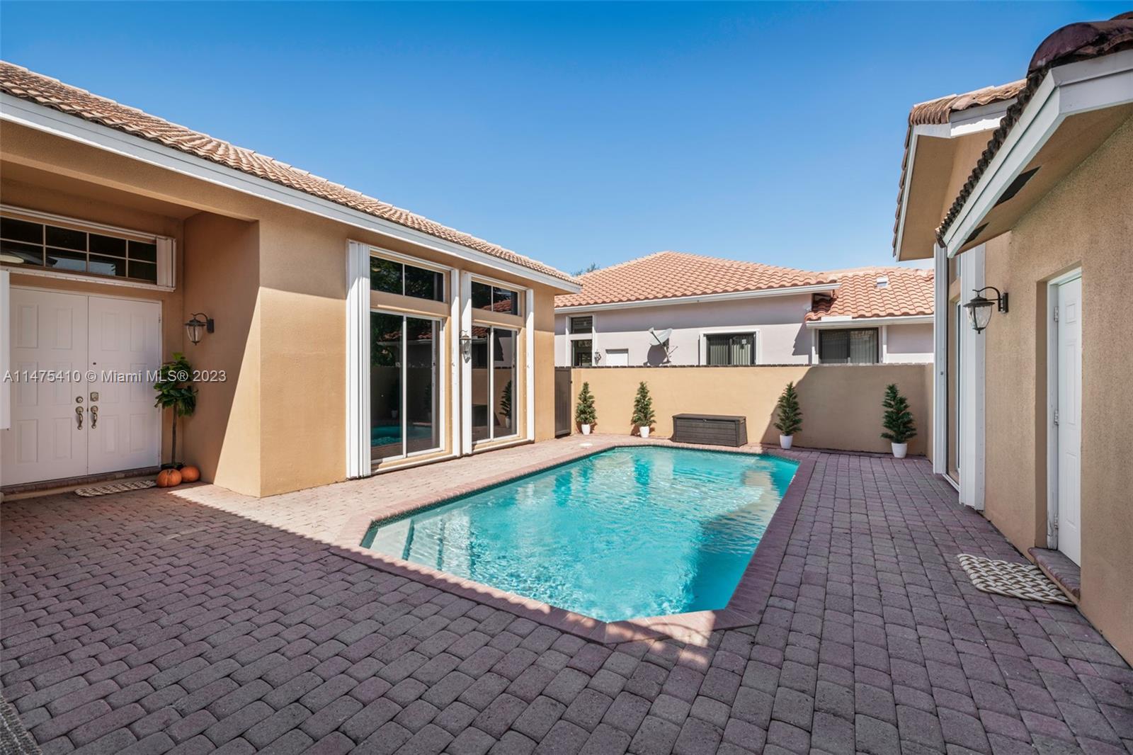 Welcome this beautiful, spacious and cozy home with 3 Bd, 2 Ba in the main house and a private 1/1 guest quarters with a courtyard style pool. Located in guard-gated, family-friendly Spring Valley Estates community with roving security. Fully updated in 2017, you are welcomed by a foyer and formal living space, double ceilings, tile and wood flooring throughout. Tons of natural lighting with a delightful backyard perfect for gatherings. Spacious kitchen with granite countertops opens to large family room and dining area. Vast primary bedroom/bath updated in 2021 with double vanities, his and her closets. Full protection with hurricane shutters, 2022 AC with new ductwork, 2 car garage, and community park with tennis/pickle ball courts and kids park. Low monthly assn fees of $100/mo.