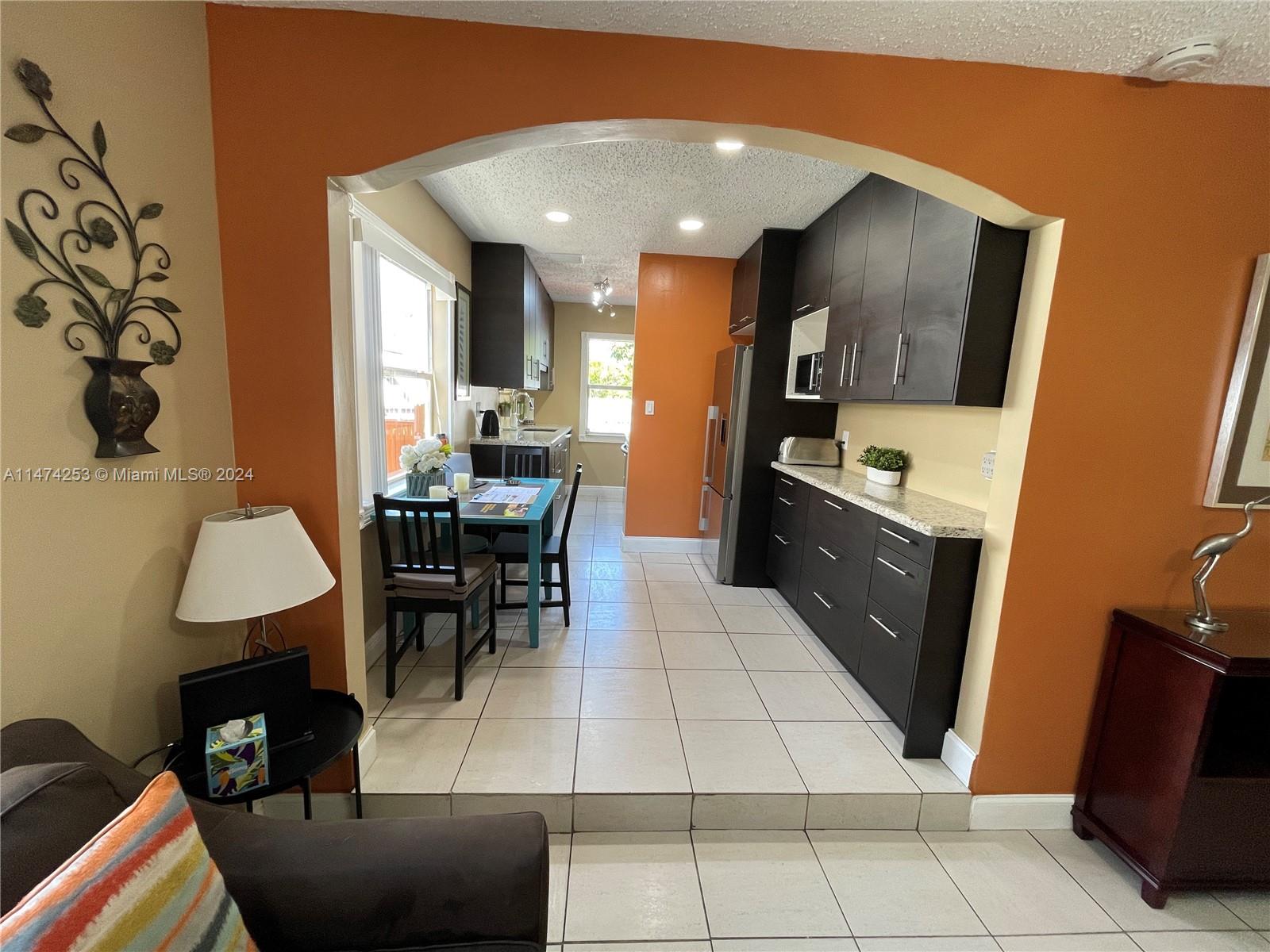 Experience the charm of this beautiful home in the heart of downtown Hollywood. With a small charming living room, tiled floors, and a fully renovated kitchen and bathroom. Washer and dryer are located inside the unit. Enjoy a lovely deck and pool, perfect for your relaxing evenings.