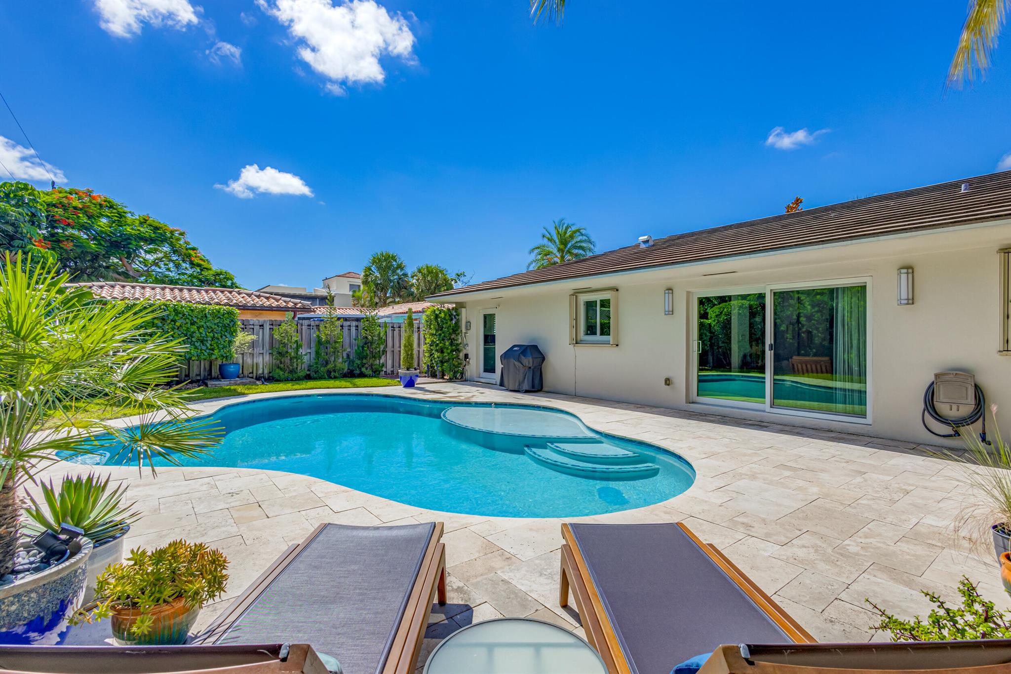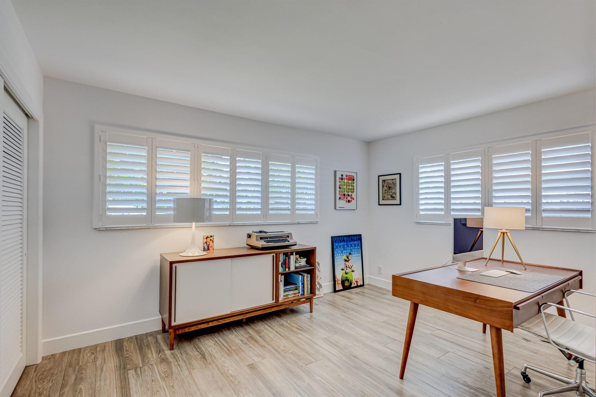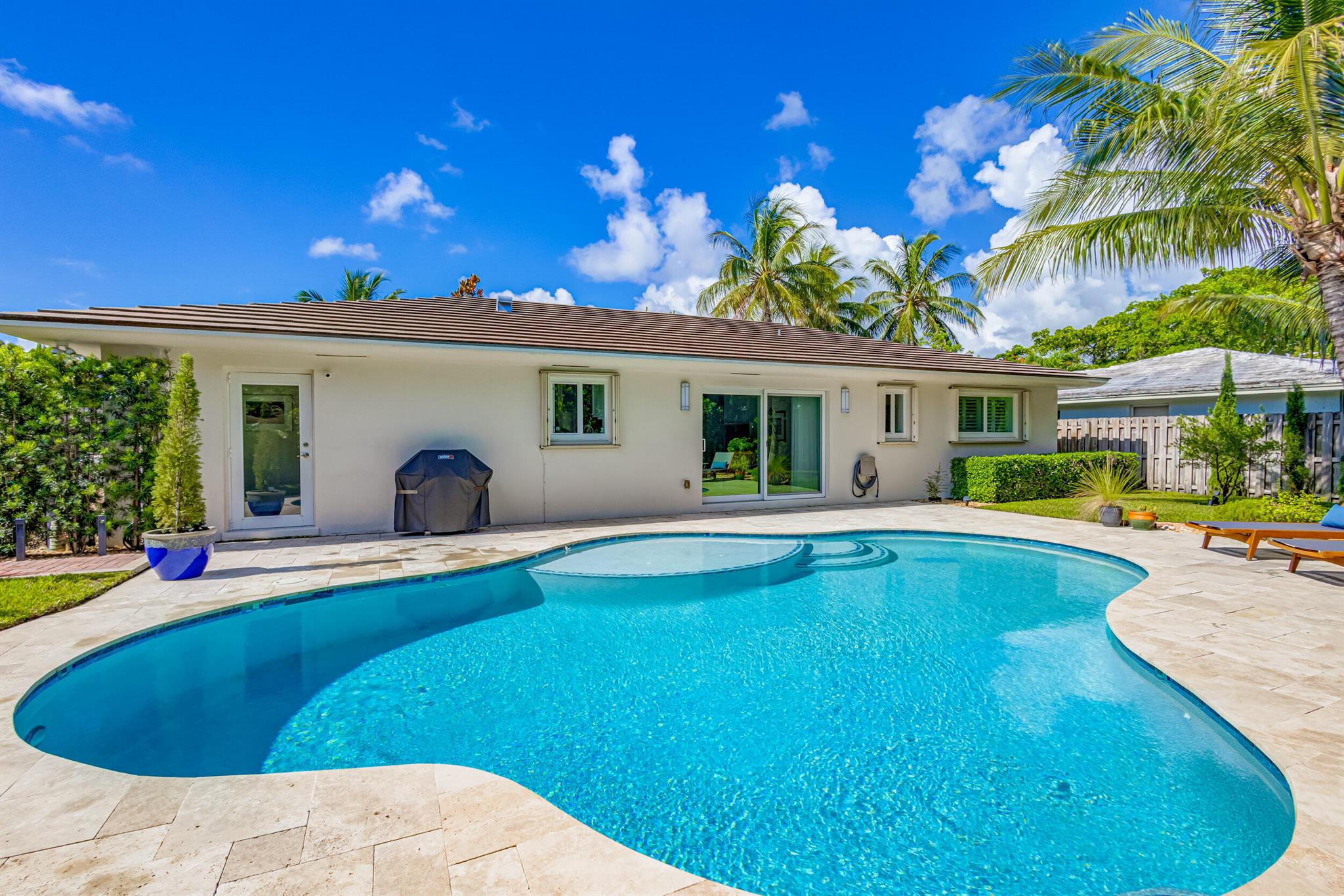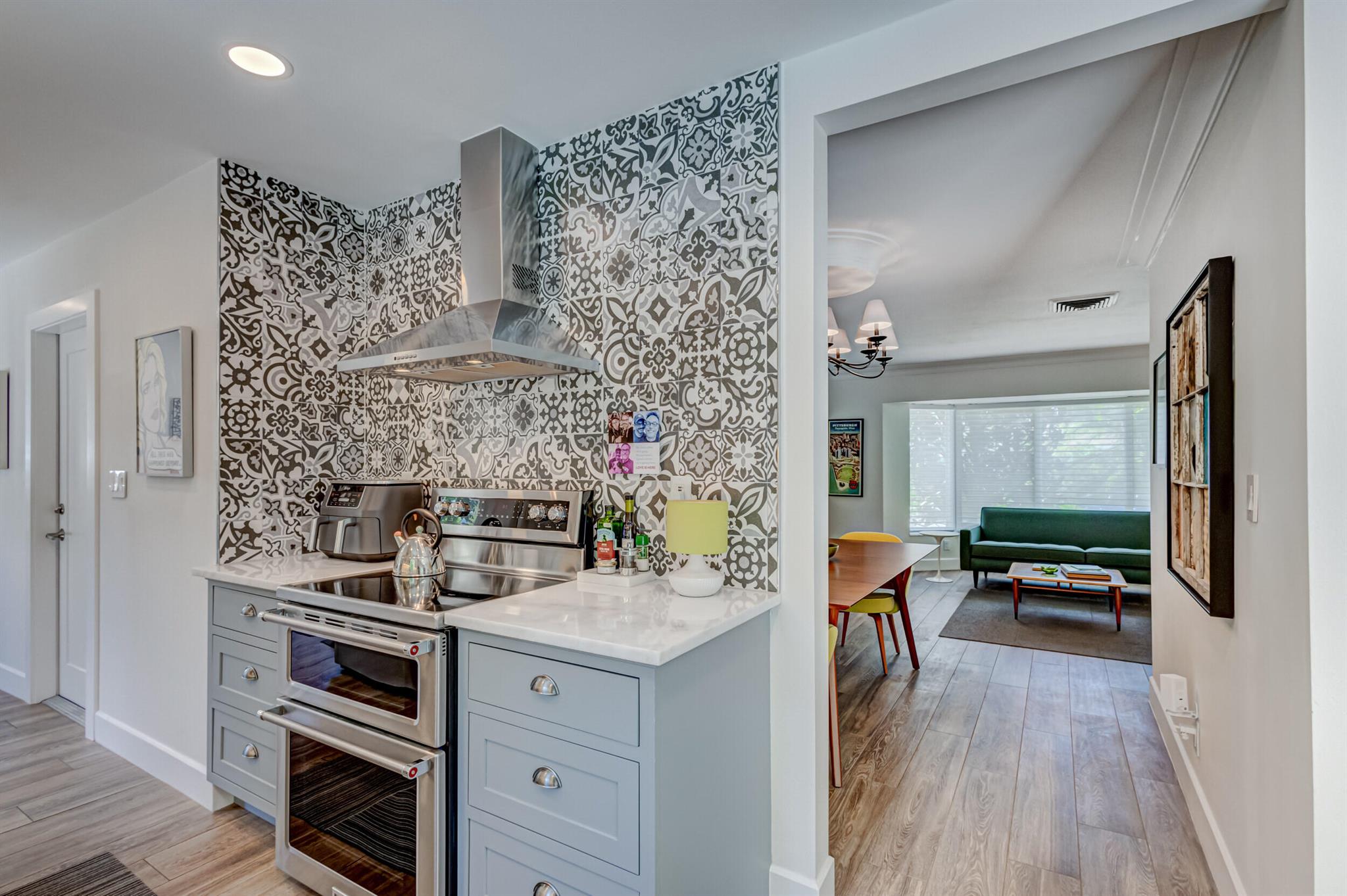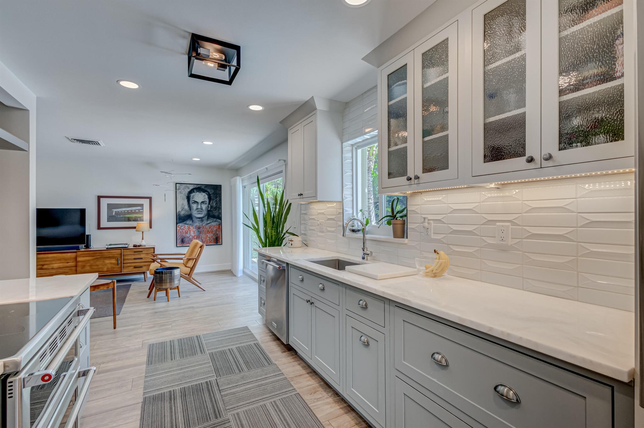 Newly renovated and superbly maintained 2-bedroom, 2-bath home in the highly desirable Hillcrest-Vedado Historic District in West Palm Beach. This home features luxury upgrades and features, including solid maple cabinetry and marble countertops in the kitchen, KitchenAid and Samsung appliances, modern baths with floor-to-ceiling tile, wood plank tile flooring throughout, solid wood shaker-style interior doors, designer lighting throughout, plantation shutters and custom window treatment, custom closet systems. Impact windows, plumbing, and electric were upgraded in 2017, concrete title roof installed in 2020, louver style clad garage door installed in 2021. A/C condenser and air handler replaced in 2023.