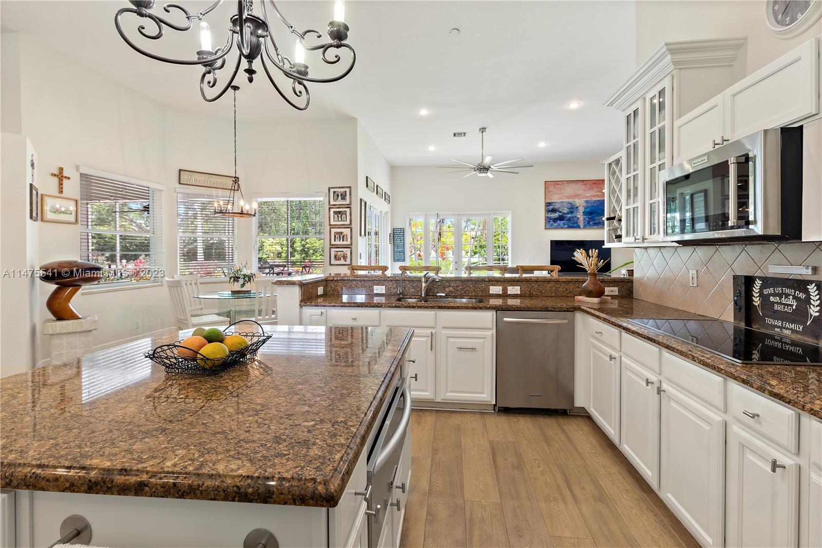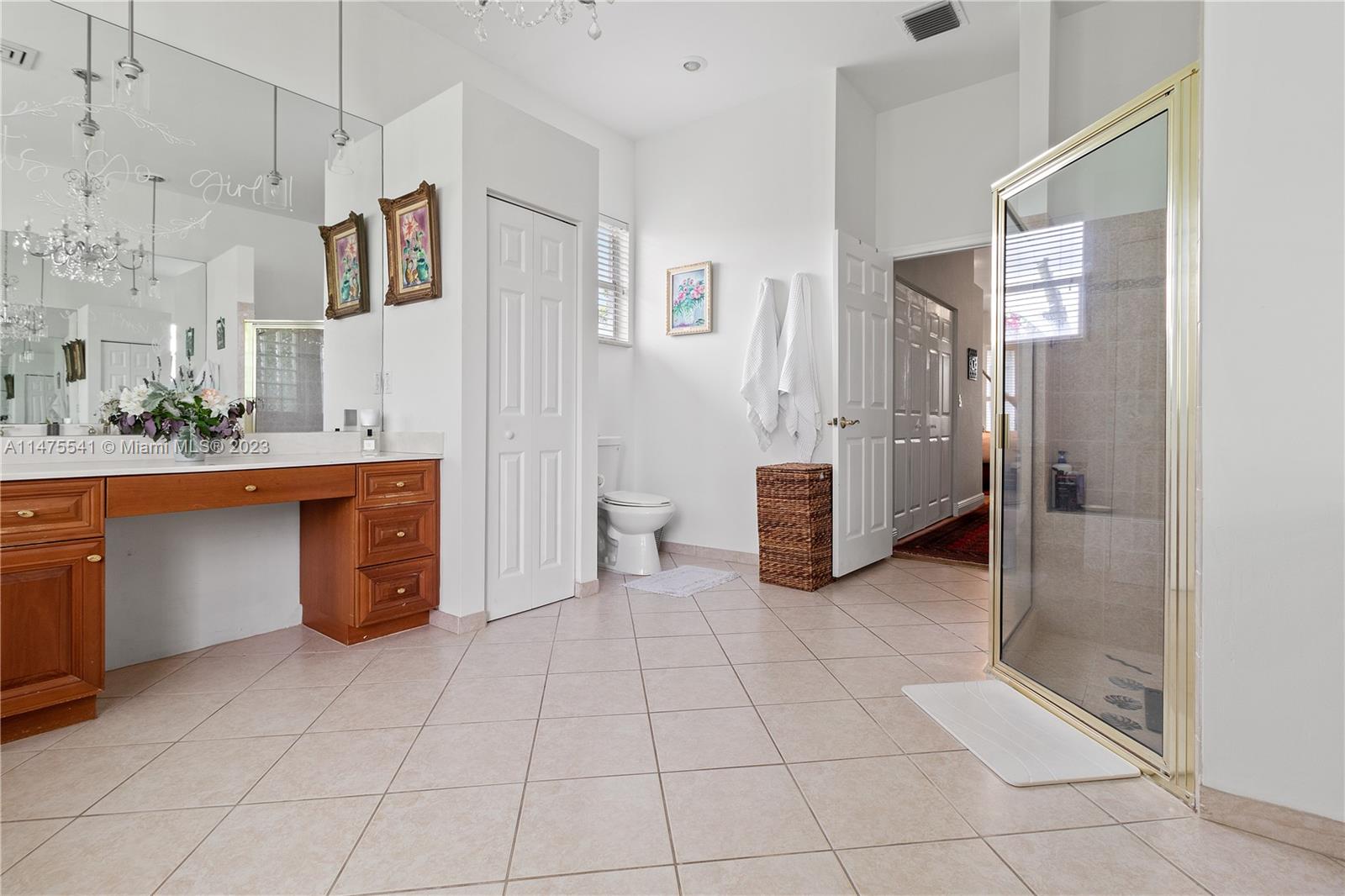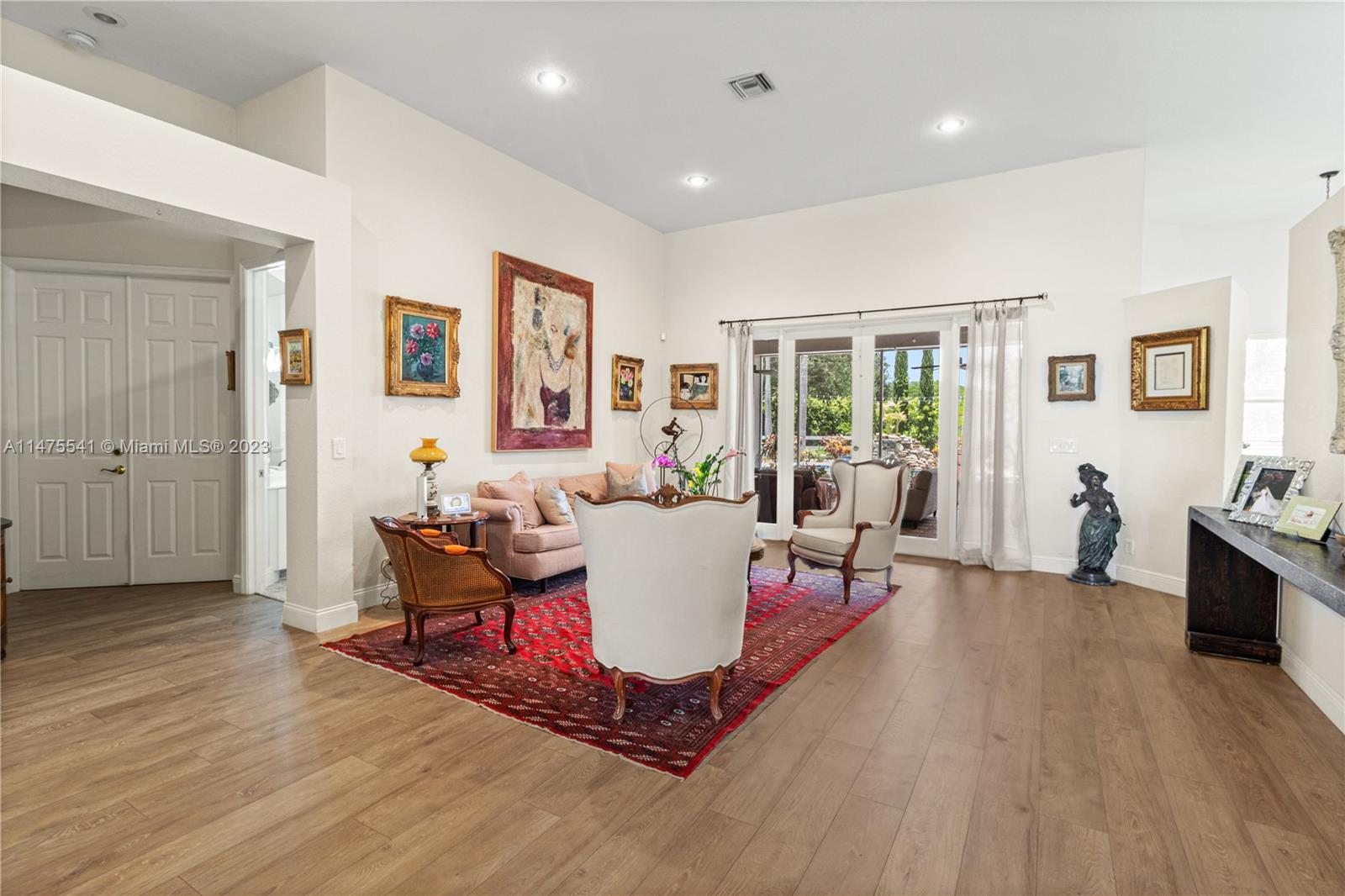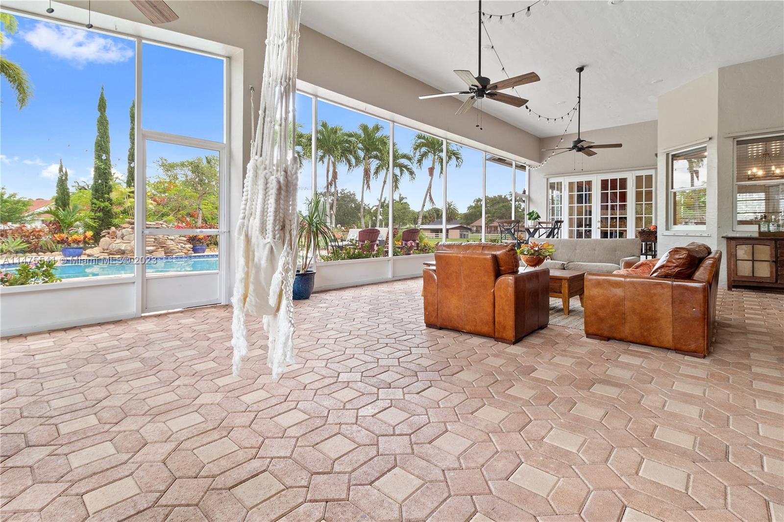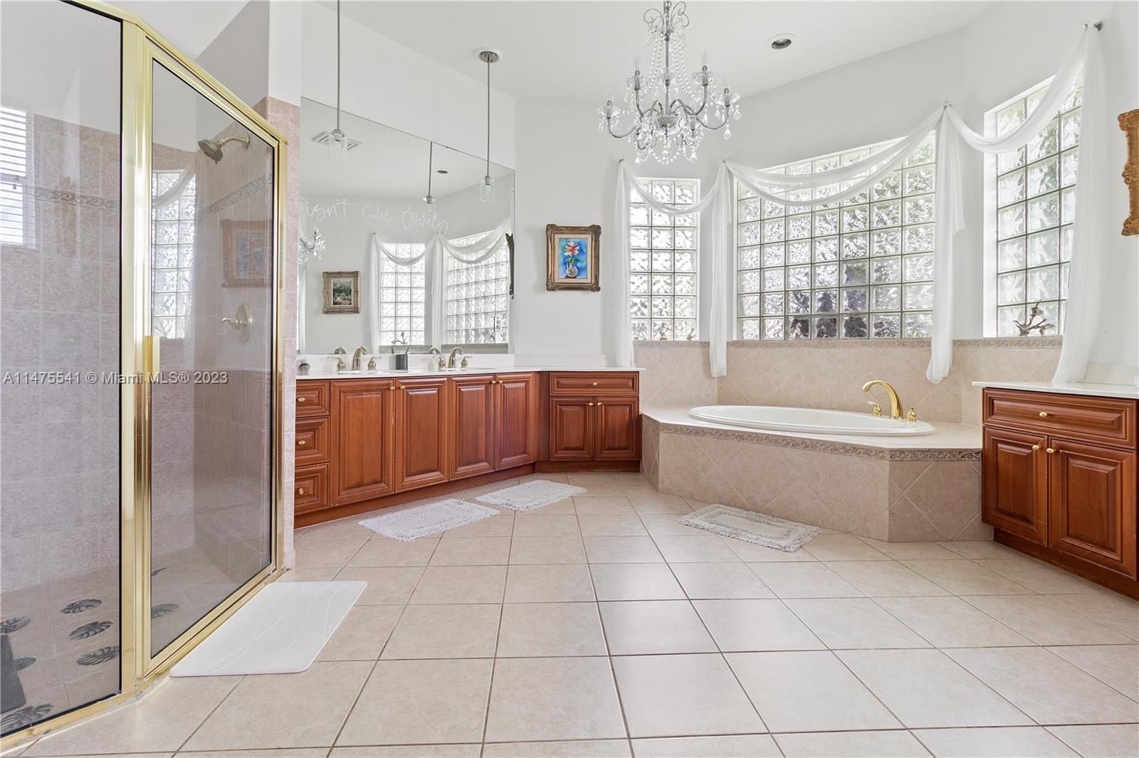 One of a kind property in the exclusive TRAILS of Pembroke Pines. Gorgeous upgraded Equestrian style home 4 Beds 4 Baths(incl. Jack and Jill) plus nanny/office room. Large Master Suite situated at opposite side of the house for privacy incl. deluxe bath w /jacuzzi, 2 walk-in closets & direct access to the resort style heated pool. High Ceilings, 3 separate ACs w/upgraded thermostat, central vacuum system, alarm, security cameras, French doors, wood floors large family room w/doble function chimney(gas & wood) large screened patio, eat in kitchen with walk-in pantry, doble oven, SS appliances granite countertop laundry room. 3 car garage w/plenty storage. Is nestled on an elevated private-pie shaped lot at the end of a cul-de-sac. Close to shipping, dinning and highways
