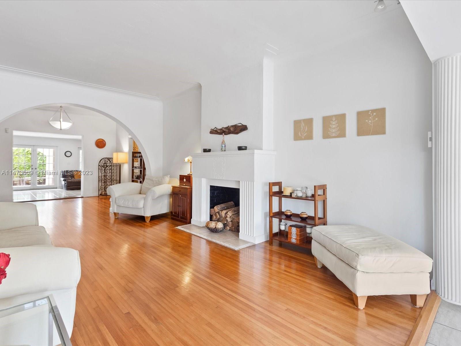 This architecturally unique gem is sure to captivate you from the moment you enter the sunlit foyer. Located in the Town of Surfside, this expansive home showcases a timeless charm with an original art deco fireplace, custom archways, high ceilings & original wood floors. There are 3 bedrooms, 2 bathrooms, an office that could be a 4th bedroom & a huge family room. The kitchen has a gas stove & granite counters. The aluminum/metal roof was installed in 2019 & all windows/doors have hurricane shutters. The private, fenced backyard has a large covered patio. Many renovations have been completed since 2005, including electrical, plumbing, gas water heater, both bathrooms & more. Walk to the beach, community center/pool, Bal Harbour Shops, dining, tennis. Zoned for A-rated Bay Harbor schools.