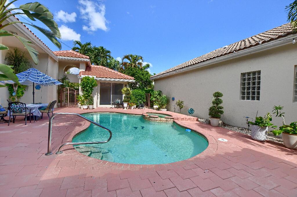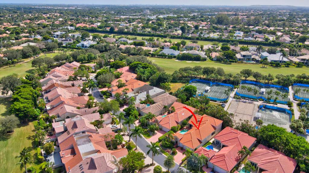 You are at the center of it all, in the Club or Boca! Just 15 minutes from anywhere in Boca Raton. Fantastic Boutique Gated Community with Top-notch Security. Only 440 select properties. A Beautiful Courtyard Style 4BR/3.5BA home. Just a short walk to the Clubhouse, Fitness center, Pool, Pickleball, Jim Fazio-designed 18-hole, championship golf course, and Tennis. New roof 2022, New Kitchenaid refrigerator 2023, new carrier air conditioner 2023. Raised ceilings filling the home with plenty of natural light. Solid core doors, Central vacuum, Walk-in Pantry, Back-up generator, and Bosch Induction cooktop. A Private Courtyard with a pool and Separate Guest house. Walking distance to Houses of Worship, and A-rated schools.