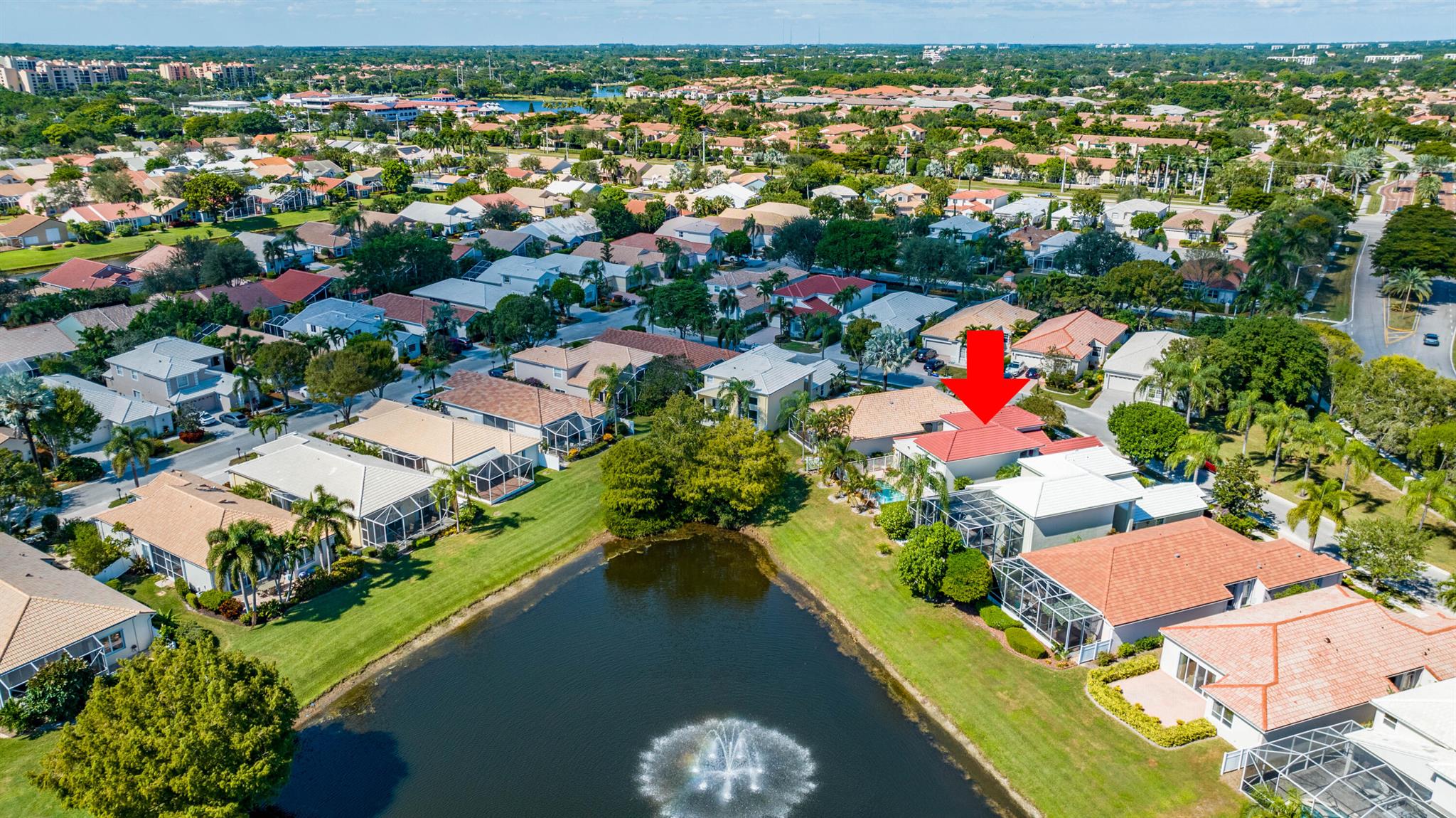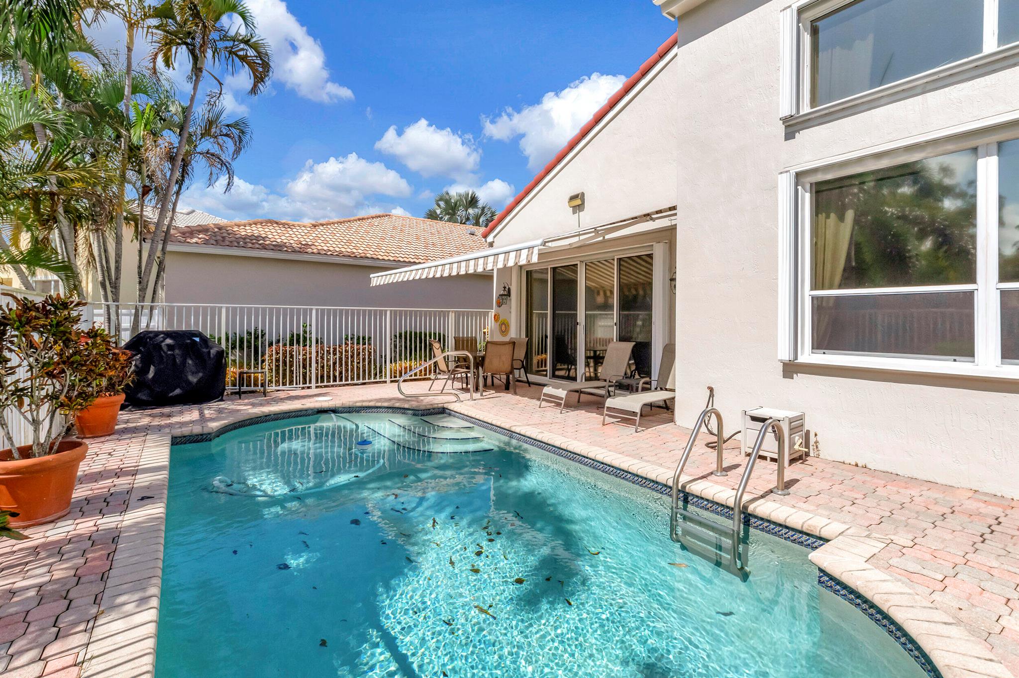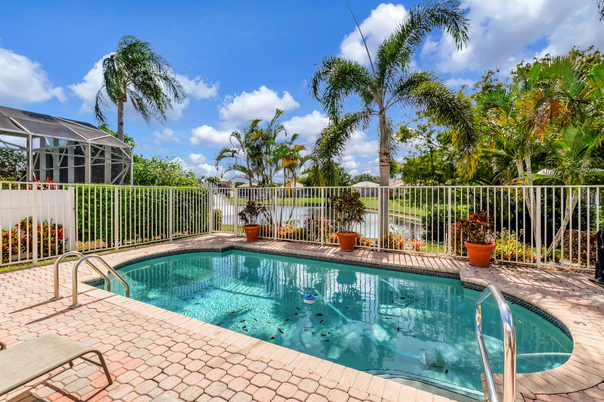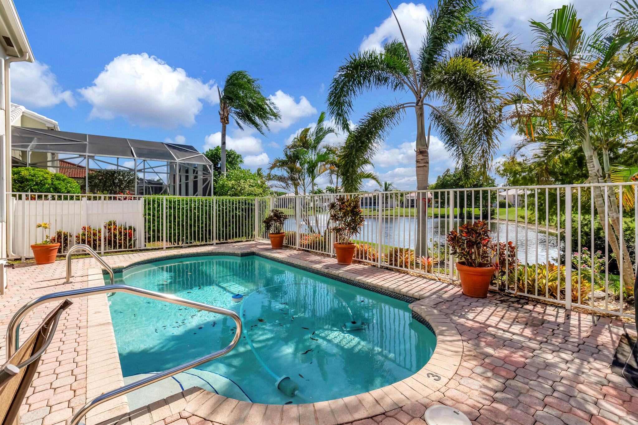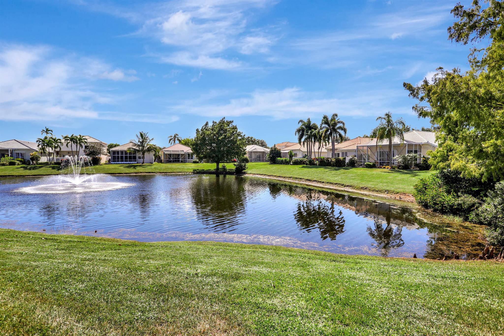 This is the home that is too good to be true ---magnificent lake and fountain view and an inground swimming pool with a retractable awning !!!! Big ticket items have already been completed: New ROOF and HURRICANE shutters on windows and doors ; New WOOD floors and crown and baseboard MOLDING that are decorative and larger than average . Updated KITCHEN and some updates in the BATHROOMS .... All CLOSETS are professionally done with shelving.This community is part of a country club without mandatory membership... and close to shopping . Primary bedroom is on first floor of this two-story home facing south. LED lights throughout the house.